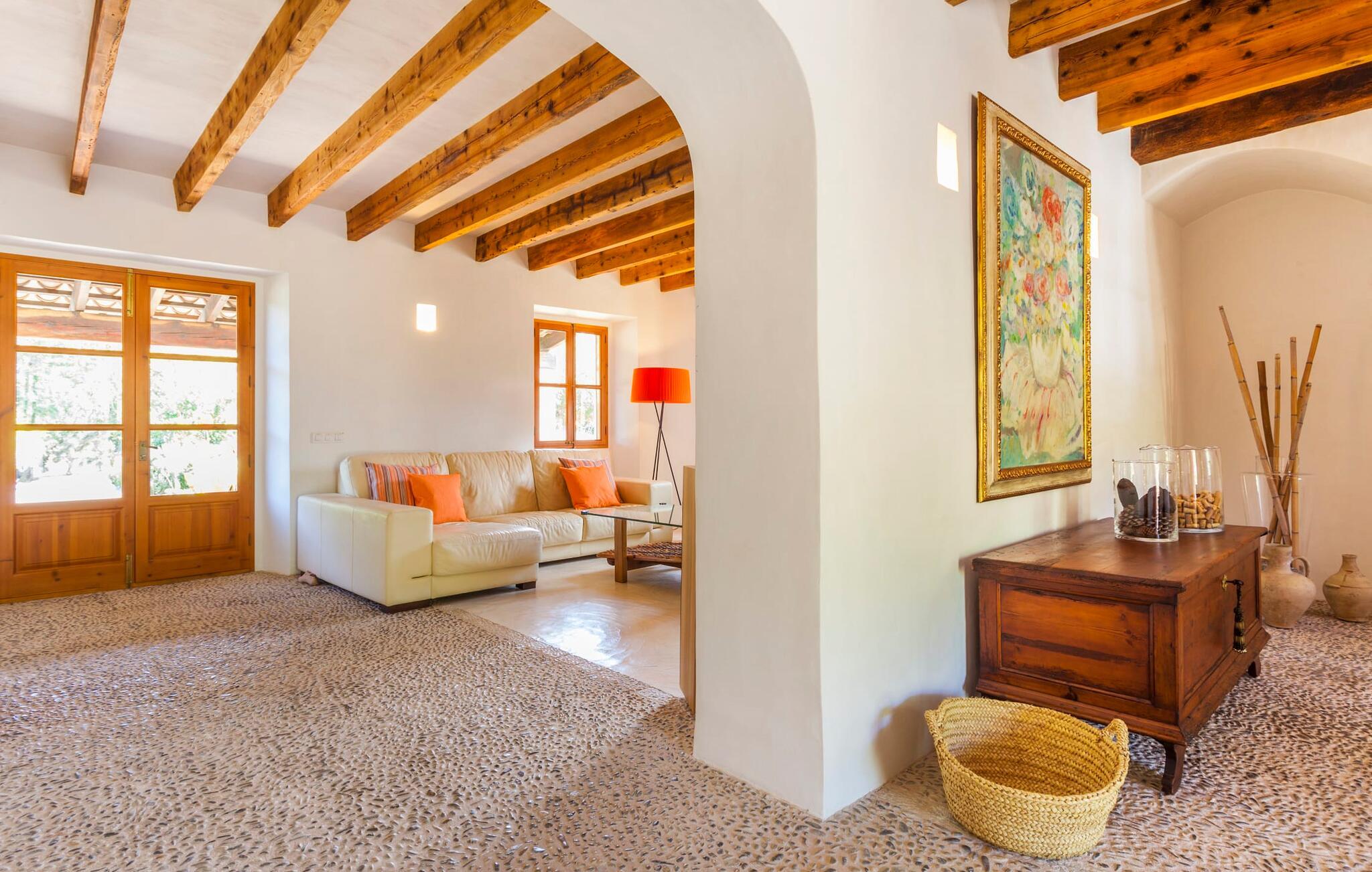 Um es kurz zu machen: Hier stimmt einfach alles. Modernität und Stil treffen auf rustikales und natürliches Design. Dazu kommt ein gepflegter Garten und eine hochwertige Ausstattung – ganz zu schweigen von der fantastischen Aussicht, die jeden Besucher in seinen Bann ziehen wird. Die Villa mit dem wunderbaren Namen „La Rovina“ liegt in einer malerischen Umgebung, umgeben von mediterranen Büschen, Palmen und bewaldeten Hügeln – das ist wirklich Mallorca. Der Pool mit abgestuftem Bodenbelag und einer hübschen Naturterrasse verspricht viel Badevergnügen und eine erholsame Zeit im Urlaub. Es gibt auch Sonnenliegen und eine schicke Pergola, die angenehmen Schatten spendet. Die Kinderschaukel befindet sich in der Nähe des Beckens, so dass Sie die Kleinen auch vom Liegen aus im Auge behalten können. Für die Kinder gibt es auch ein Spielhaus und einen Sandkasten. Hinter dem Haus finden Sie eine überdachte Terrasse mit einem rustikalen Holztisch und stilvollen Stühlen. Von hier aus genießen Sie einen herrlichen Blick auf den üppig grünen Garten, der bis ins kleinste Detail liebevoll gestaltet ist. Ein wunderbarer Ort, um einen lauen Sommerabend ausklingen zu lassen. Eine Flasche spanischer Rotwein mit ein paar Oliven und der Duft von Lavendel steigen in Ihre Nase. Auf dem Anwesen genießen Sie absolute Privatsphäre – kein Wunder, denn das Grundstück selbst ist 40.000 m² groß. Ein normaler, teilweise asphaltierter Feldweg führt direkt zum Haus, wo es Parkplätze für bis zu acht Autos sowie zwei Garagenplätze gibt.