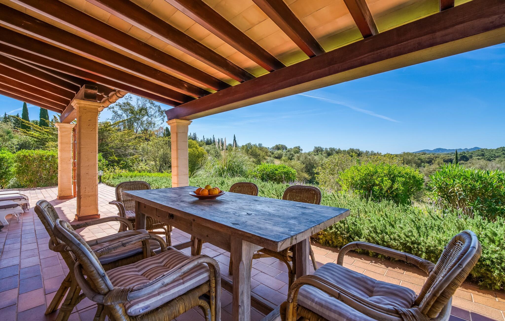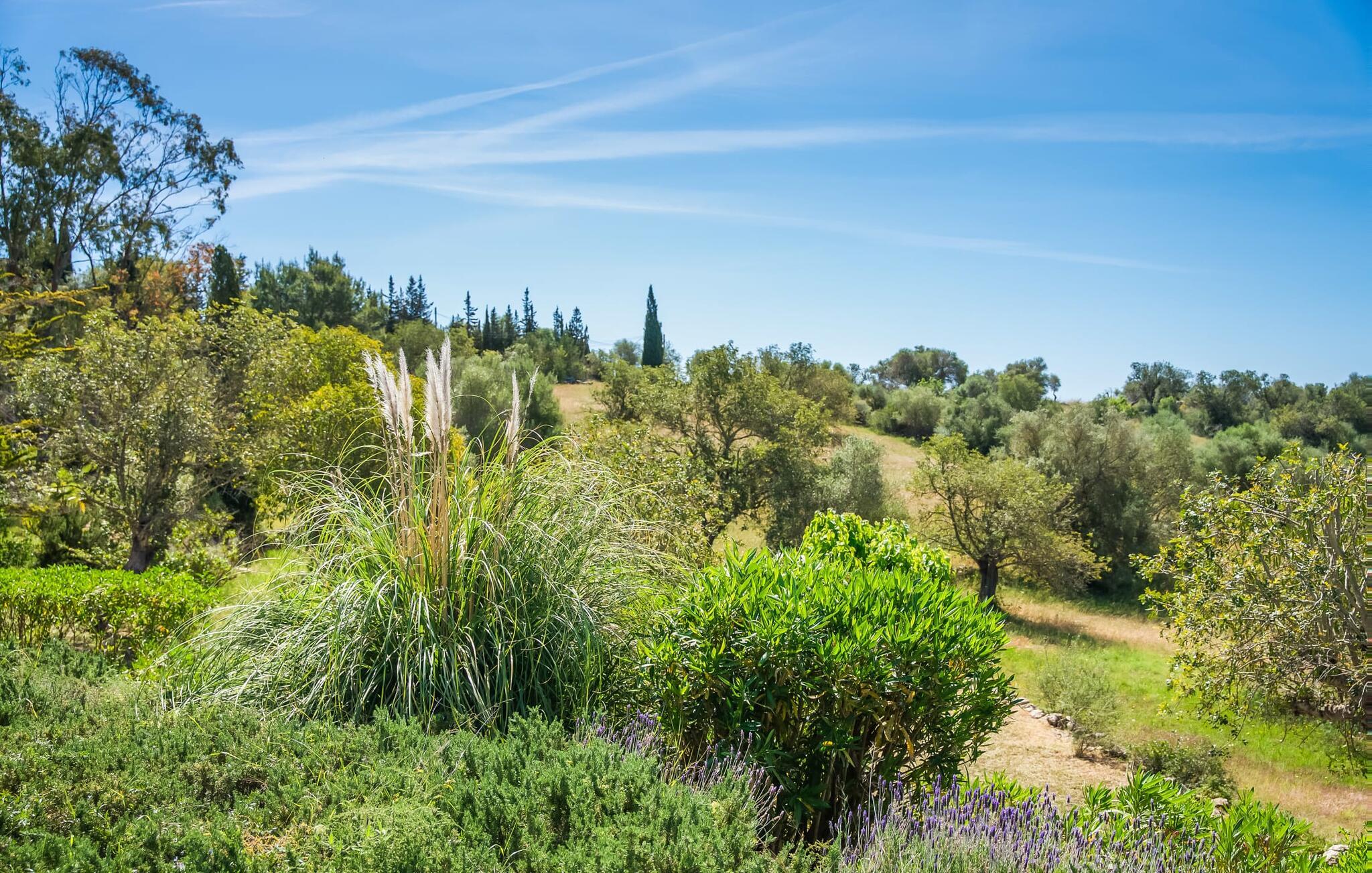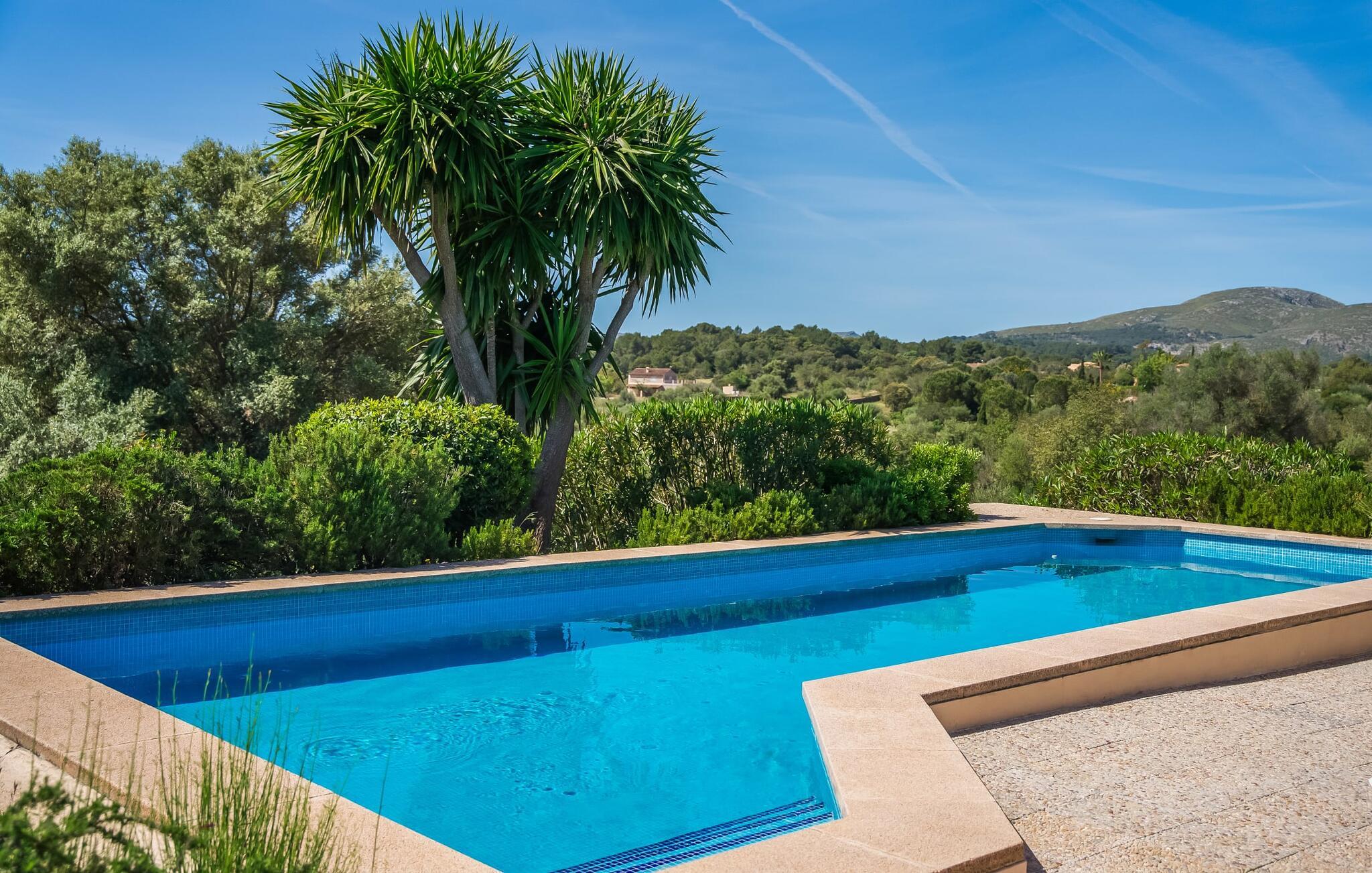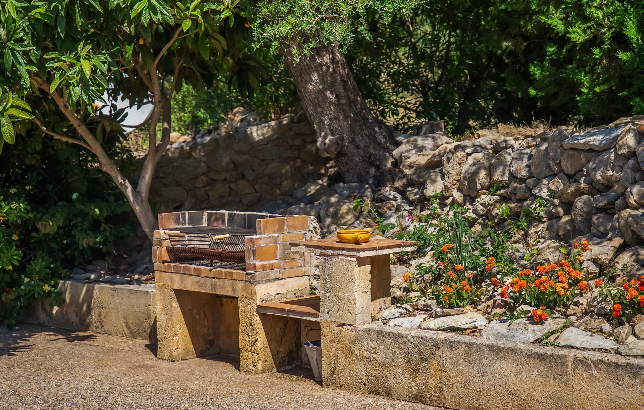 Umgeben von Palmen-, Mandel-, Oliven- und Feigenbäumen grenzt die Villa direkt an ein Naturschutzgebiet. Das sonnige Anwesen in Hanglage bietet eine atemberaubende Aussicht und eine Reihe von Außenbereichen, die Sie genießen können, vom großen Pool bis zum einladenden Grillplatz. Entspannen Sie sich unter den hohen Palmen am Pool, die mit klarem Brunnenwasser gefüllt sind, oder entspannen Sie sich auf der Terrasse und genießen Sie die Aussicht. Ein überdachter Parkplatz ist ebenfalls vorhanden.