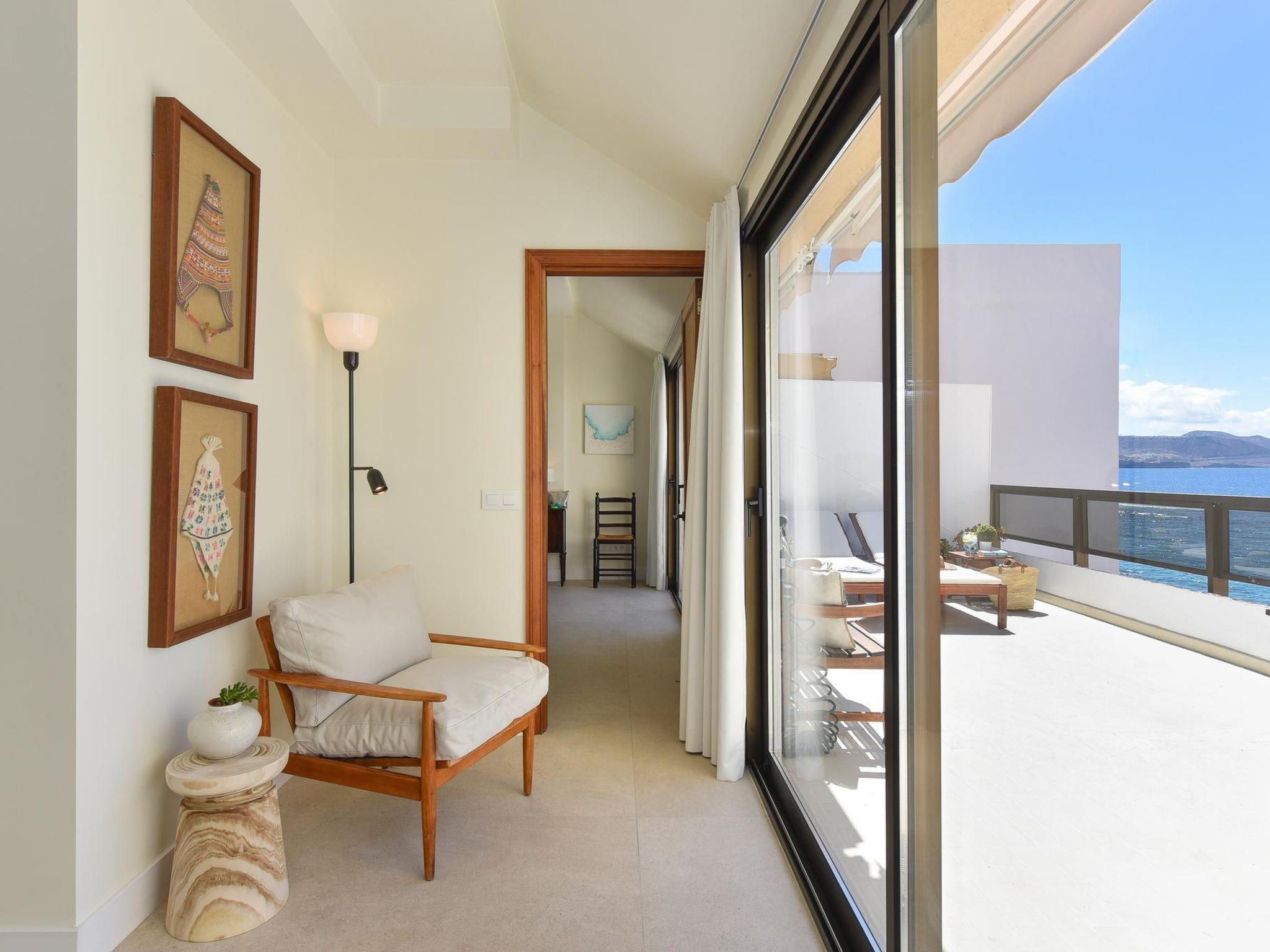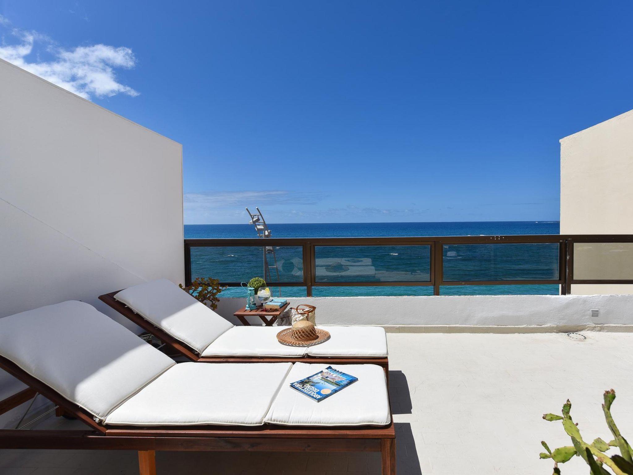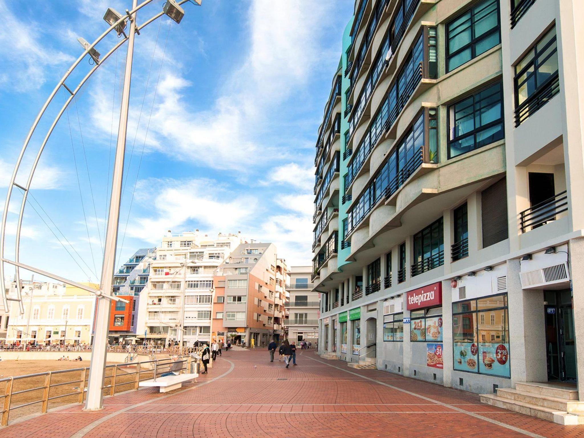 Cosy, comfortable apartment block "La Terraza de Sofia Canteras". In the district of Las Canteras, in the centre of Las Palmas, in a central, busy, sunny position, 10 m from the sea, 10 m from the beach. In the house: lift. Shop, supermarket, restaurant 300 m, bus stop "Tomás Miller" 260 m, sandy beach 10 m. The owner does not accept any youth groups. Please note: airfield 29 km from the property. Neighbourhood highly sensitive to noise. Quietness and good behaviour expected.