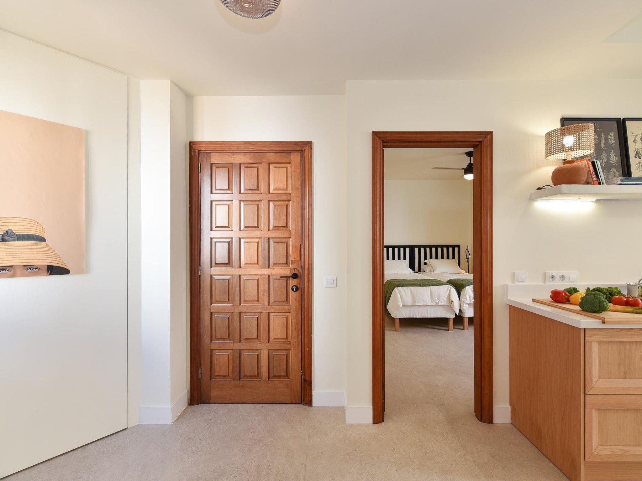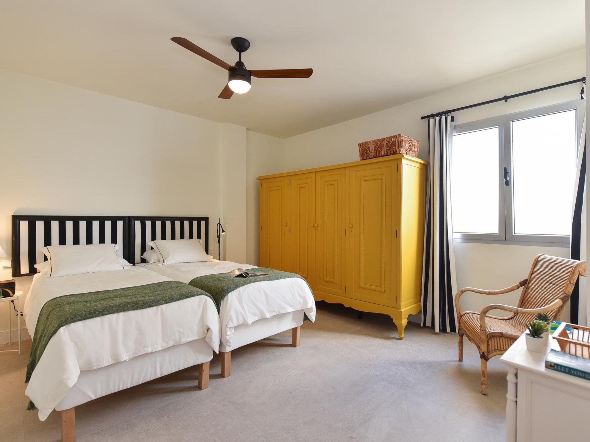 3-room apartment 112 m2 on 3rd floor. Comfortable and cosy furnishings: living/dining room with dining table, satellite TV and digital TV. Exit to the terrace. 2 rooms, each room with 2 beds. Open kitchen (oven, dishwasher, 2 ceramic glass hob hotplates, toaster, kettle, microwave, electric coffee machine). Shower/WC. Terrace. Terrace furniture. Of the sea. Facilities: washing machine, iron, children's high chair, baby cot for up to 2 year olds, hair dryer. Internet (WiFi, free). Please note: non-smoking house. VV-35-1-0017918 // Reg. Nr.: ESFCTU0000350080001363670000000000000VV-35-1-00179186