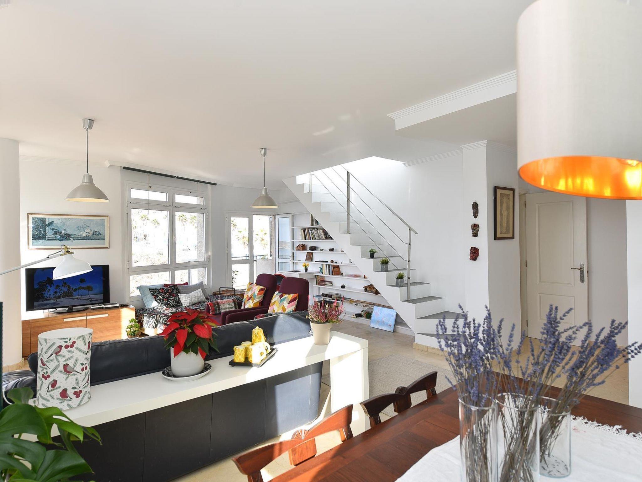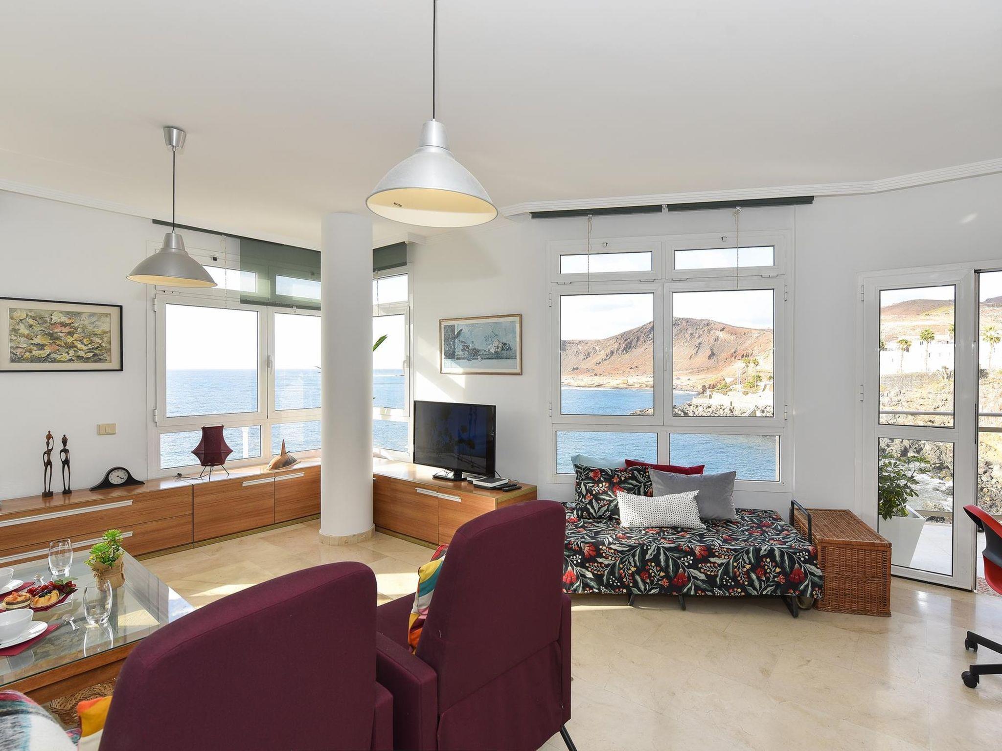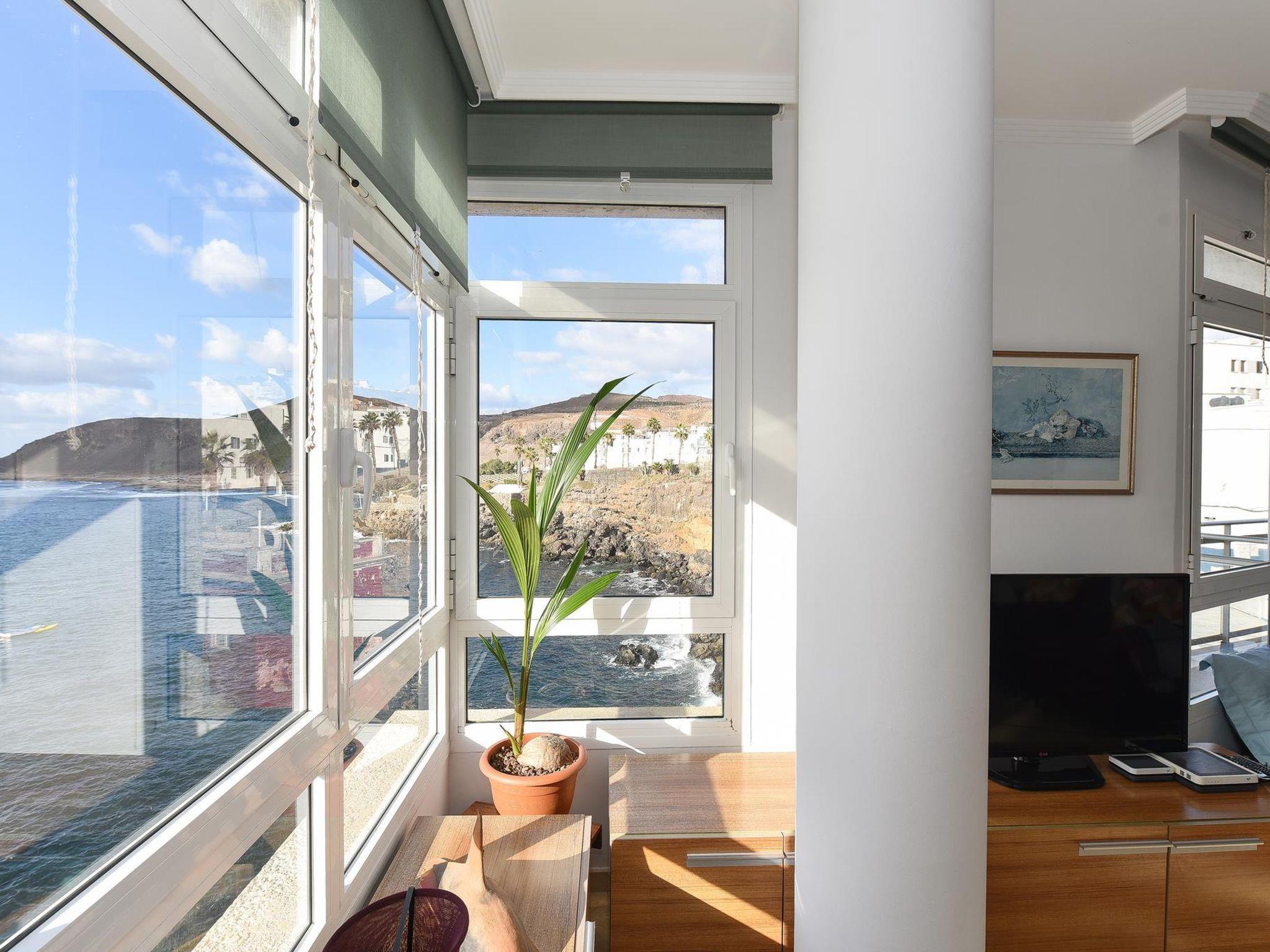"El Confital RF18", 3-room apartment 110 m2. Comfortable and cosy furnishings: living/dining room with digital TV. Exit to the terrace. 1 room with 1 french bed and shower/WC. 1 room with 2 beds. Kitchen (oven, dishwasher, 3 ceramic glass hob hotplates, toaster, kettle, microwave, freezer, electric coffee machine). Shower/WC. Terrace. Terrace furniture, barbecue. View of the sea and the forest. Facilities: washing machine, iron, children's high chair, baby cot for up to 2 year olds, hair dryer. Internet (WiFi, free). Parking (1 car). Please note: non-smoking house. Maximum 1 pet/ dog allowed. 2019/1469 // Reg. Nr.: ESFCTU0000350100004263000000000000000VV-35-1-00037303