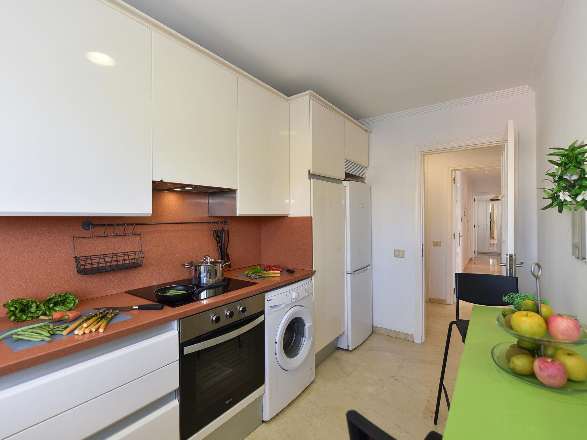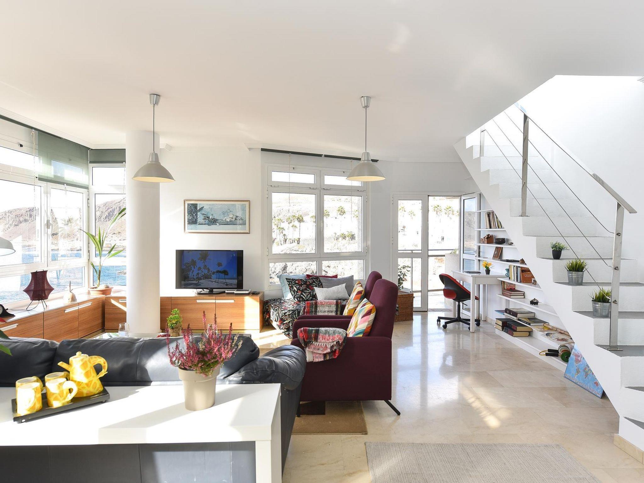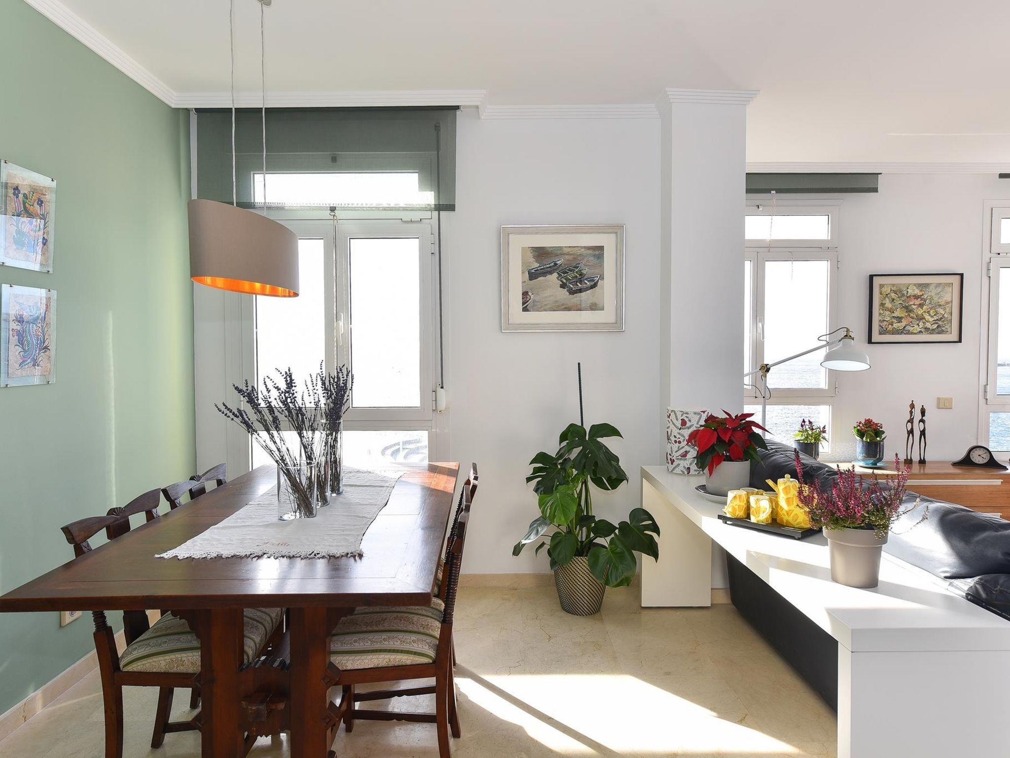 "El Confital RF18", 3-room apartment 110 m2. Comfortable and cosy furnishings: living/dining room with digital TV. Exit to the terrace. 1 room with 1 french bed and shower/WC. 1 room with 2 beds. Kitchen (oven, dishwasher, 3 ceramic glass hob hotplates, toaster, kettle, microwave, freezer, electric coffee machine). Shower/WC. Terrace. Terrace furniture, barbecue. View of the sea and the forest. Facilities: washing machine, iron, children's high chair, baby cot for up to 2 year olds, hair dryer. Internet (WiFi, free). Parking (1 car). Please note: non-smoking house. Maximum 1 pet/ dog allowed. 2019/1469 // Reg. Nr.: ESFCTU0000350100004263000000000000000VV-35-1-00037303