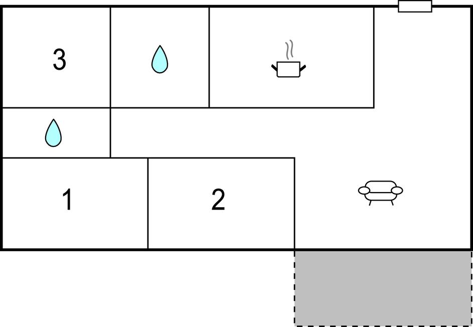 Badezimmer 10m2 (nr. 1) - WC. Warmes und kaltes Wasser. Dusche