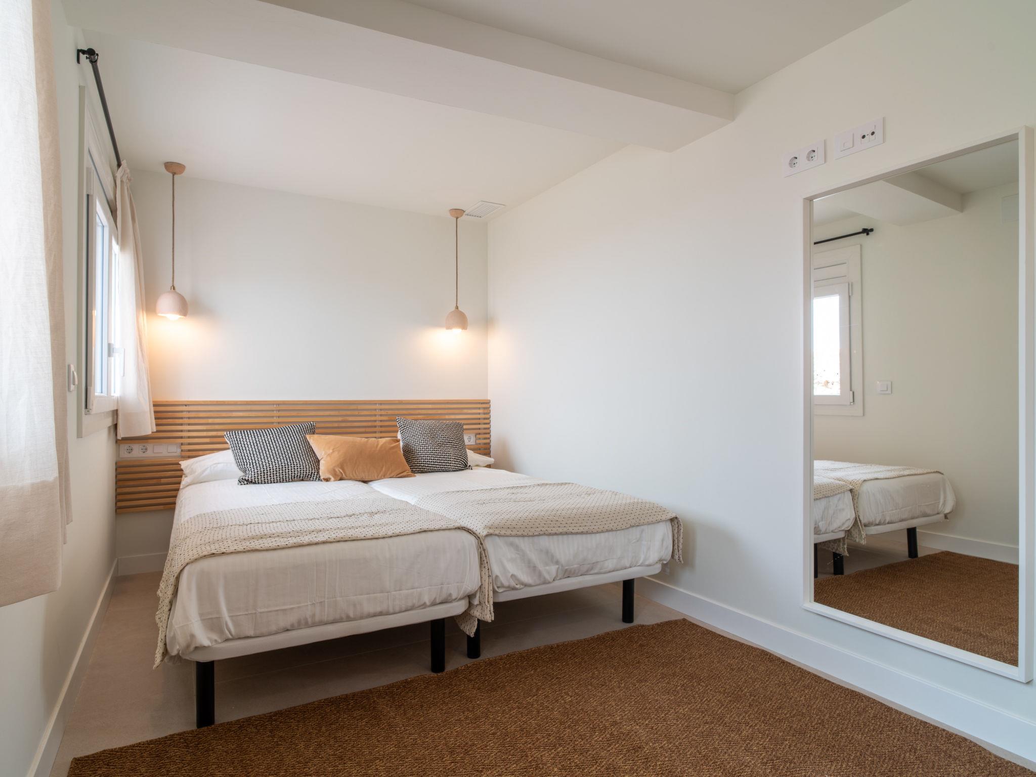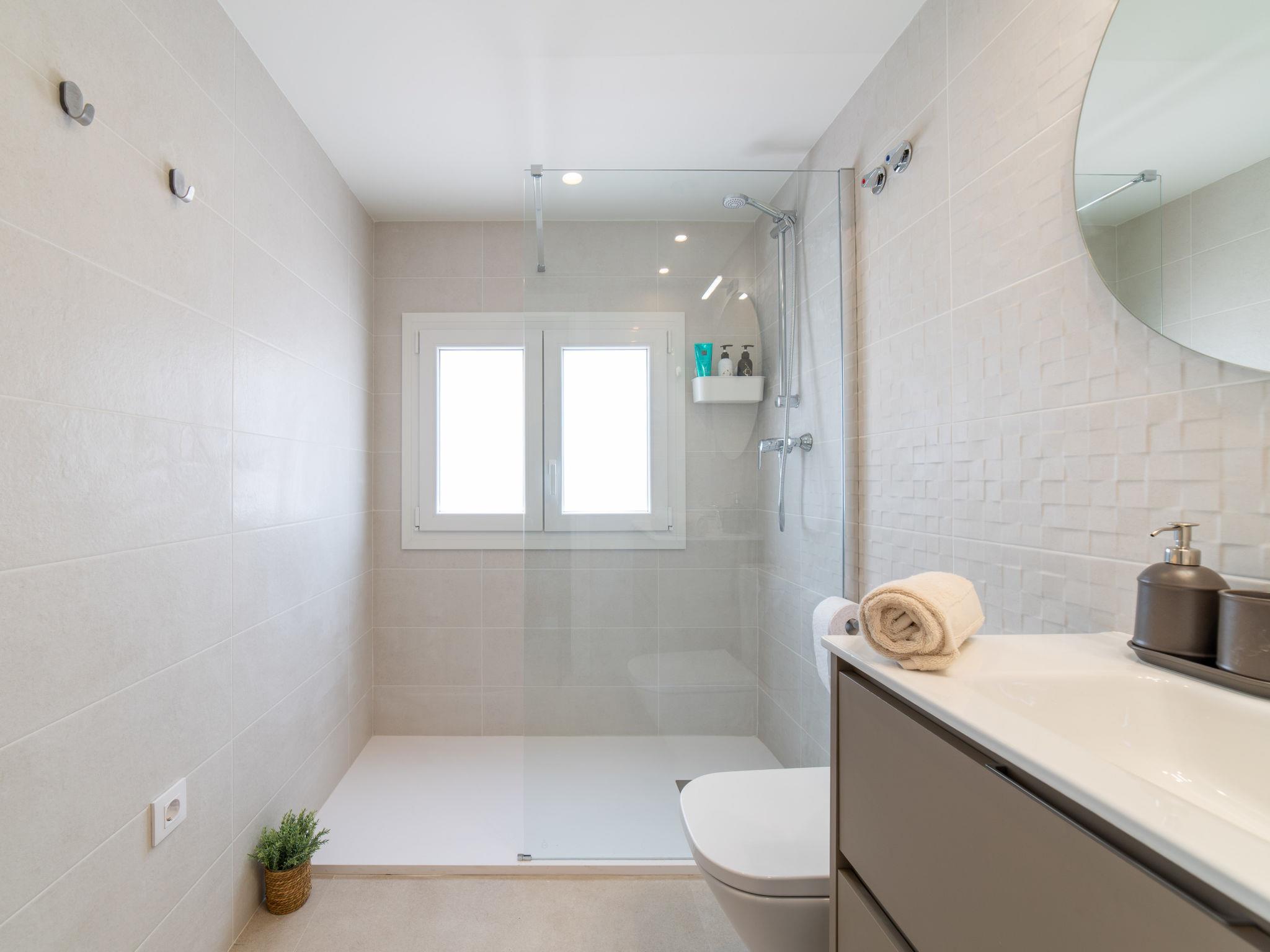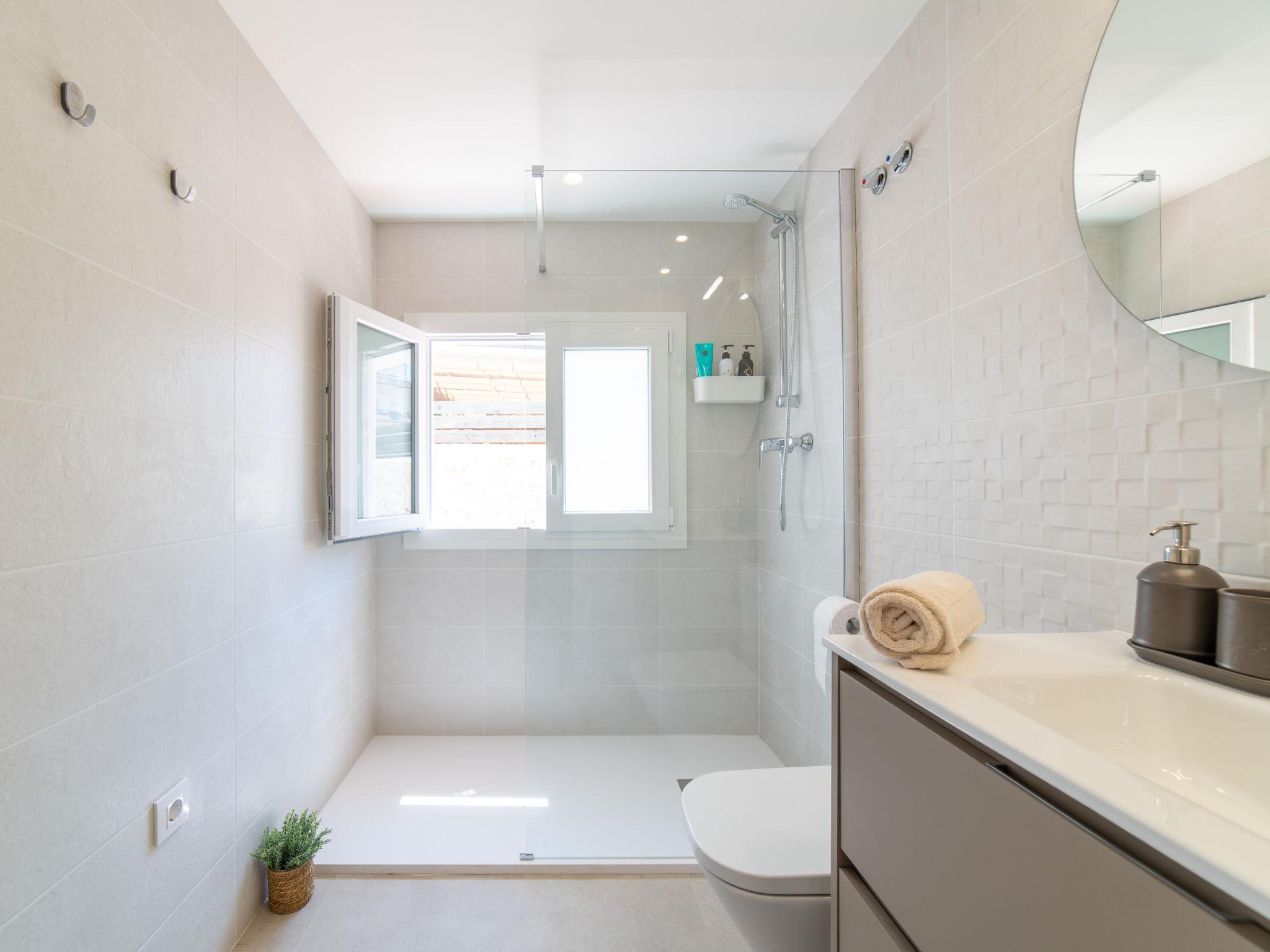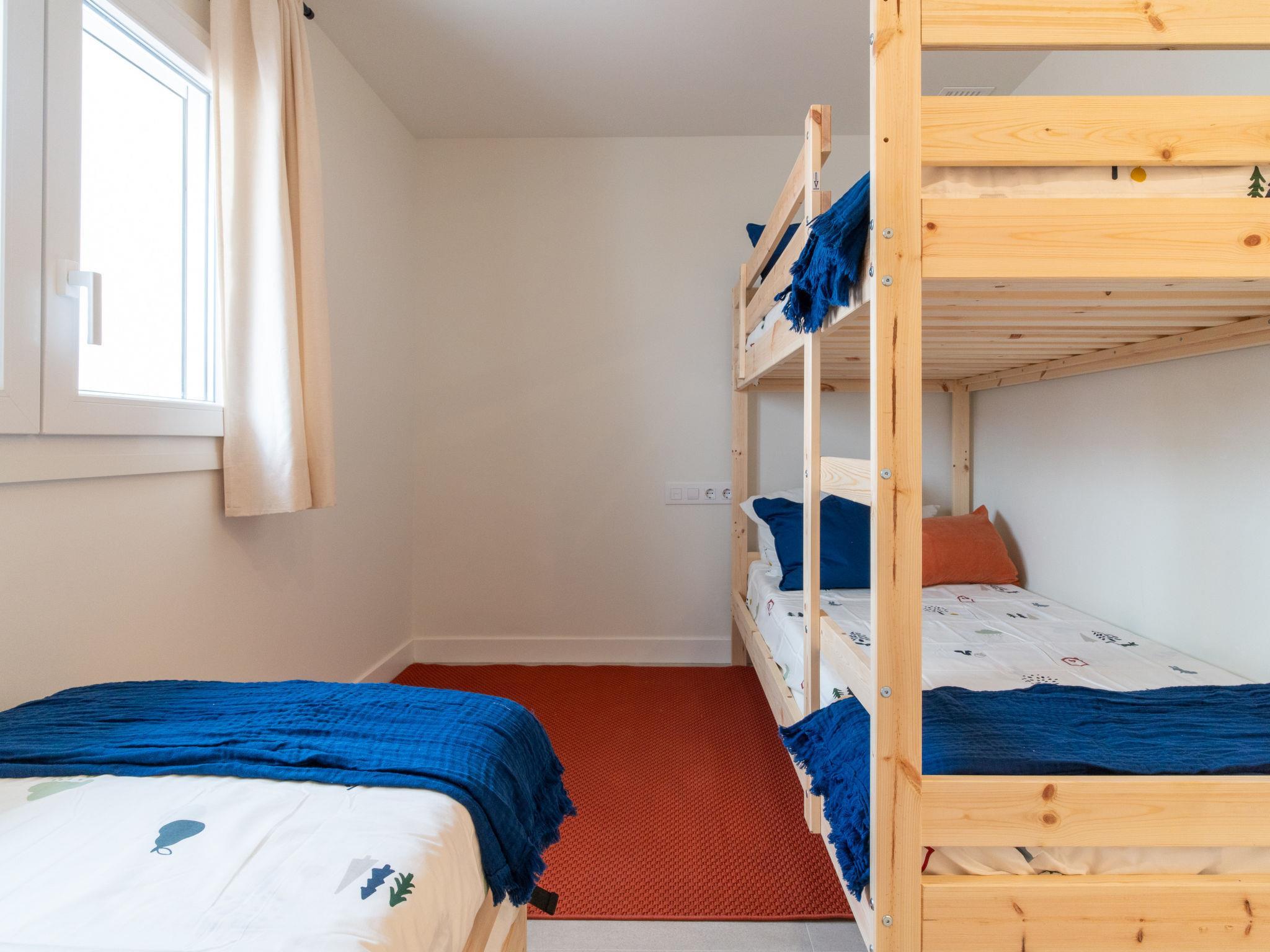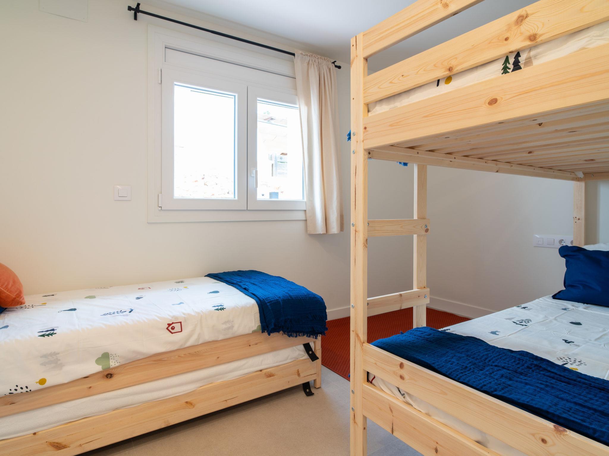 "Rita", 4-room terraced house 137 m2. Comfortable and modern furnishings: living/dining room with dining table and digital TV. 1 room with 1 french bed (160 cm, length 200 cm), electric heating and air conditioning. Exit to the garden. 1 room with 2 beds (90 cm, length 200 cm), electric heating and air conditioning. 1 room with 1 bed (80 cm, length 200 cm), 1 x 2 bunk beds (90 cm, length 200 cm), electric heating and air conditioning. Open kitchen (oven, dishwasher, 4 induction hot plates, toaster, kettle, microwave, electric coffee machine, Capsules for coffee machine (Nespresso) extra). 3 showers/WC. Patio. Terrace furniture, barbecue, deck chairs. Facilities: washing machine, iron, children's high chair, baby cot for up to 2 year olds, hair dryer. Internet (WiFi, free). Garage (1 car). E-charging station. Please note: suitable for families. Non-smoking house. HUTB-065983 // Reg. Nr.: ESFCTU00000809800028960200000000000000000HUTB-0659837