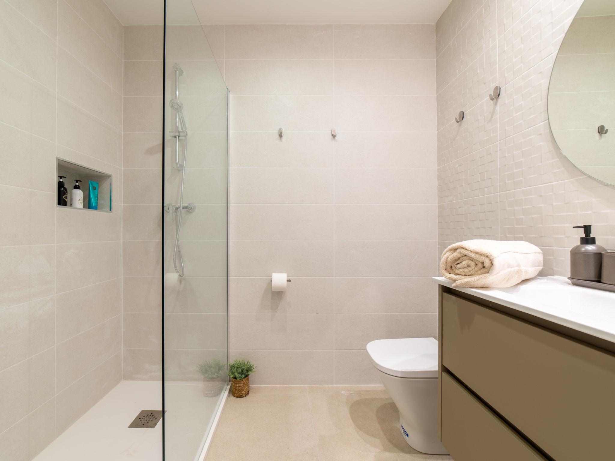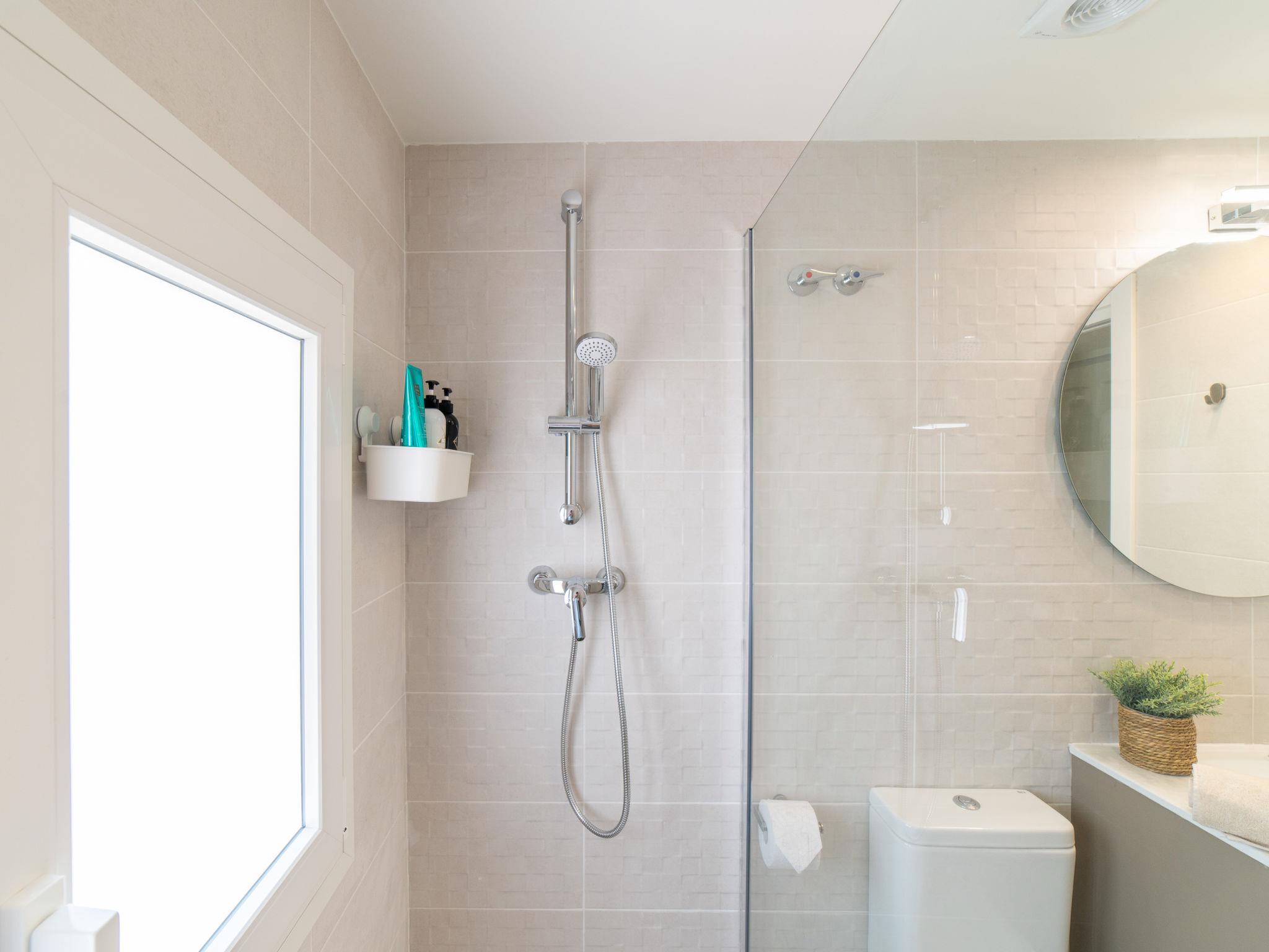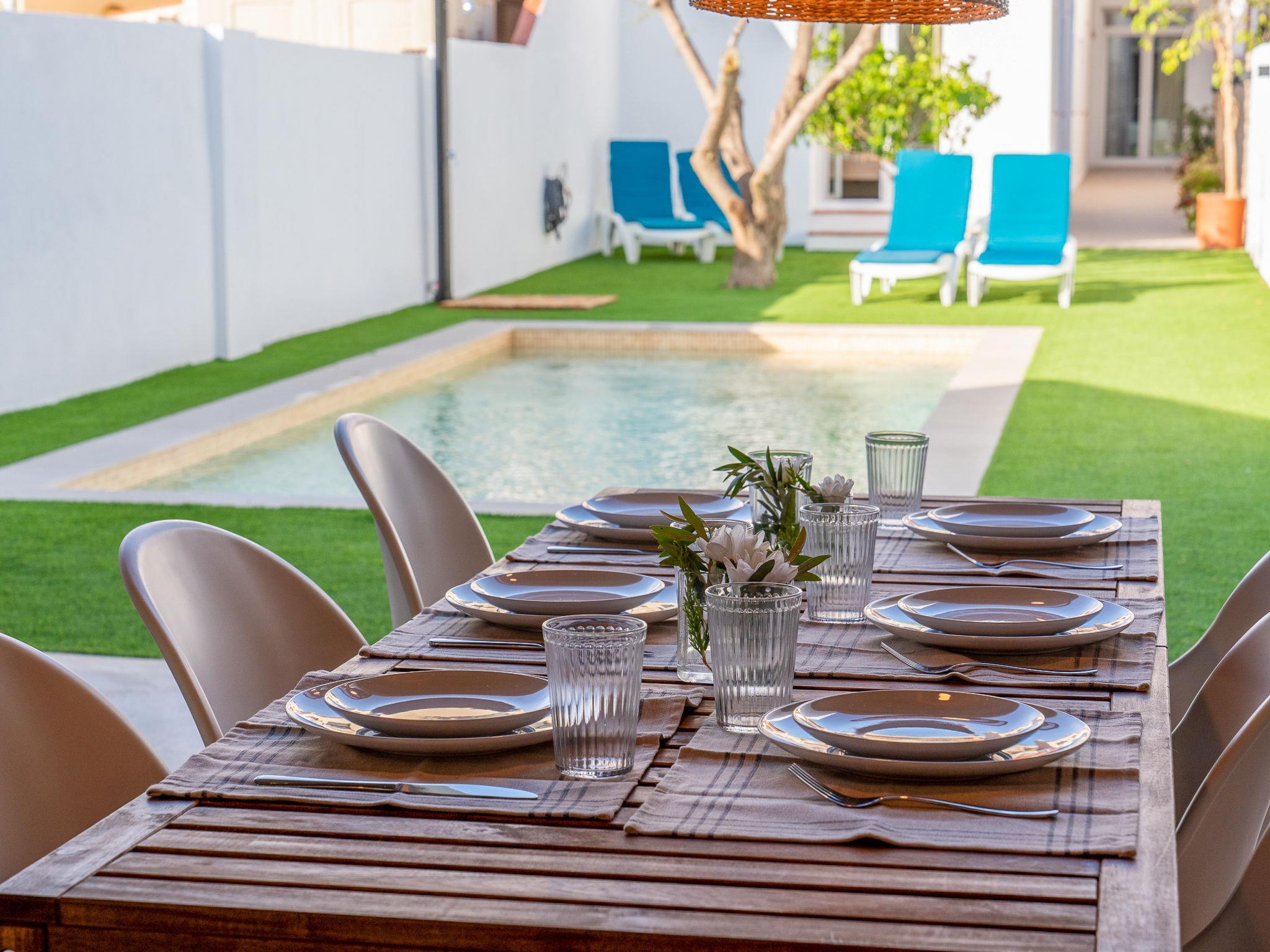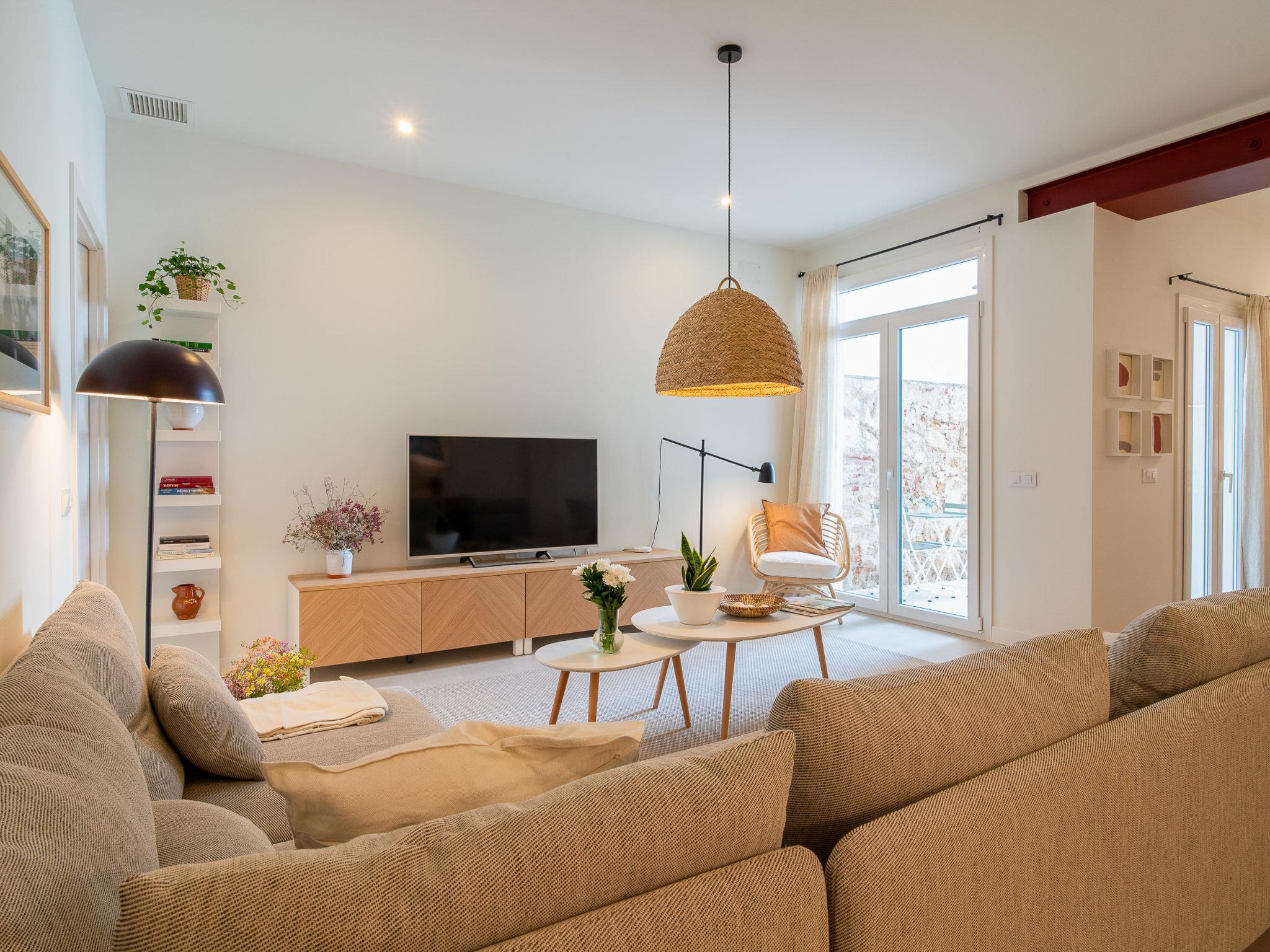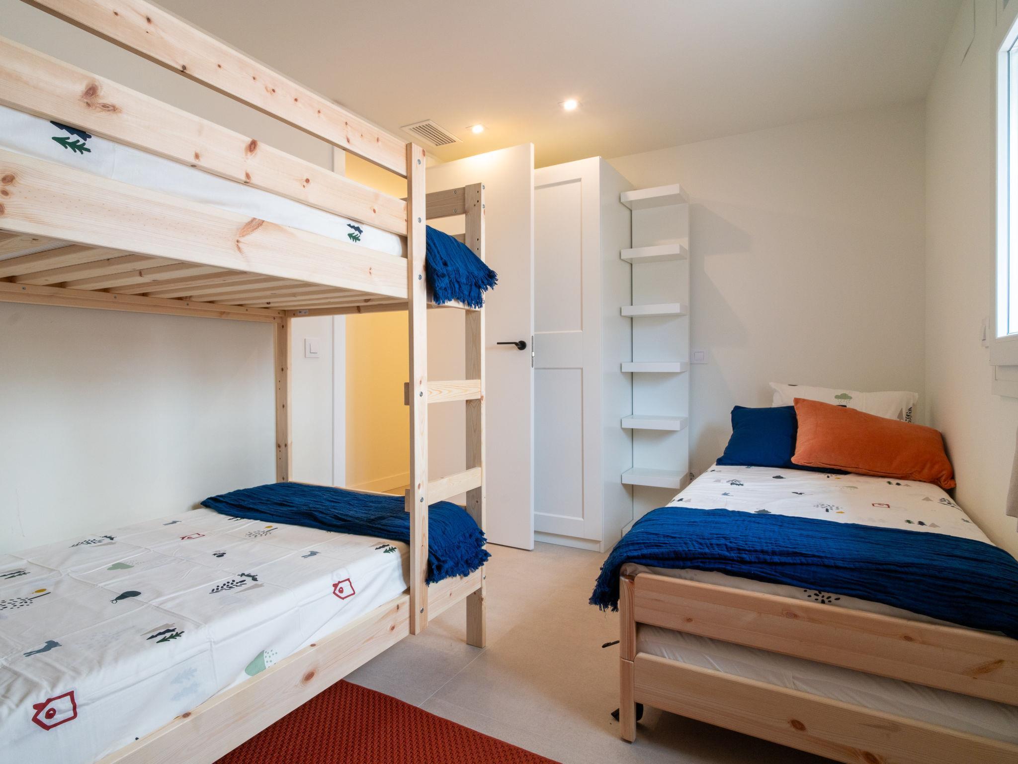 "Rita", 4-room terraced house 137 m2. Comfortable and modern furnishings: living/dining room with dining table and digital TV. 1 room with 1 french bed (160 cm, length 200 cm), electric heating and air conditioning. Exit to the garden. 1 room with 2 beds (90 cm, length 200 cm), electric heating and air conditioning. 1 room with 1 bed (80 cm, length 200 cm), 1 x 2 bunk beds (90 cm, length 200 cm), electric heating and air conditioning. Open kitchen (oven, dishwasher, 4 induction hot plates, toaster, kettle, microwave, electric coffee machine, Capsules for coffee machine (Nespresso) extra). 3 showers/WC. Patio. Terrace furniture, barbecue, deck chairs. Facilities: washing machine, iron, children's high chair, baby cot for up to 2 year olds, hair dryer. Internet (WiFi, free). Garage (1 car). E-charging station. Please note: suitable for families. Non-smoking house. HUTB-065983 // Reg. Nr.: ESFCTU00000809800028960200000000000000000HUTB-0659837