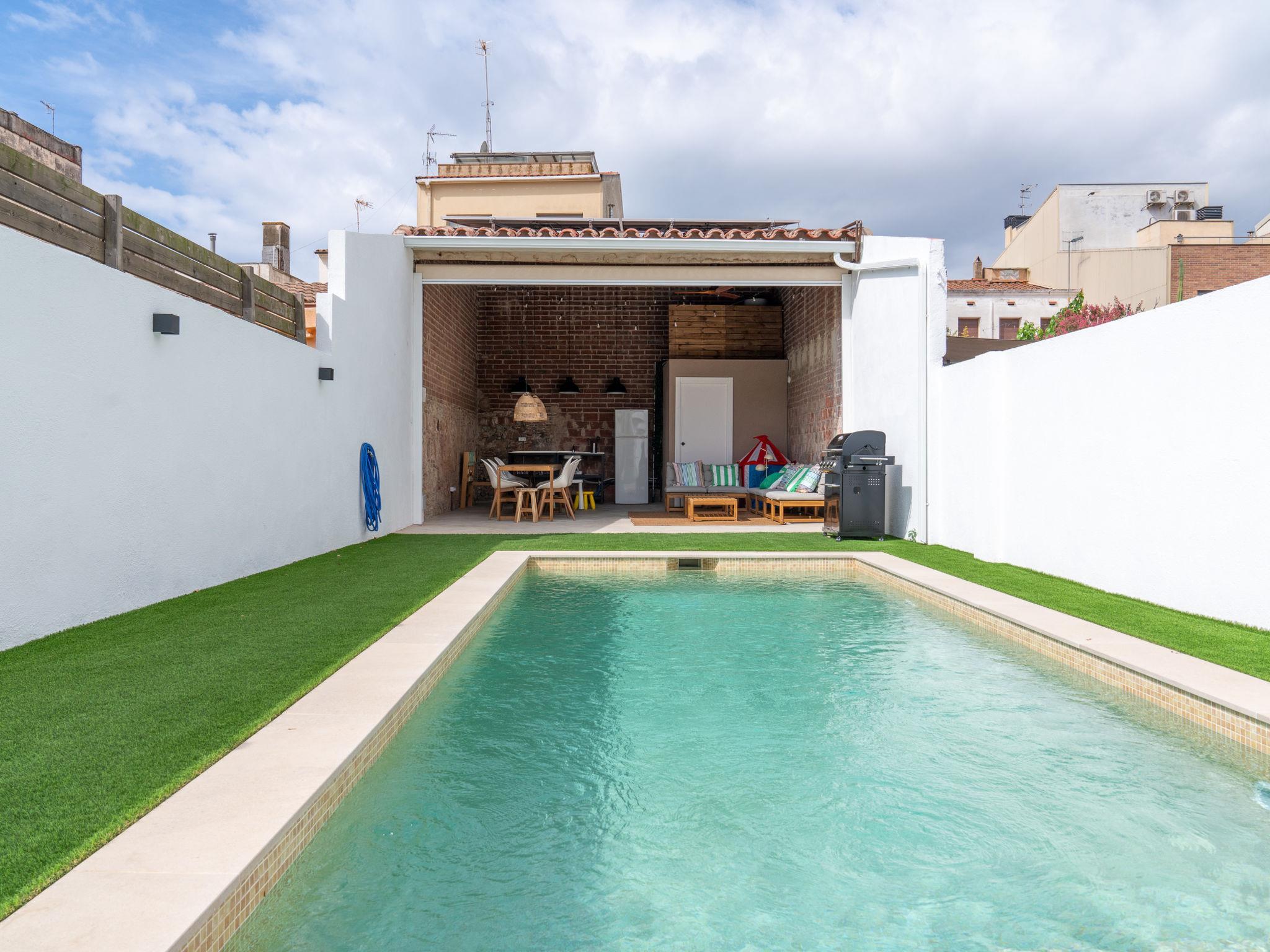 Beautiful, comfortable terraced house. Excellent location: right in the centre but still quiet, 160 m from the sea, from the beach. Private: garden (fenced) with lawn, swimming pool (7 x 3 m, depth 150 - 120 cm, seasonal availability: 01.Jan. - 31.Dec.). Shower/WC in the pool area, barbecue, roofed, parking. E-charging station. Shop 80 m, supermarket 350 m, restaurant 150 m, bakery 300 m, bus stop "Escoles - Sant Esteve" 200 m, railway station "Malgrat de Mar" 240 m. Nearby attractions: Barcelona 66 km, Mataro 35 km, Sant Pol 20 km, Lloret de Mar 12 km. The owner does not accept any youth groups. Neighbourhood highly sensitive to noise. Quietness and good behaviour expected.