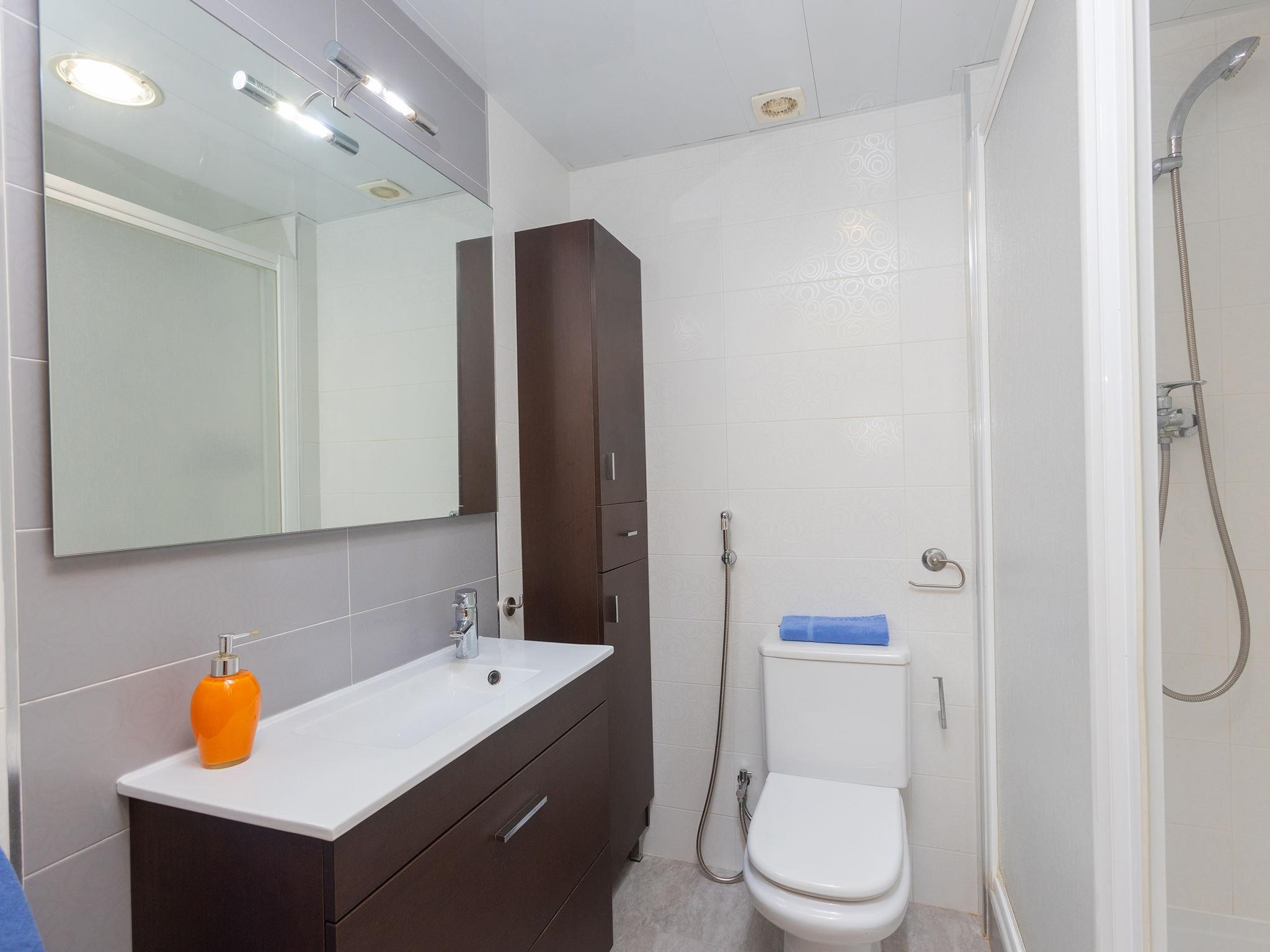 "Nemesis", 3-room apartment 59 m2. Practical and comfortable furnishings: living/dining room with dining table and digital TV. Exit to the balcony. 1 room with 1 french bed (135 cm, length 190 cm). 1 room with 2 beds (90 cm, length 190 cm). Kitchen (4 ceramic glass hob hotplates, toaster, microwave, freezer, electric coffee machine). Shower/WC. No heating option. Balcony. Balcony furniture. View of the sea and the swimming pool. Facilities: washing machine, iron, hair dryer. Internet (WiFi, free). Parking (roofed). HUTB047317 // Reg. Nr.: ESFCTU000008098000062281000000000000000000HUTB0473177