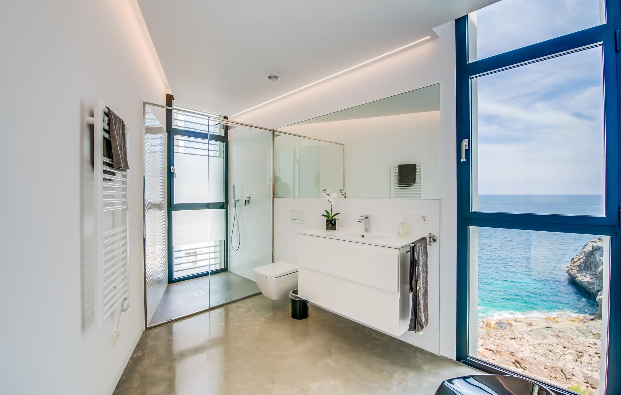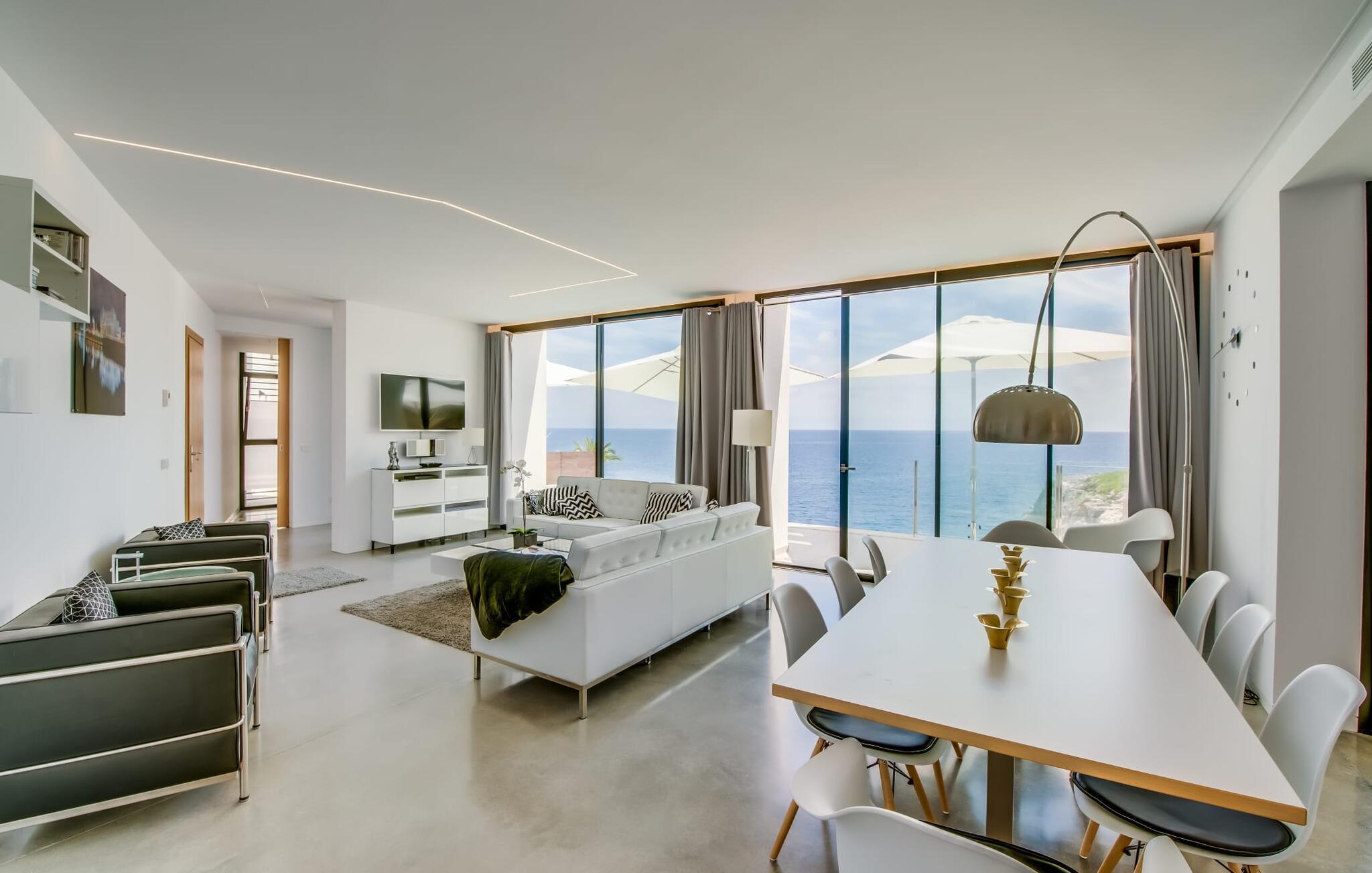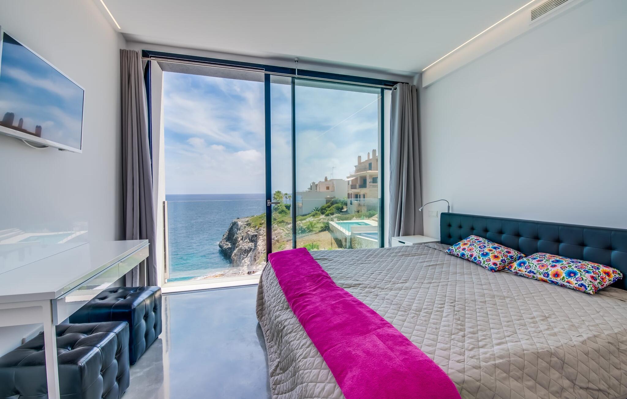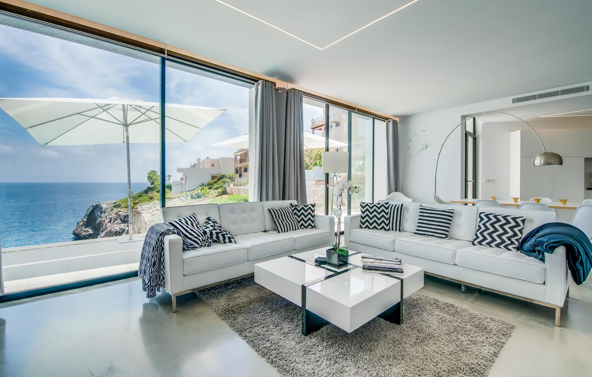 Die Ostküste rund um Cala Millor, S'Illot, Sa Coma und Porto Cristo ist mit ihren abwechslungsreichen Küstenabschnitten wildromantisch – die „Mallorca Design Villa“ liefert mit ihrer exponierten Lage den besten Beweis dafür. Auch die Ausflugsmöglichkeiten sind vielfältig und dank der hervorragenden – zwar nicht sehr stark frequentierten, aber dennoch hörbaren – Verkehrsanbindung schnell zu erreichen. Sandstrandhüpfen und ausgiebig die hervorragende Wasserqualität genießen, die nicht nur für Archäologen interessanten Überreste aus der Talaiot-Zeit besichtigen oder gemütlich am nur 3 km entfernten, verschlungenen Naturhafen von Porto Cristo entlangschlendern, Sie haben die Wahl. Ein weiteres unvergleichliches Erlebnis erwartet Sie in den begehbaren Tropfsteinhöhlen „Coves del Dracs“, in denen regelmäßig Konzerte stattfinden. Leuchttürme und sanfte grüne Hügel prägen die Landschaft – ideale Voraussetzungen für eine unvergessliche Zeit mit hohem Freizeitwert. Die „Mallorca Design Villa“ in der Nähe von Porto Cristo hat ihrem Namen alle Ehre gemacht: In erster Reihe an der Küste und gleichzeitig in verkehrsgünstiger Lage zur Stadt gelegen, erwartet Sie ein Wohnerlebnis der Extraklasse. Herrliche erholsame Spaziergänge entlang der Küste, ein Bummel auf der Promenade des 3 km entfernten idyllischen Küstenortes Porto Cristo oder ein Abstecher zum 16 km entfernten Golfplatz „Pula Golf“ – von hier aus haben Sie unzählige Möglichkeiten.