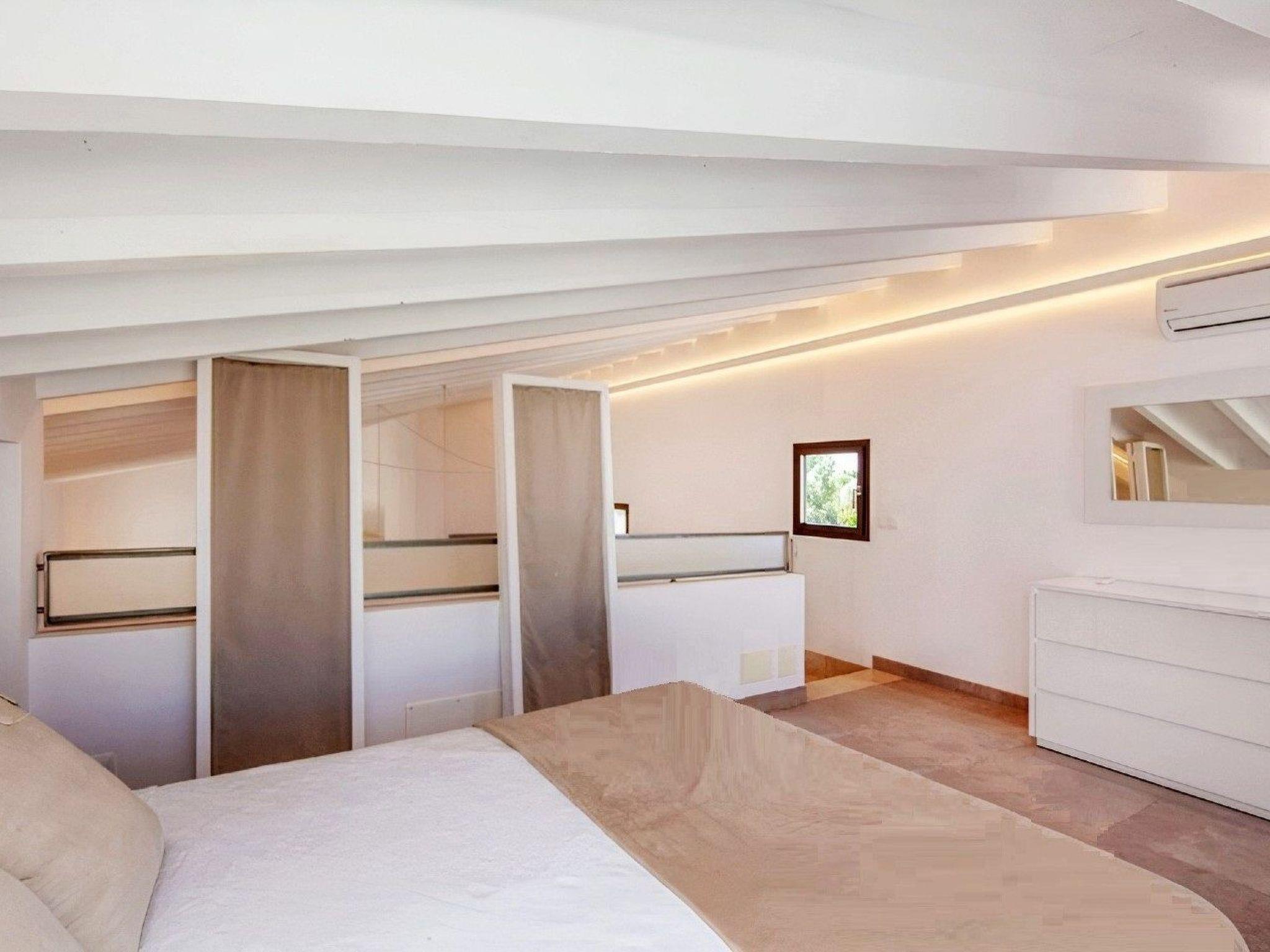The house, which can accommodate up to 8 persons, offers approx. 230 m² of living space on two floors, an open and bright living/dining room, a huge fitted kitchen with dishwasher, four spacious bedrooms (three with single beds consisting of a double bed, the fourth with a double bed) and a total of three bathrooms (2x EnSuite). The bedroom with double bed is located on the upper floor, which is designed as an open gallery. All bedrooms and the living room have their own air conditioning.
