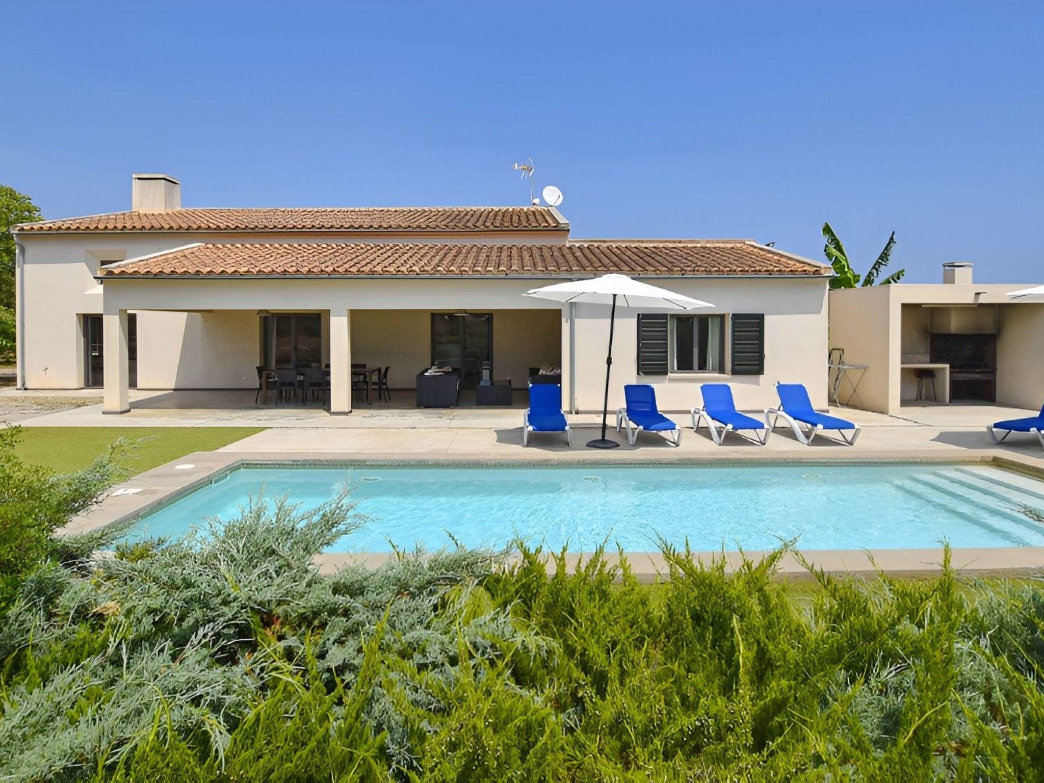 Next to the pool there is also a covered terrace equipped with sofas and dining table. And a few meters to the left is the covered barbecue with sink. A great finca close to the sea and the beach! The nearest beaches like Cala Mandia can be reached by car in about 5 minutes and many others in about 10 minutes.