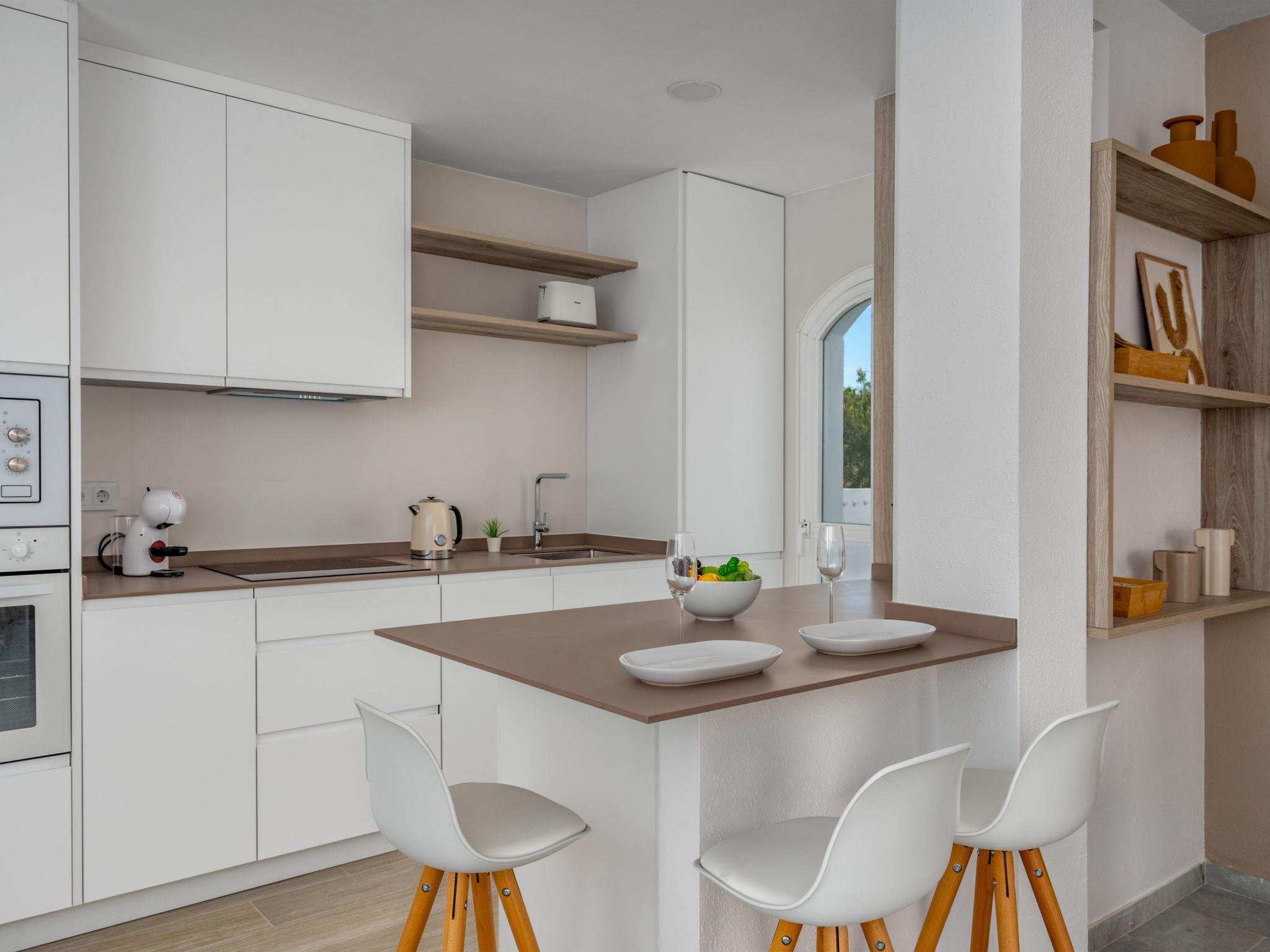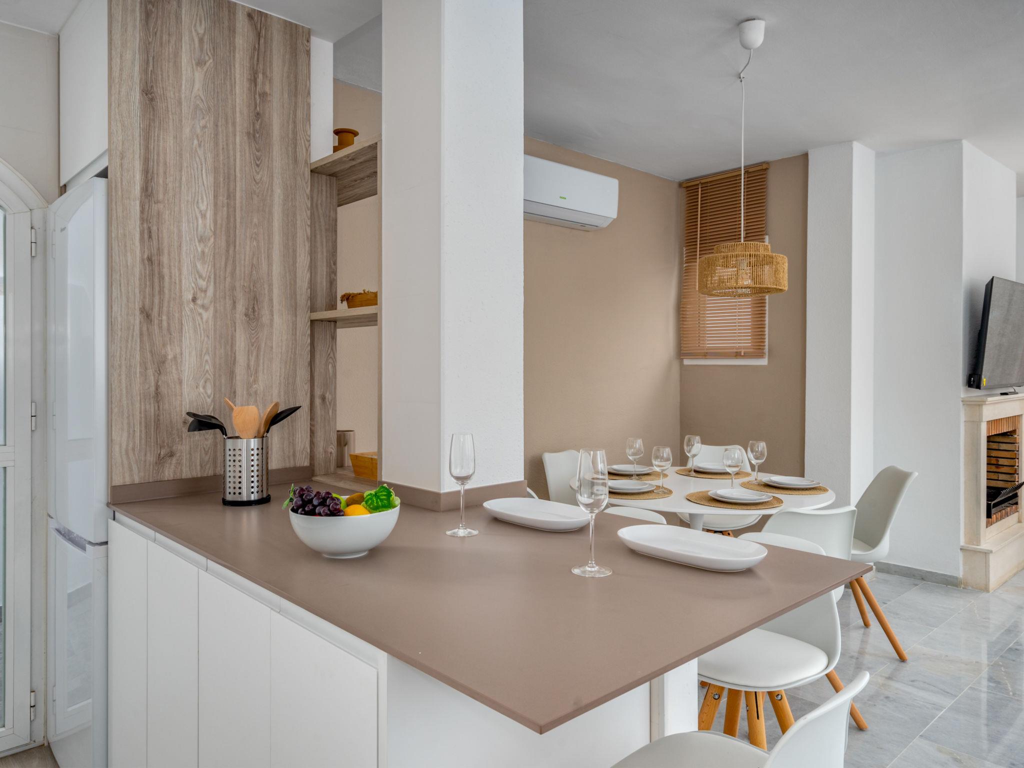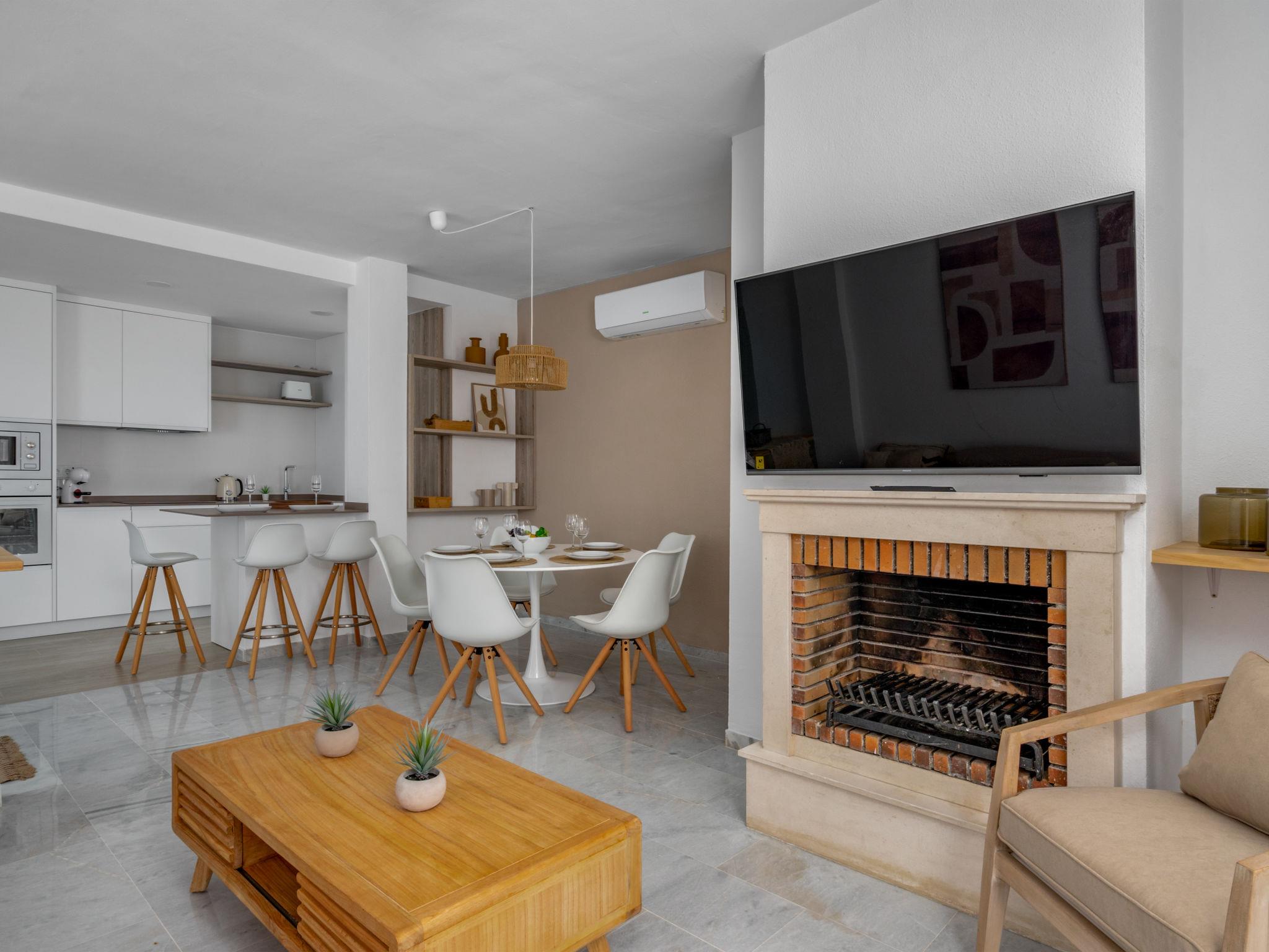 "Ático Los Pelicanos", 3-room penthouse 74 m2, south facing position. Object suitable for 4 adults. Bright, fully renovated in 2023, very comfortable and modern furnishings: living/dining room with open-hearth fireplace (only for decoration), dining table, TV, international TV channels, flat screen, air conditioning and forced-air heating. Exit to the terrace. 1 room with 2 beds (90 cm, length 190 cm), air conditioning, fan and forced-air heating. 1 room with 1 french bed (180 cm, length 200 cm), bath/shower/WC, air conditioning, fan and forced-air heating. Exit to the terrace. Open kitchen (oven, dishwasher, 4 ceramic glass hob hotplates, toaster, kettle, microwave, electric coffee machine) with bar. Bath/shower/WC. Terrace. Terrace furniture. Beautiful distant view of the sea. Facilities: washing machine, iron, children's high chair, baby cot for up to 2 year olds, hair dryer. Internet (WiFi, free). Parking space n 305 (1 car) at the house. Please note: suitable for families. Non-smokers only. No lift. VUT/MA/71063 // Reg. Nr.: ESFCTU0000290400000451630000000000000000VUT/MA/710638