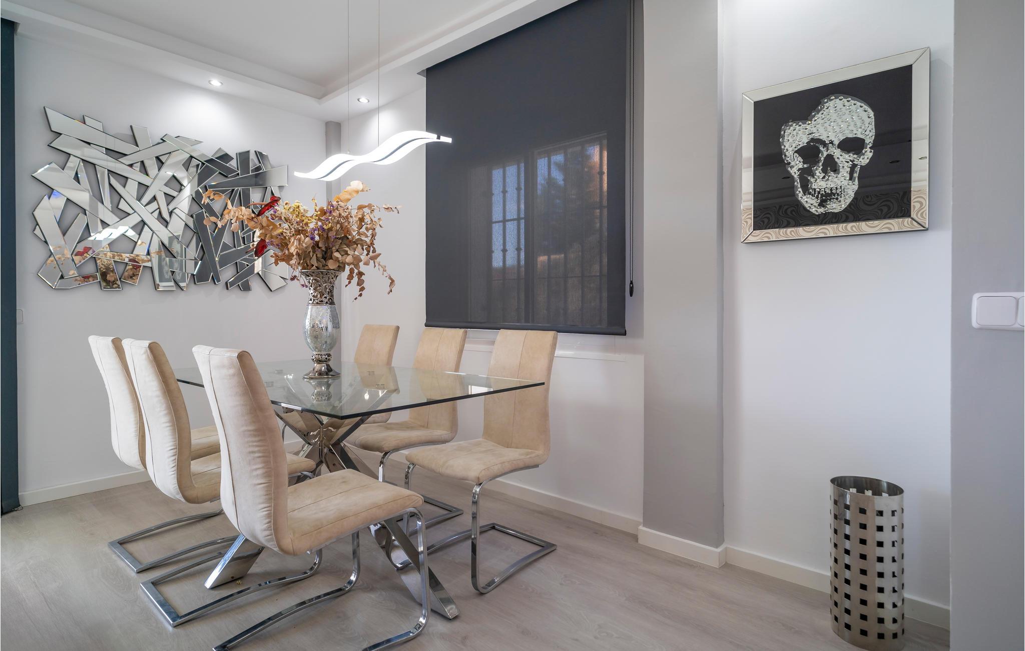 Östlich von Marbella begrüßt Sie in der Nähe der Küste dieses wunderschöne Ferienhaus. Im Innenraum erwartet Sie ein hochwertiges, komplett ausgestattetes Interieur, das einen hellen und stilvollen Eindruck macht. Hier finden bis zu mehreren Familien Platz, Komfort und alles, was für einen erstklassigen Urlaub benötigt wird. Bereiten Sie Ihre Köstlichkeiten in der modernen Küche zu und unterhalten Sie sich mit den übrigen Feriengästen.