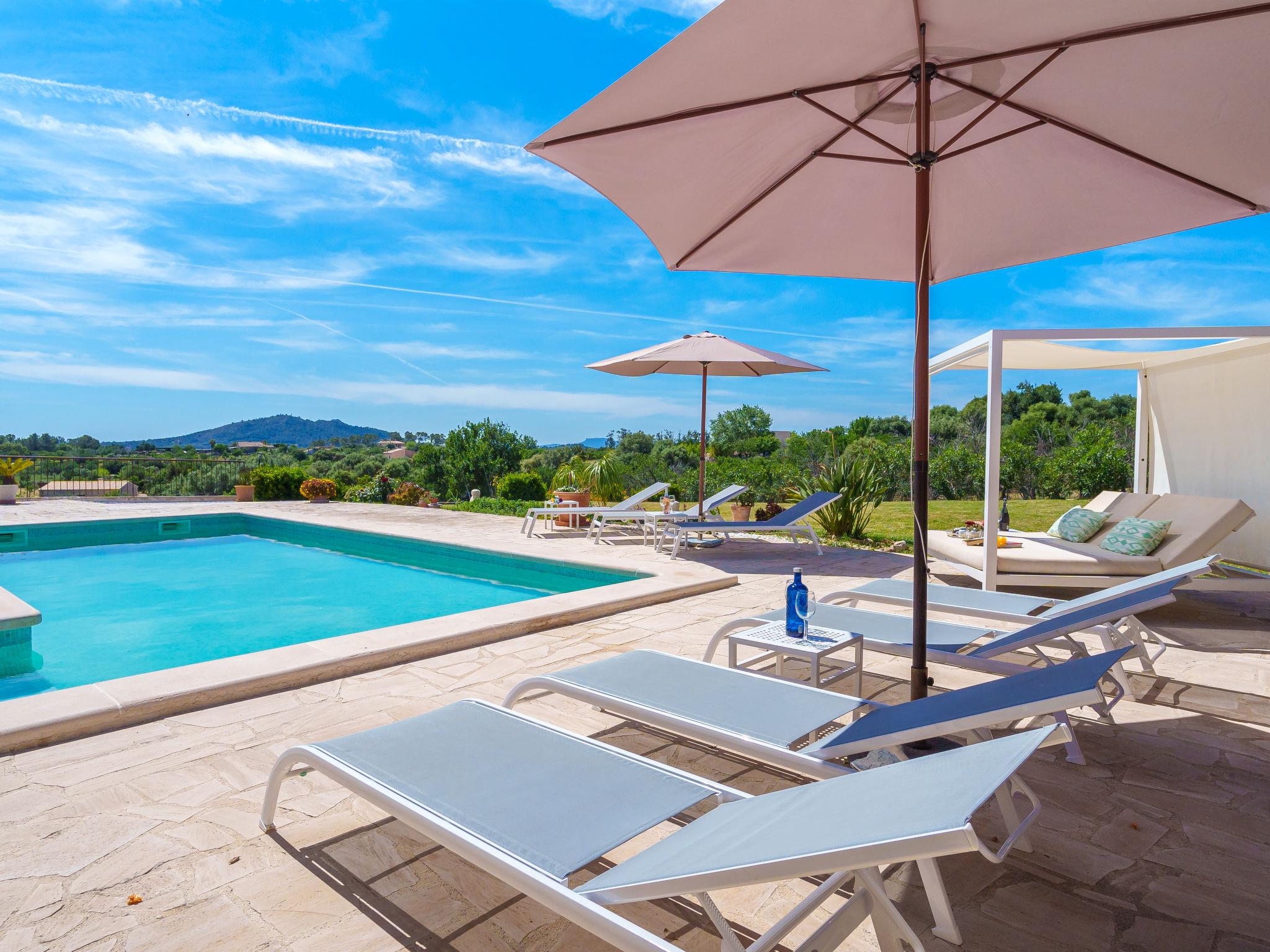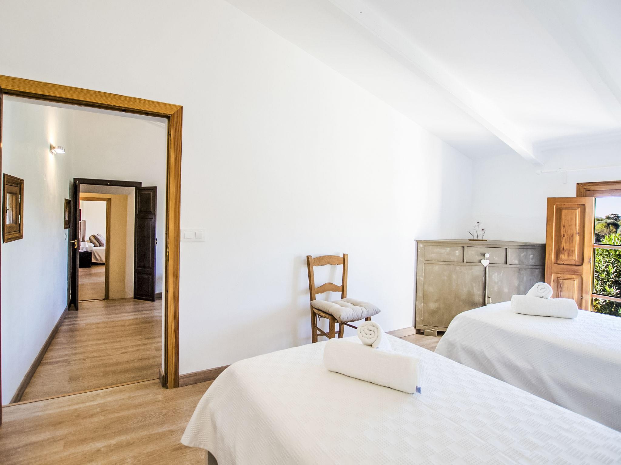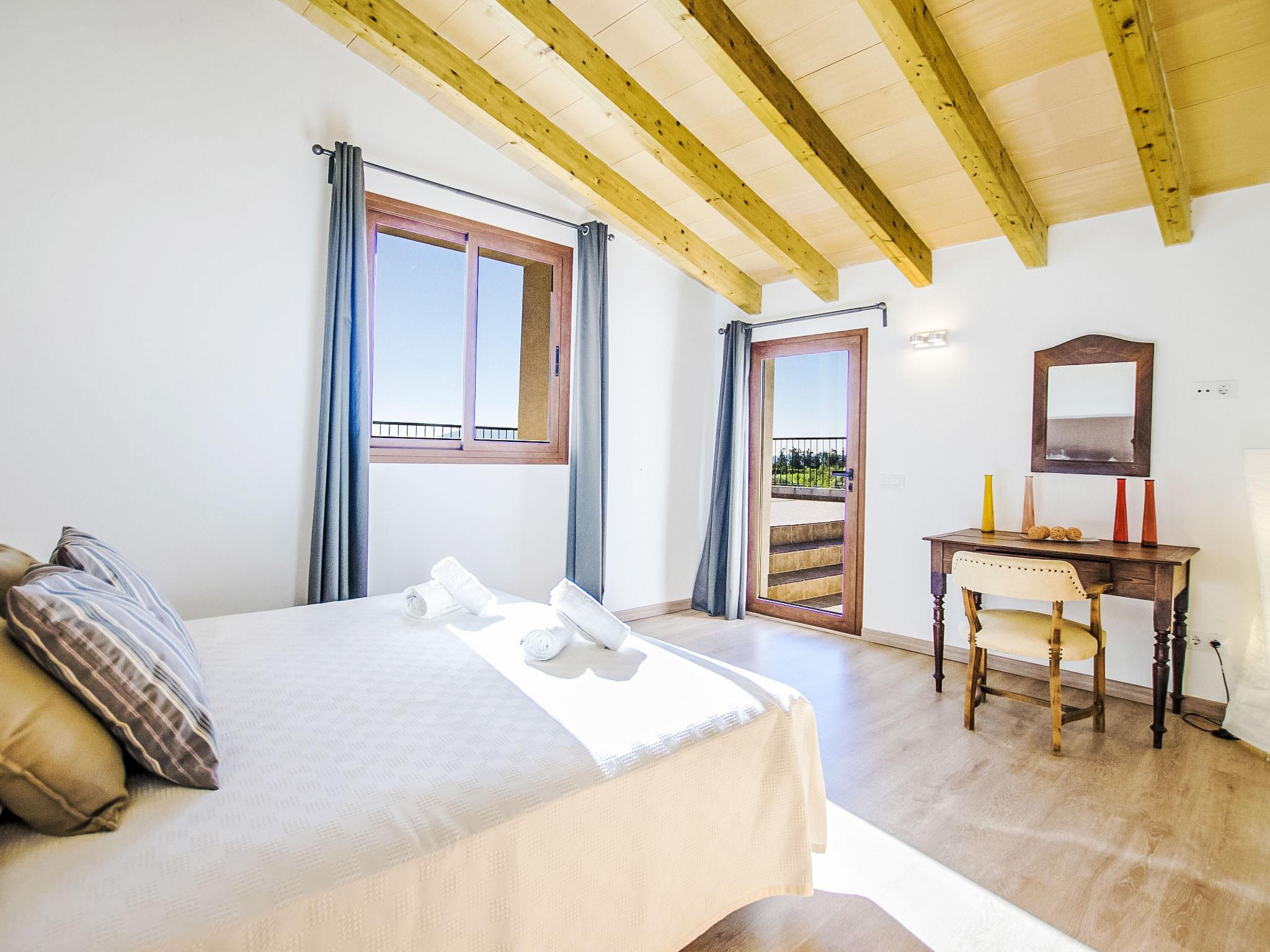 "Es Cos", 5-room villa 200 m2 on 2 levels. Object suitable for 8 adults. Spacious, fully renovated, very beautiful and tasteful furnishings: large living room with TV, satellite TV, flat screen, air conditioning and forced-air heating. Exit to the patio, to the swimming pool. 1 large double bedroom with panoramic window with 1 french bed, air conditioning and forced-air heating. Exit to the patio, to the swimming pool. Kitchen-/living room (oven, dishwasher, 3 ceramic glass hob hotplates, microwave, freezer, electric coffee machine, cooking island) with dining table, air conditioning and forced-air heating. Exit to the patio, to the swimming pool. Bath/shower/WC. Upper floor: (ladder), 1 large double bedroom with panoramic window with 1 french bed, air conditioning and forced-air heating. Exit to the balcony, to the terrace. (ladder), 1 double bedroom with panoramic window with 1 french bed. (ladder) walk-through room, large with panoramic window with 2 beds (90 cm), air conditioning and forced-air heating. Bath/shower/WC. Natural stone floors. Comfortable furnishings in the country house style. Large patio, lawn. Terrace furniture, balcony furniture, barbecue, deck chairs (8), covered balcony. Very beautiful view of the mountains and the countryside. Facilities: washing machine, iron, children's high chair, baby cot, hair dryer. Internet (WiFi, free). Parking at the house. Suitable for families. ETV7057 // Reg. Nr.: ESFCTU00000702200013633900000000000000000000ETV/70575