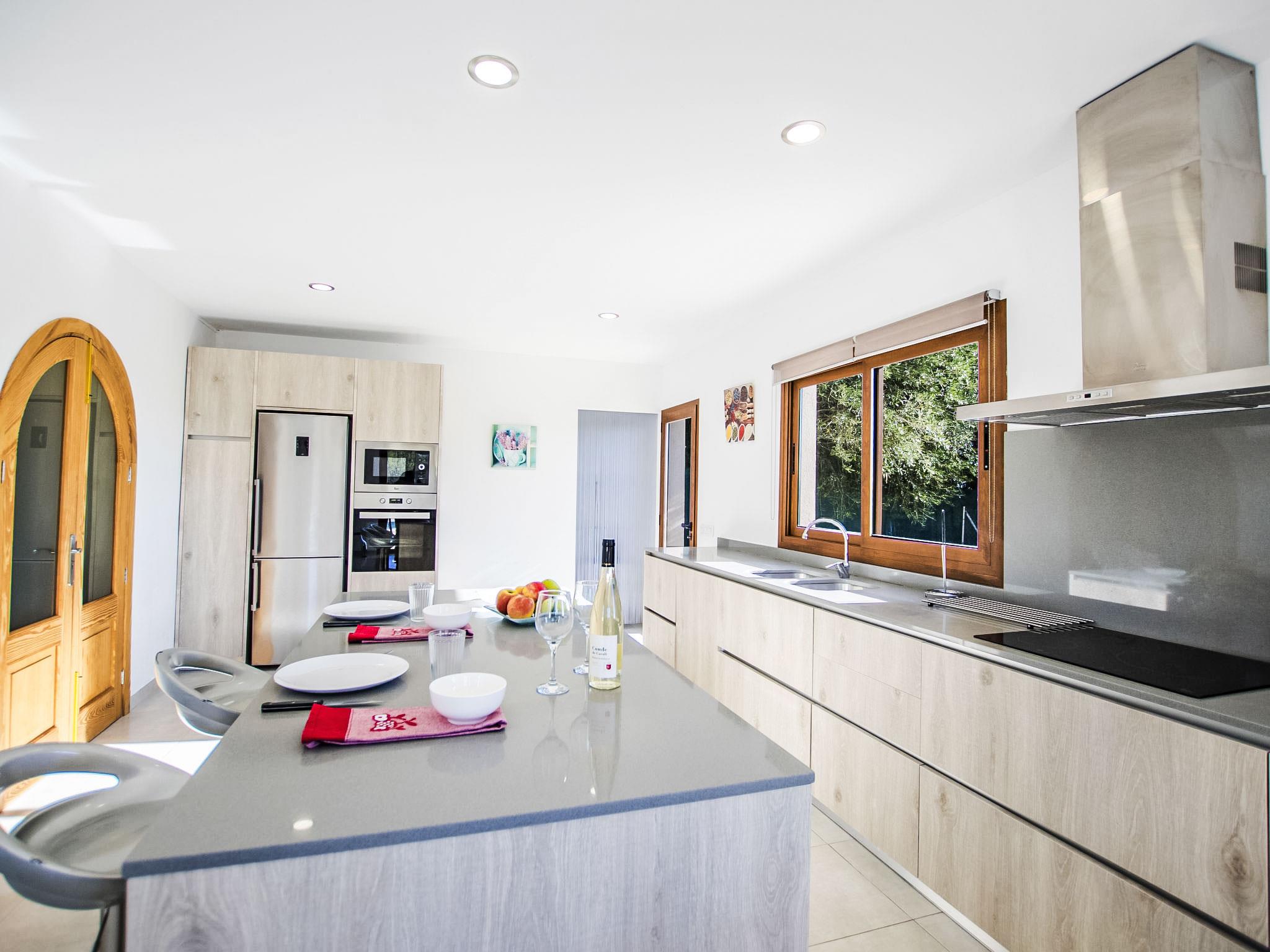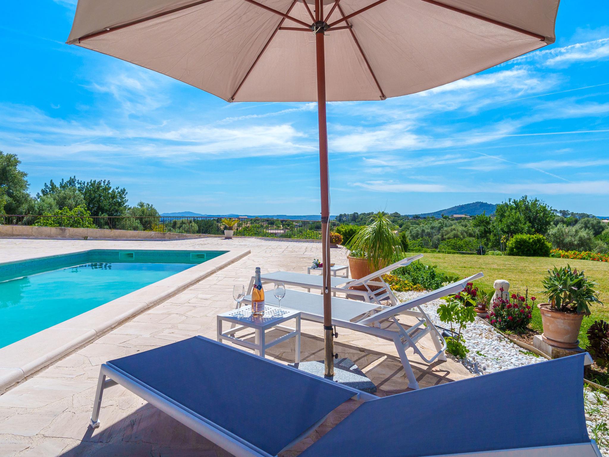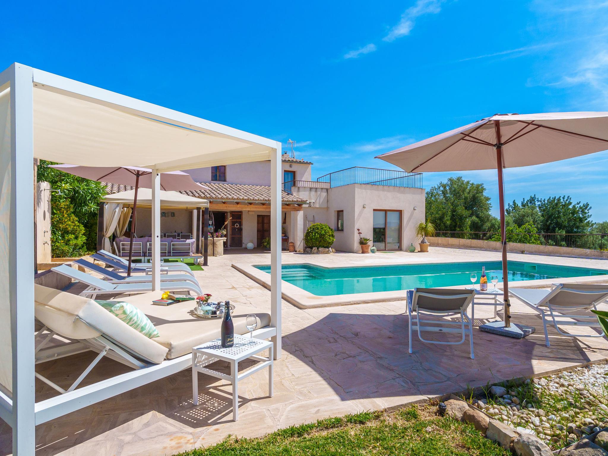 "Es Cos", 5-room villa 200 m2 on 2 levels. Object suitable for 8 adults. Spacious, fully renovated, very beautiful and tasteful furnishings: large living room with TV, satellite TV, flat screen, air conditioning and forced-air heating. Exit to the patio, to the swimming pool. 1 large double bedroom with panoramic window with 1 french bed, air conditioning and forced-air heating. Exit to the patio, to the swimming pool. Kitchen-/living room (oven, dishwasher, 3 ceramic glass hob hotplates, microwave, freezer, electric coffee machine, cooking island) with dining table, air conditioning and forced-air heating. Exit to the patio, to the swimming pool. Bath/shower/WC. Upper floor: (ladder), 1 large double bedroom with panoramic window with 1 french bed, air conditioning and forced-air heating. Exit to the balcony, to the terrace. (ladder), 1 double bedroom with panoramic window with 1 french bed. (ladder) walk-through room, large with panoramic window with 2 beds (90 cm), air conditioning and forced-air heating. Bath/shower/WC. Natural stone floors. Comfortable furnishings in the country house style. Large patio, lawn. Terrace furniture, balcony furniture, barbecue, deck chairs (8), covered balcony. Very beautiful view of the mountains and the countryside. Facilities: washing machine, iron, children's high chair, baby cot, hair dryer. Internet (WiFi, free). Parking at the house. Suitable for families. ETV7057 // Reg. Nr.: ESFCTU00000702200013633900000000000000000000ETV/70575