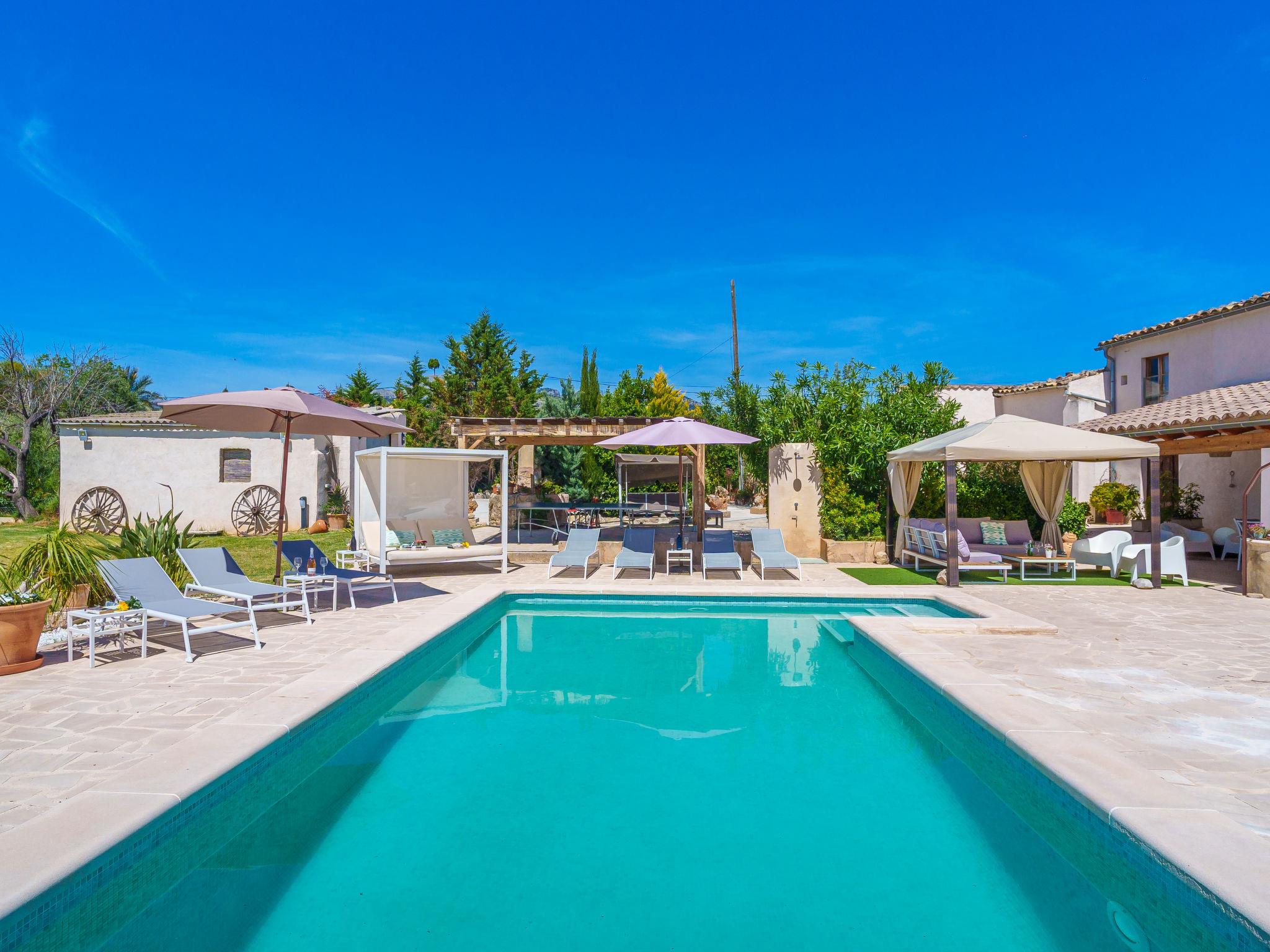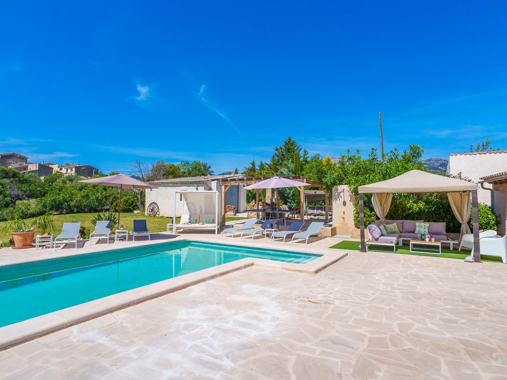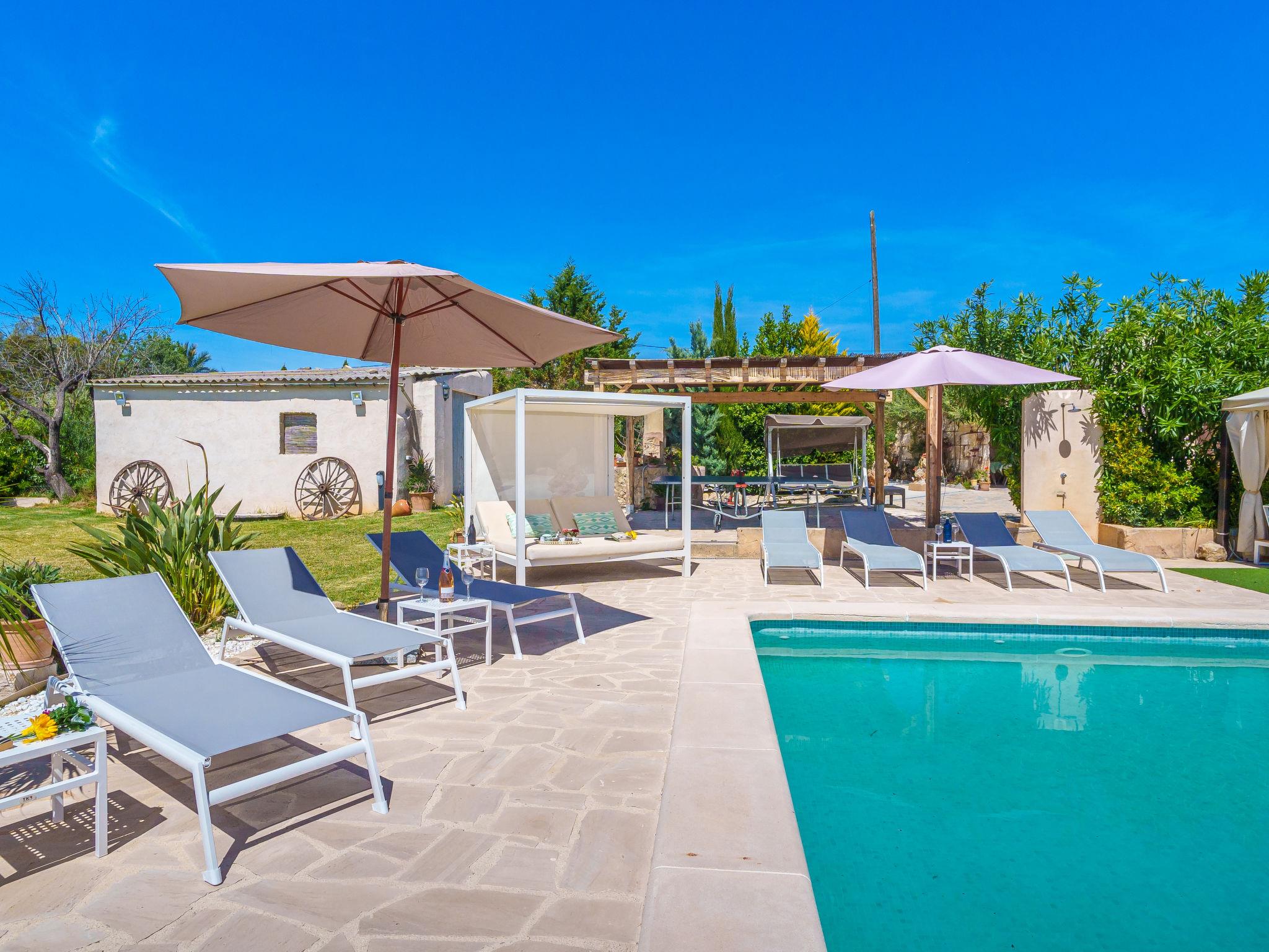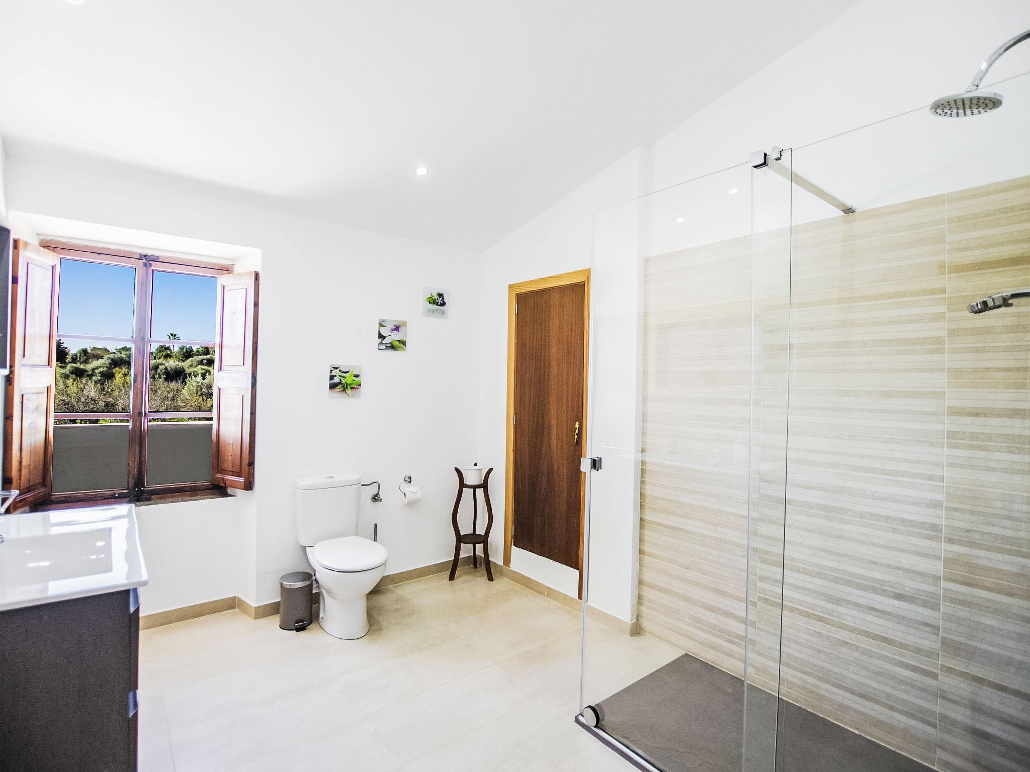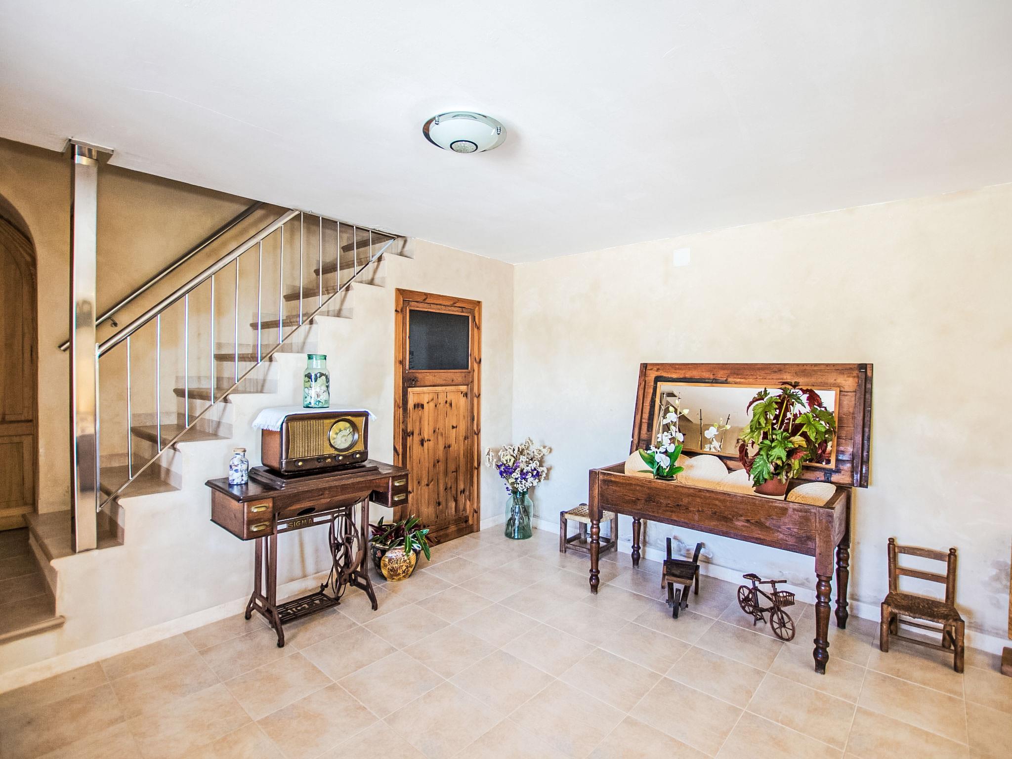 Moscari: Very large, very beautiful farm estate "Es Cos", 2 storeys, renovated, surrounded by trees. Outside the resort, 500 m from the centre of Moscari, in a quiet, sunny position, 2 km from the edge of the forest, 22 km from the sea, 22 km from the beach. Private: garden with lawn and wildlife garden, swimming pool angular (9 x 5 m, seasonal availability: 01.Jan. - 31.Dec.). Outdoor shower, table tennis, patio, arbour, pergola, garden furniture, barbecue. In the house: internet access, WiFi, table tennis, air conditioning, washing machine. Parking at the house on the premises. Grocery 900 m, supermarket 4 km, restaurant 900 m, bar, bakery 900 m, café, internet café, pedestrian zone, bicycle rental 4 km, pub garden 900 m, bus stop, sandy beach 22 km pebble beach 22 km, shingle beach 22 km. Sports harbour 25 km, marina 25 km, golf course (18 hole) 30 km, surf school 25 km, sailing school 40 km, tennis 4 km, riding stable 9 km, sports centre 9 km, cycle lane 3 km. Please note: suitable for families, suitable for seniors. Object suitable for 8 adults groups of teenagers on request only. Loading and unloading of baggage is possible at the holiday house. Main road close by.