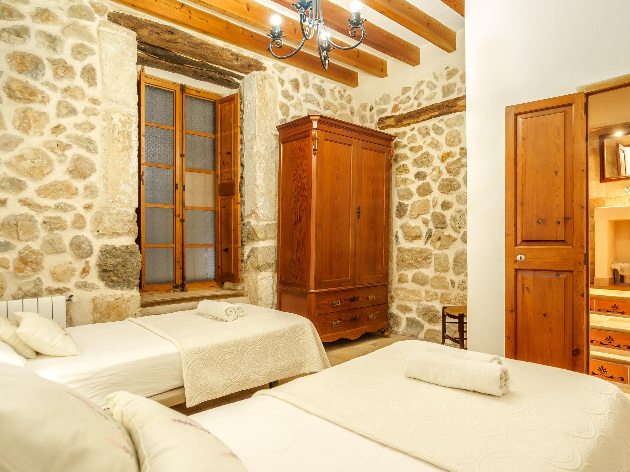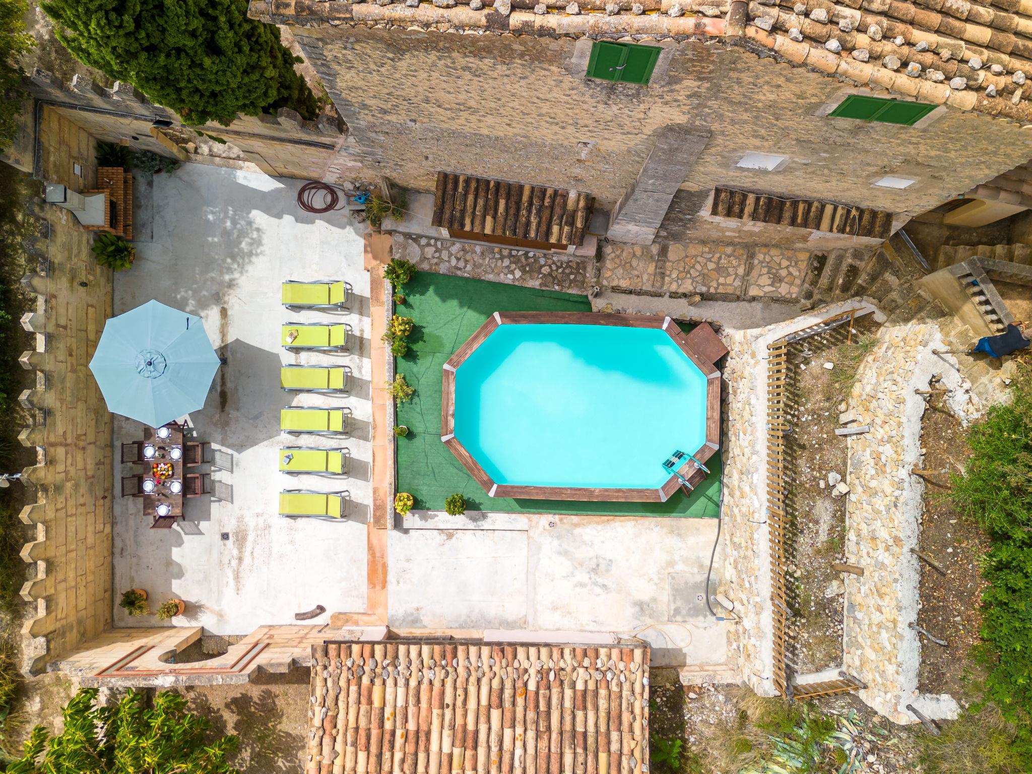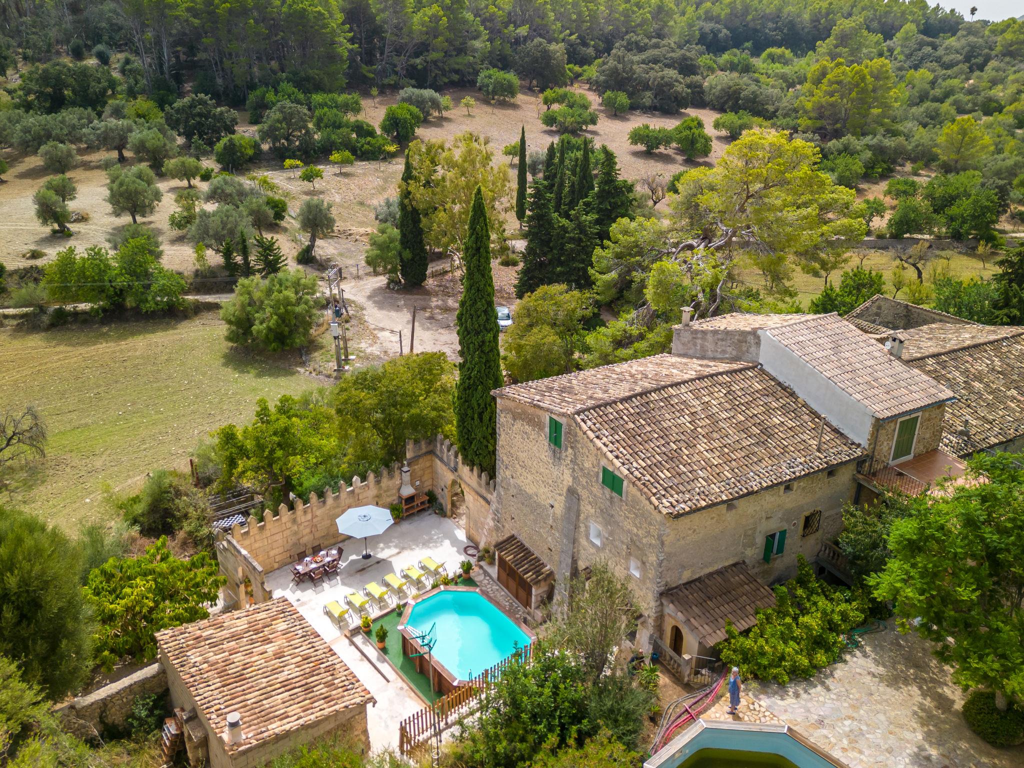 Beautiful, cosy apartment block "Sa Bisbal", renovated, surrounded by trees and fields. Outside the resort, 1.5 km from the centre of Moscari, in a quiet, sunny position, 24 km from the sea, in the countryside. Private: swimming pool (above ground) (6 x 4 m, depth 150 - 150 cm, seasonal availability: 01.Apr. - 25.Nov.). Patio, garden furniture, barbecue, pool maintenance by the owner/gardener. In the house: central heating system, heating to be paid on the spot. 700 m long bumpy, narrow motor access (mountain road). Parking at the house on the premises. Grocery 1.6 km, supermarket 7 km, restaurant 3.8 km, bar 1.5 km, bicycle rental 3.8 km, 21 minute walk to the centre, bus stop 1.6 km, sandy beach "Port d'Alcúdia" 23.4 km. Sports harbour 25 km, golf course (18 hole) 19 km, walking paths from the house 500 m, cycle lane. Nearby attractions: Moscari,Caimari,Selva,Campanet,Pollença, Ciudad de Inca 8 km, Santuari de Lluc 15 km, Port de Pollença 30 km, Palma City 42 km, Mallorca Fashion Outlet & Cinemas 28 km. Hiking paths: Serra de Tramuntana, Santa Magdalena Inca, Puig de Maria Pollença. Please note: car recommended. Object suitable for 6 adults. The owner does not accept any youth groups. Animals in the neighbourhood. Airfield 43 km from the property. Neighbourhood highly sensitive to noise. Quietness and good behaviour expected.