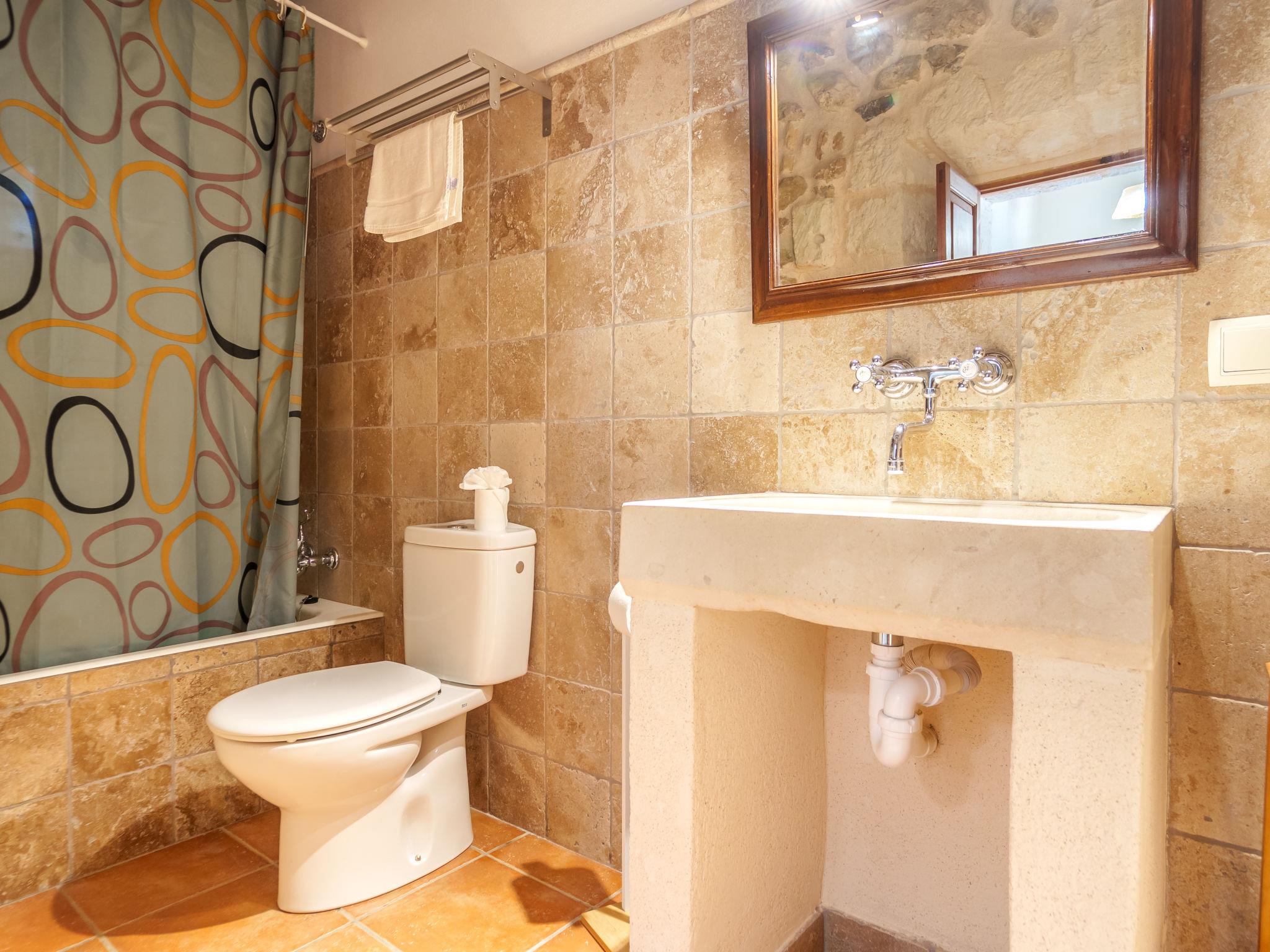 "Sa Bisbal", 5-room apartment 130 m2, on the upper ground floor. Object suitable for 4 adults. Practical and comfortable furnishings: dining room with dining table, air conditioning and forced-air heating. Large living room with digital TV, flat screen, air conditioning and forced-air heating. 1 large double bedroom with 1 double bed (180 cm, length 200 cm), hand-basin, shower/bidet/WC, air conditioning and forced-air heating. 1 double bedroom with 2 beds (90 cm, length 180 cm), fan. 1 large double bedroom with 1 french bed (180 cm, length 200 cm), hand-basin, shower/bidet/WC and fan. Kitchen (3 hot plates, oven, dishwasher, toaster, kettle, microwave, freezer, grill, electric coffee machine) with dining table. Bath/WC. Patio, porch. Terrace furniture, barbecue, deck chairs (4). Facilities: washing machine, iron, children's high chair, baby cot for up to 2 year olds, hair dryer. Internet (WiFi, free). Please note: non-smoking house. The pool mentioned in the description is for private use. ETV/9855 // Reg. Nr.: ESFCTU00000702200031242900000000000000000000ETV/98551