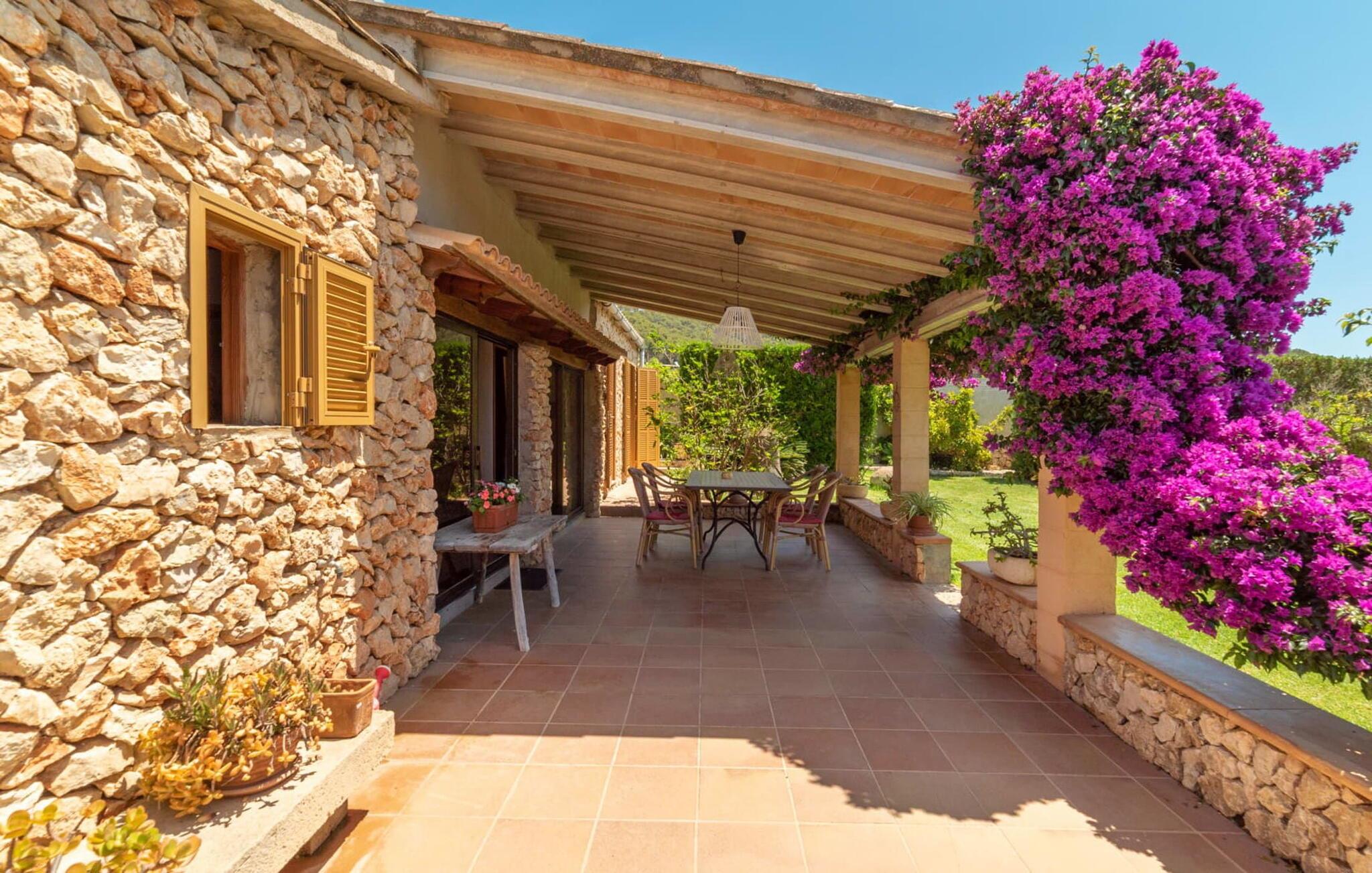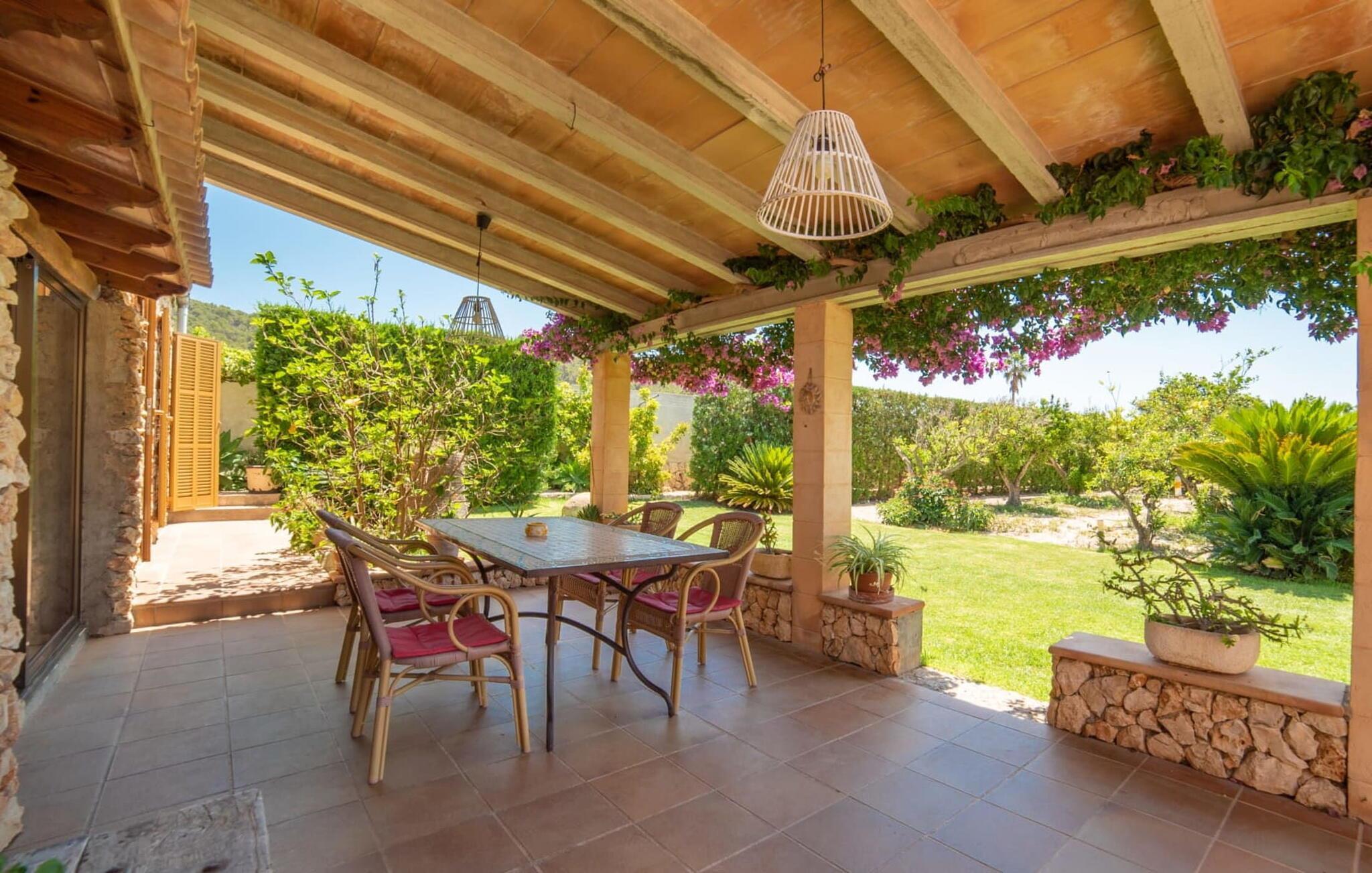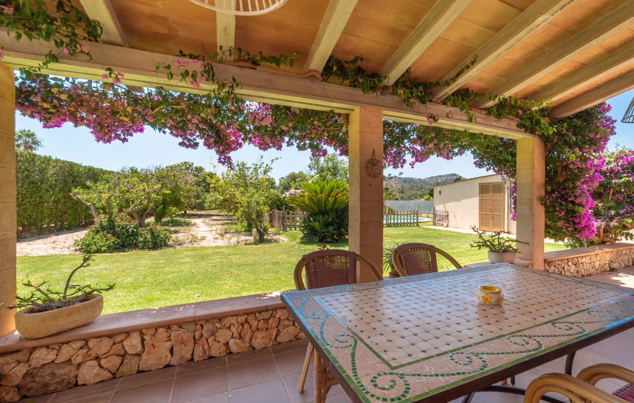 Die strahlend weiße Villa „Padre“ ist mit ihren teilweise freigelegten Steindurchgängen den mallorquinischen Architekturtraditionen treu geblieben. Es liegt ganz in der Nähe von Son Servera und ist wunderbar in die wunderschöne Hügellandschaft rund um diesen Ort eingebettet. Der Eingang zum Anwesen führt zu einem wunderschön gestalteten Garten mit großer Rasenfläche und Spielbereich, gesäumt von Zitronen-, Mandel- und Palmen. Mit einem dekorativen, weißen Zaun zur Kindersicherung ist der nierenförmige Pool ein Ort, an dem unsere kleinen Gäste nach Herzenslust spielen und toben können. Besonders praktisch für Tage am Pool mit Kindern ist ein Außenbad mit zusätzlicher Dusche und Toilette. Sie können Ihre Kleinen beim Entspannen auf den zahlreichen Sitzplätzen im Freien beobachten, vielleicht beim Sonnenbaden oder beim Lesen eines guten Buches im Schatten eines Sonnenschirms. Die umliegende, weitläufige Rasenfläche mit vielen schattigen Plätzen unter den Bäumen ist einfach ein idealer Ort, um die Ruhe zu genießen. Direkt neben dem Haus befindet sich die Veranda mit einem schönen Essbereich. Wenn Sie in der kleinen Außenküche ein leckeres Barbecue zubereitet haben, können Sie es an einem schönen, warmen Tag draußen auf der Terrasse mit Blick ins üppige Grün genießen.