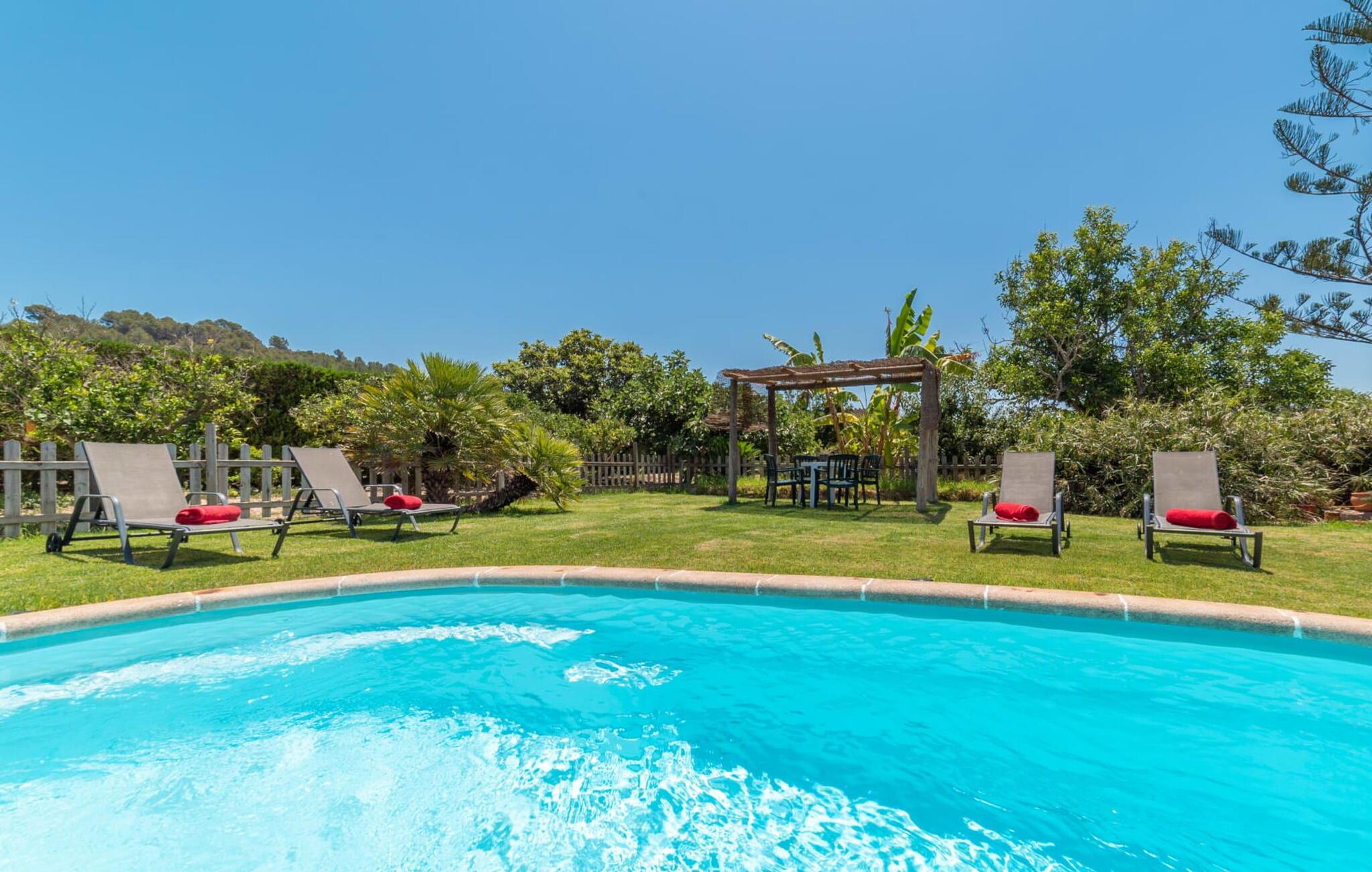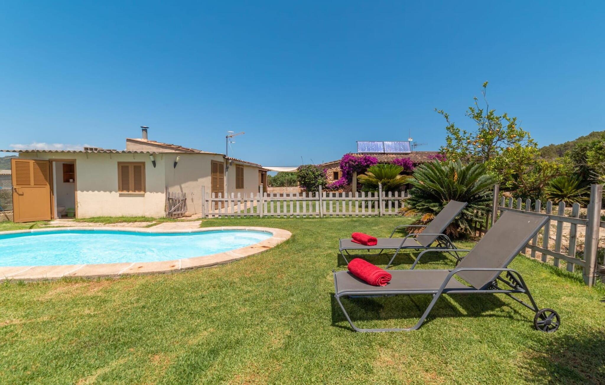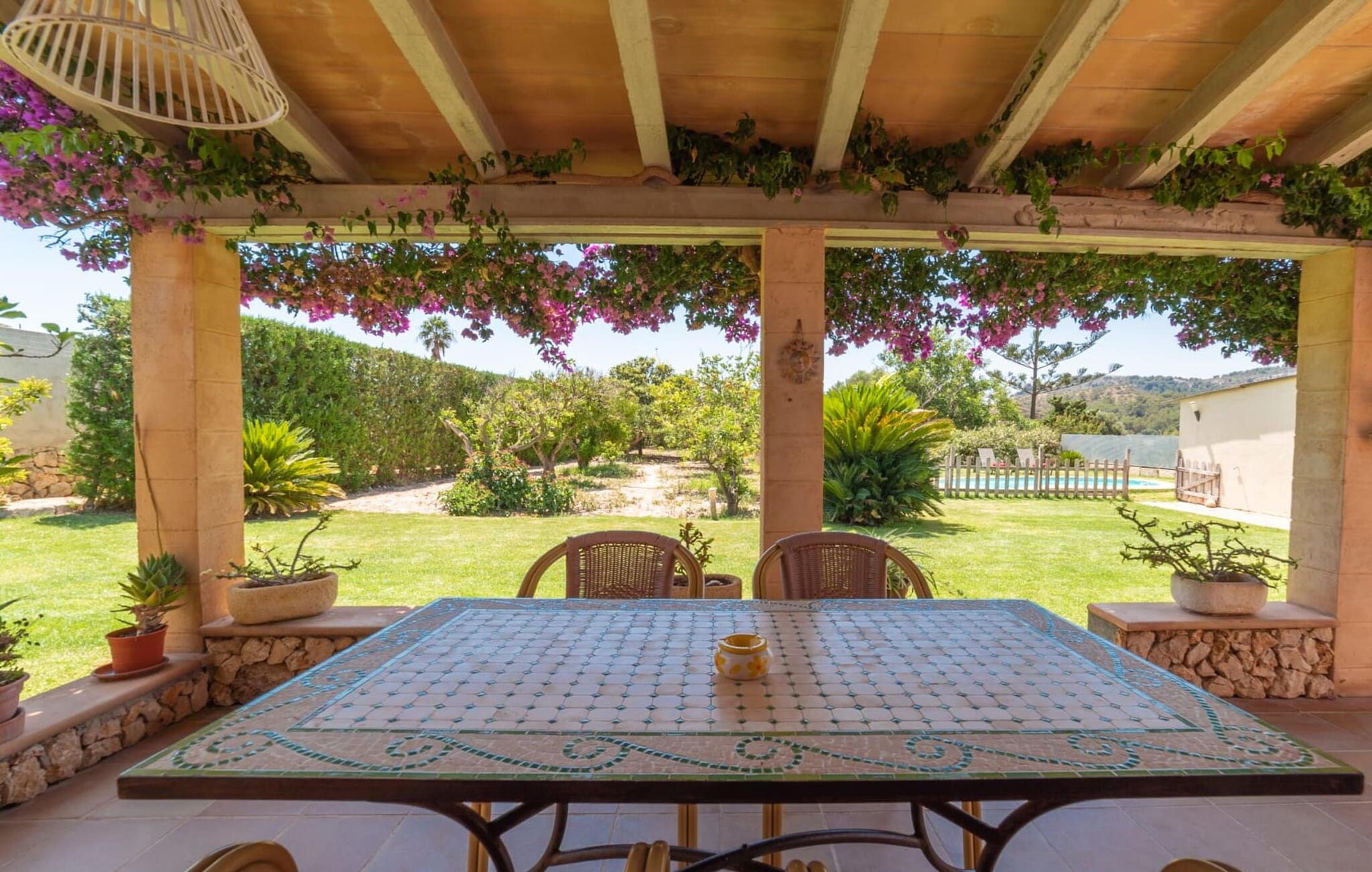 Die strahlend weiße Villa „Padre“ ist mit ihren teilweise freigelegten Steindurchgängen den mallorquinischen Architekturtraditionen treu geblieben. Es liegt ganz in der Nähe von Son Servera und ist wunderbar in die wunderschöne Hügellandschaft rund um diesen Ort eingebettet. Der Eingang zum Anwesen führt zu einem wunderschön gestalteten Garten mit großer Rasenfläche und Spielbereich, gesäumt von Zitronen-, Mandel- und Palmen. Mit einem dekorativen, weißen Zaun zur Kindersicherung ist der nierenförmige Pool ein Ort, an dem unsere kleinen Gäste nach Herzenslust spielen und toben können. Besonders praktisch für Tage am Pool mit Kindern ist ein Außenbad mit zusätzlicher Dusche und Toilette. Sie können Ihre Kleinen beim Entspannen auf den zahlreichen Sitzplätzen im Freien beobachten, vielleicht beim Sonnenbaden oder beim Lesen eines guten Buches im Schatten eines Sonnenschirms. Die umliegende, weitläufige Rasenfläche mit vielen schattigen Plätzen unter den Bäumen ist einfach ein idealer Ort, um die Ruhe zu genießen. Direkt neben dem Haus befindet sich die Veranda mit einem schönen Essbereich. Wenn Sie in der kleinen Außenküche ein leckeres Barbecue zubereitet haben, können Sie es an einem schönen, warmen Tag draußen auf der Terrasse mit Blick ins üppige Grün genießen.