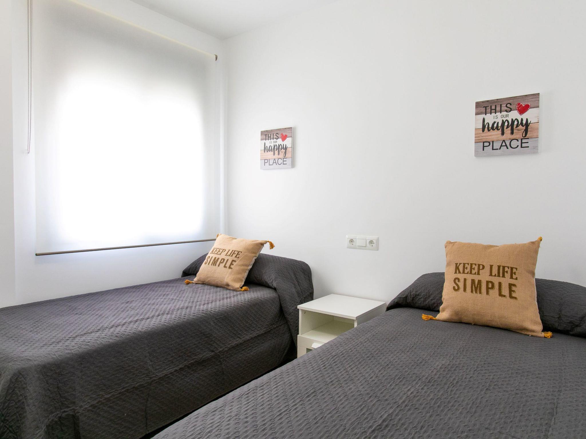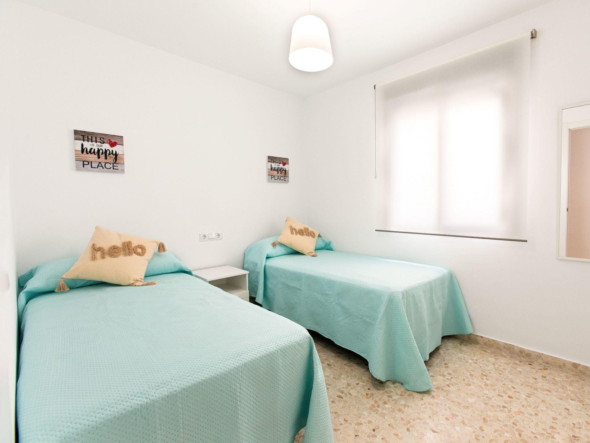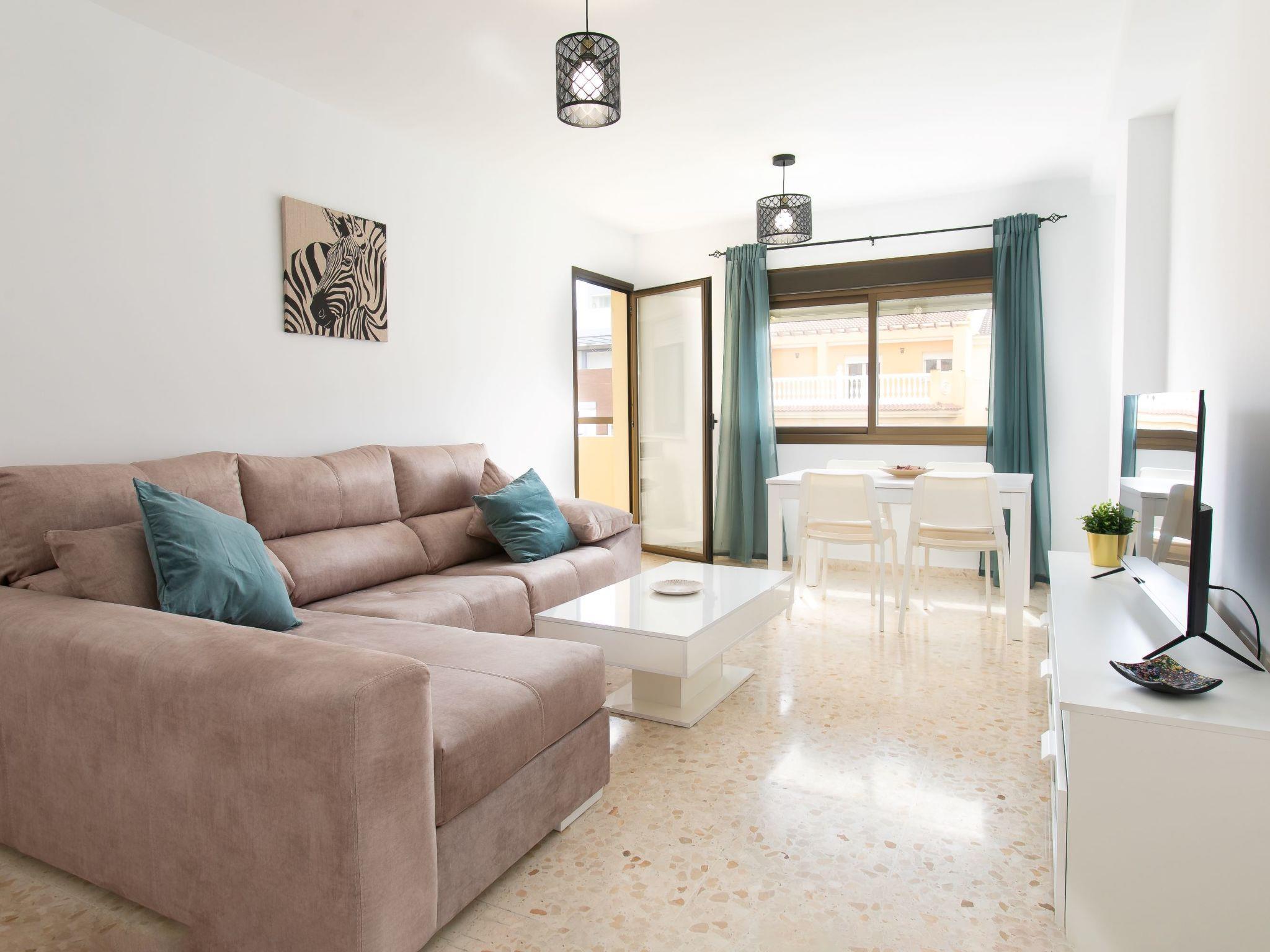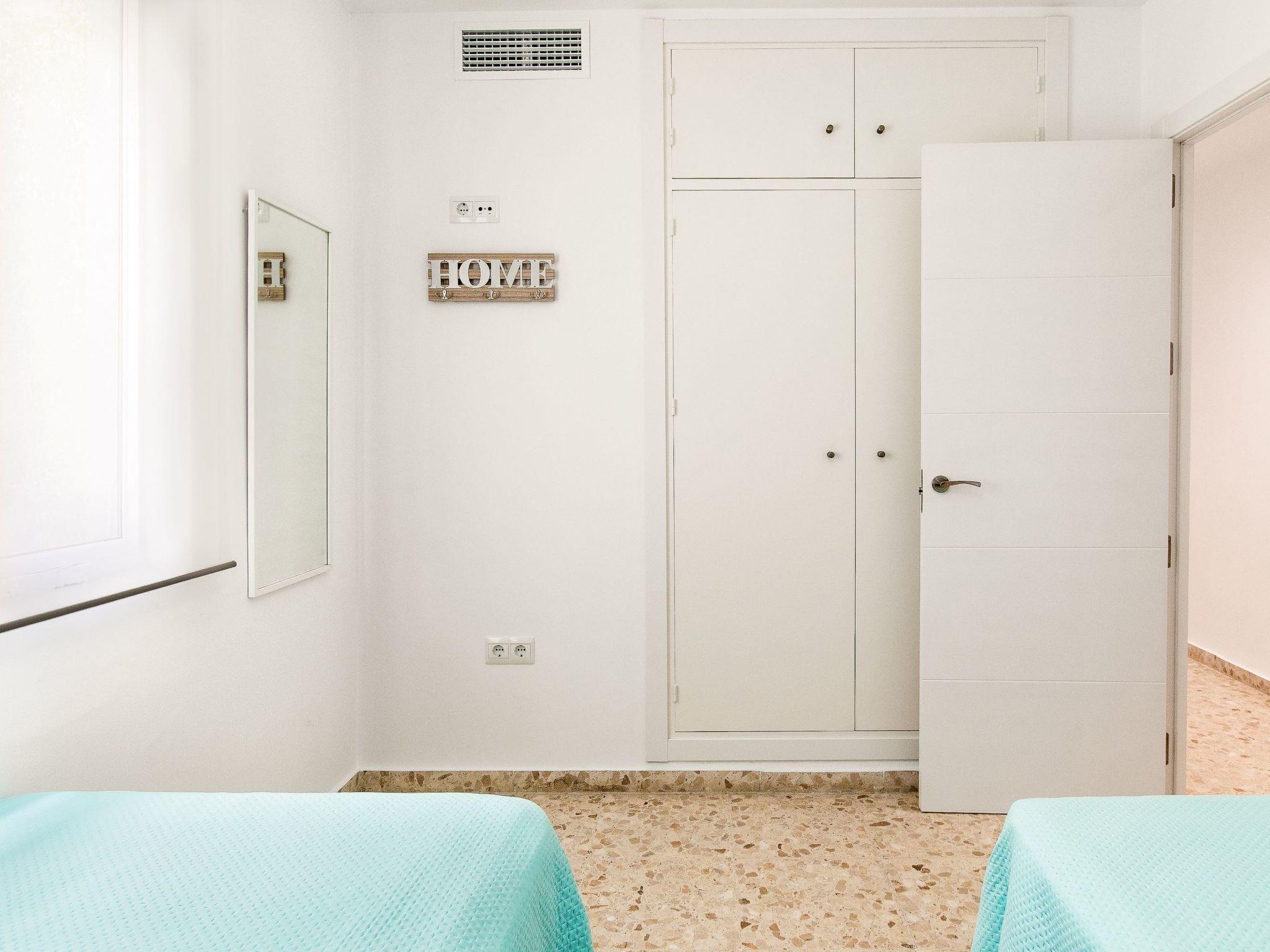 "Ercén", 4-room apartment 80 m2, on the upper floor, south facing position. Object suitable for 6 adults. Beautiful and modern furnishings: living/dining room with digital TV. Exit to the terrace. 1 room with 1 french bed (1 x 150 cm, length 190 cm). 1 room with 2 beds (90 cm, length 180 cm). 1 room with 2 beds (90 cm, length 180 cm). Kitchen-/living room (oven, dishwasher, 3 ceramic glass hob hotplates, toaster, kettle, microwave, freezer). Shower/WC, sep. WC. Boiler (80 litres). Balcony furniture. Partial view of the sea and the resort. Facilities: washing machine, iron, hair dryer. Internet (WiFi, free). Please note: TV only ES. VUT/MA/81610 // Reg. Nr.: ESFCTU0000290250003122240000000000000000VUT/MA/816109