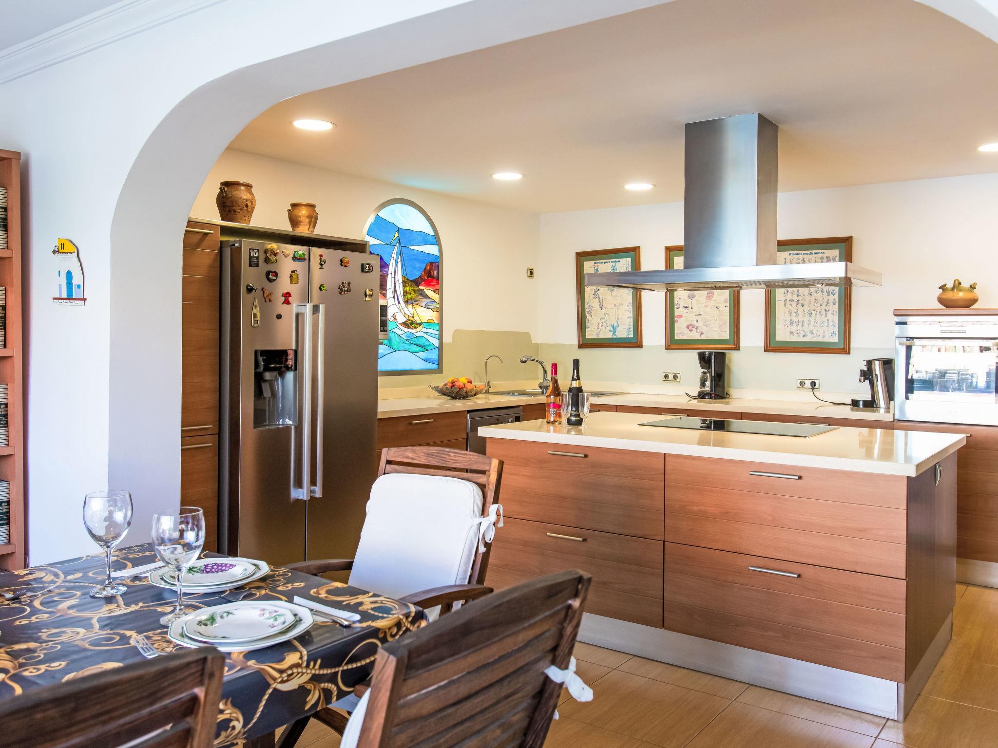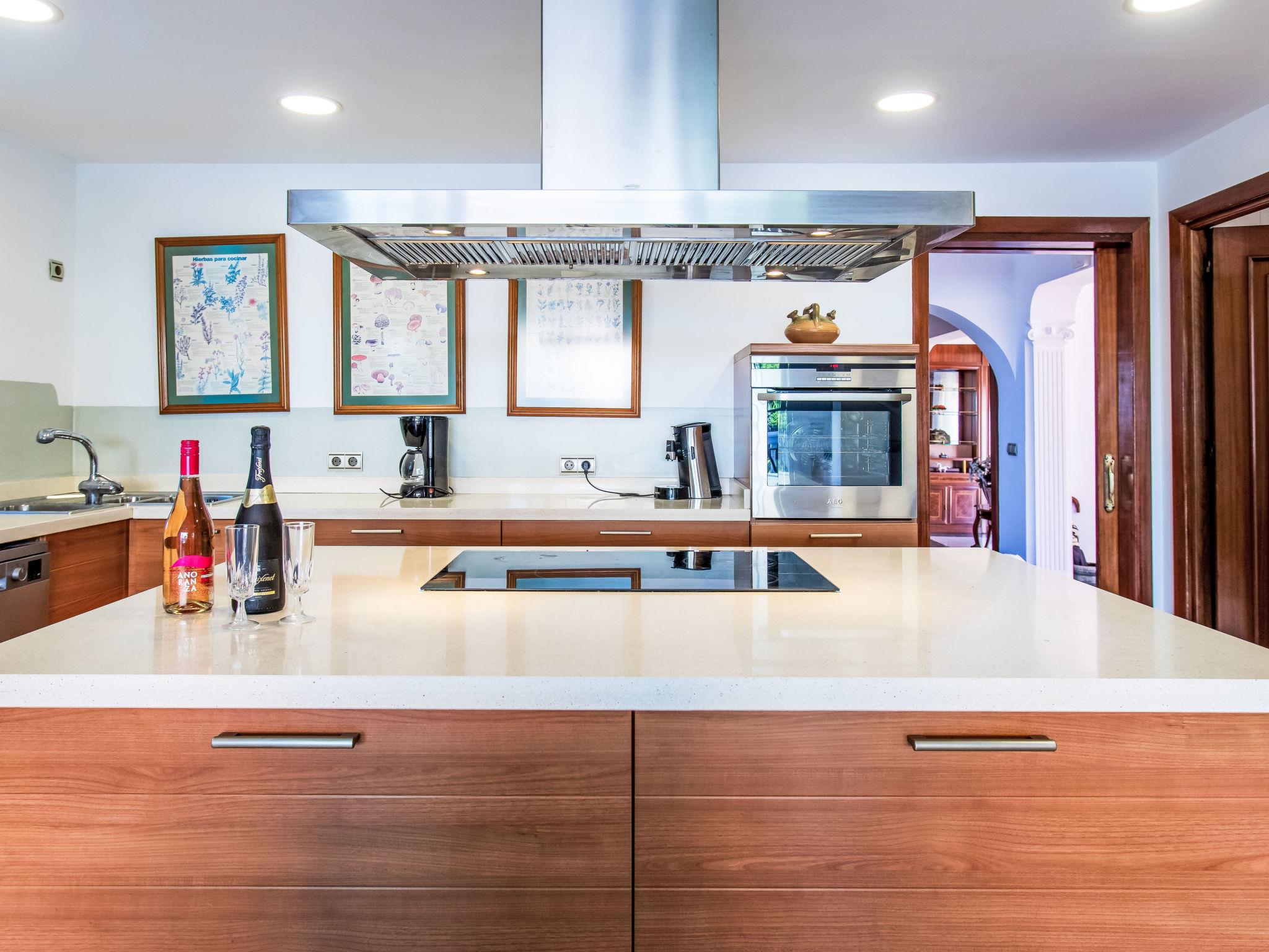 "Villa Almudena", 4-room house 200 m2, south facing position. Simple and practical furnishings: living/dining room with digital TV, air conditioning, forced-air heating and boiler (100 litres), electric shutters. Open kitchen (oven, dishwasher, 4 induction hot plates, toaster, kettle, microwave, electric coffee machine). Exit to the patio, to the swimming pool. Bath/bidet/WC. Heating not available in all rooms. Upper floor: 1 room with curtain with 1 french bed (1 x 140 cm, length 200 cm), air conditioning, fan and forced-air heating. 1 room with curtain with 2 beds (90 cm, length 190 cm), air conditioning and forced-air heating. 1 room with curtain with 1 french bed (1 x 140 cm, length 200 cm), air conditioning, fan and forced-air heating. 1 room with curtain with 1 french bed (1 x 150 cm, length 190 cm), air conditioning, fan and forced-air heating. Bath/WC. Large patio. Barbecue, deck chairs (4). Facilities: washing machine, iron, hair dryer. Internet (WiFi, free). Parking (2 cars). Please note: TV only ES. VUT/MA/77881 // Reg. Nr.: ESFCTU0000290250003884580000000000000000VUT/MA/778812
