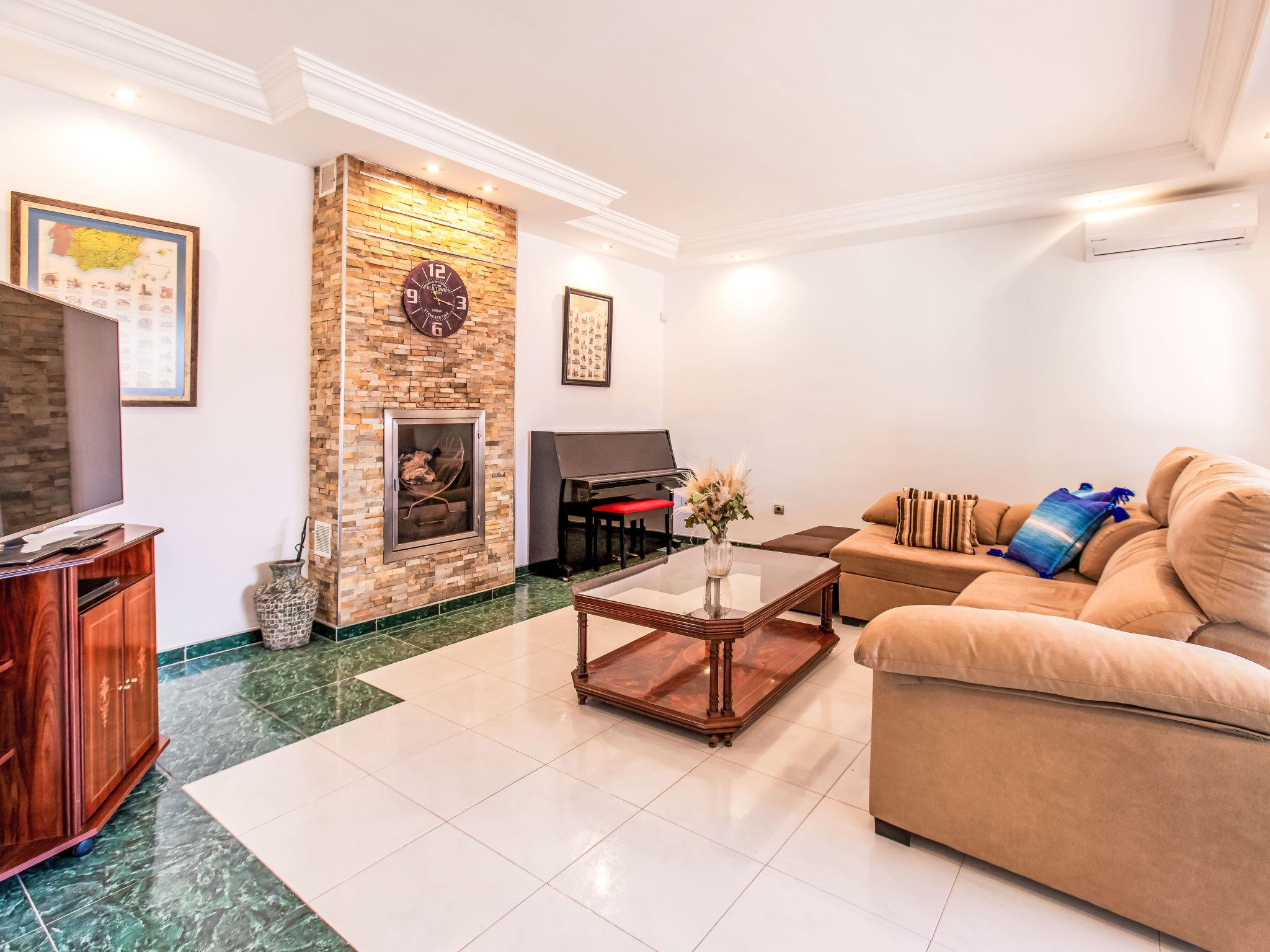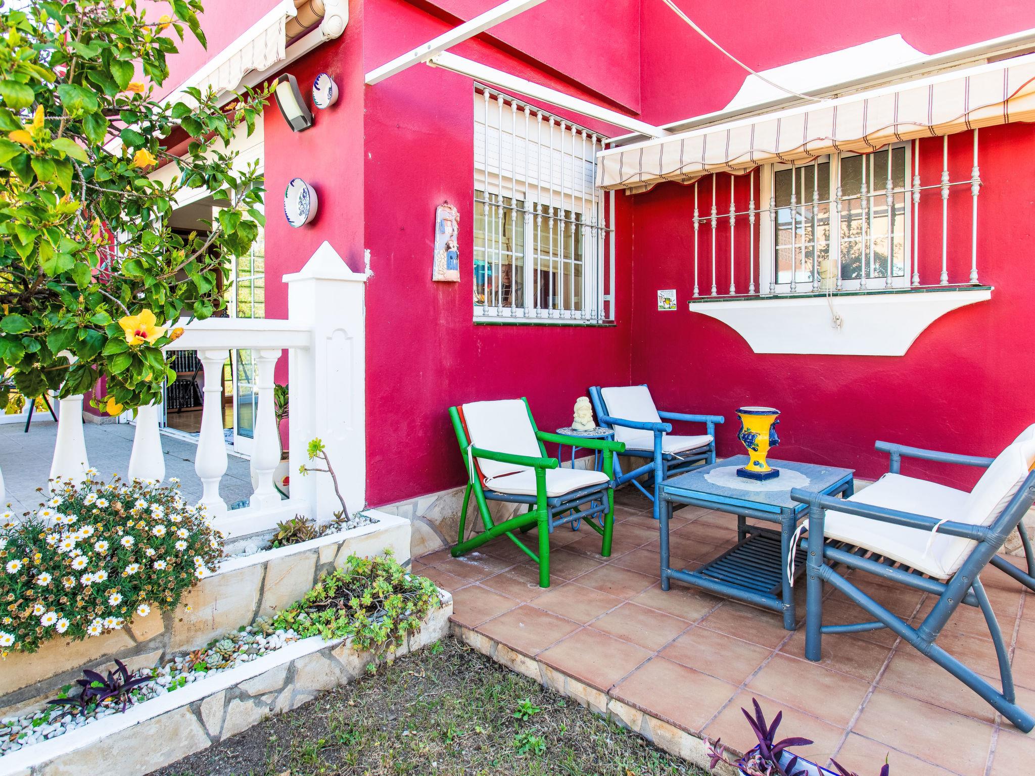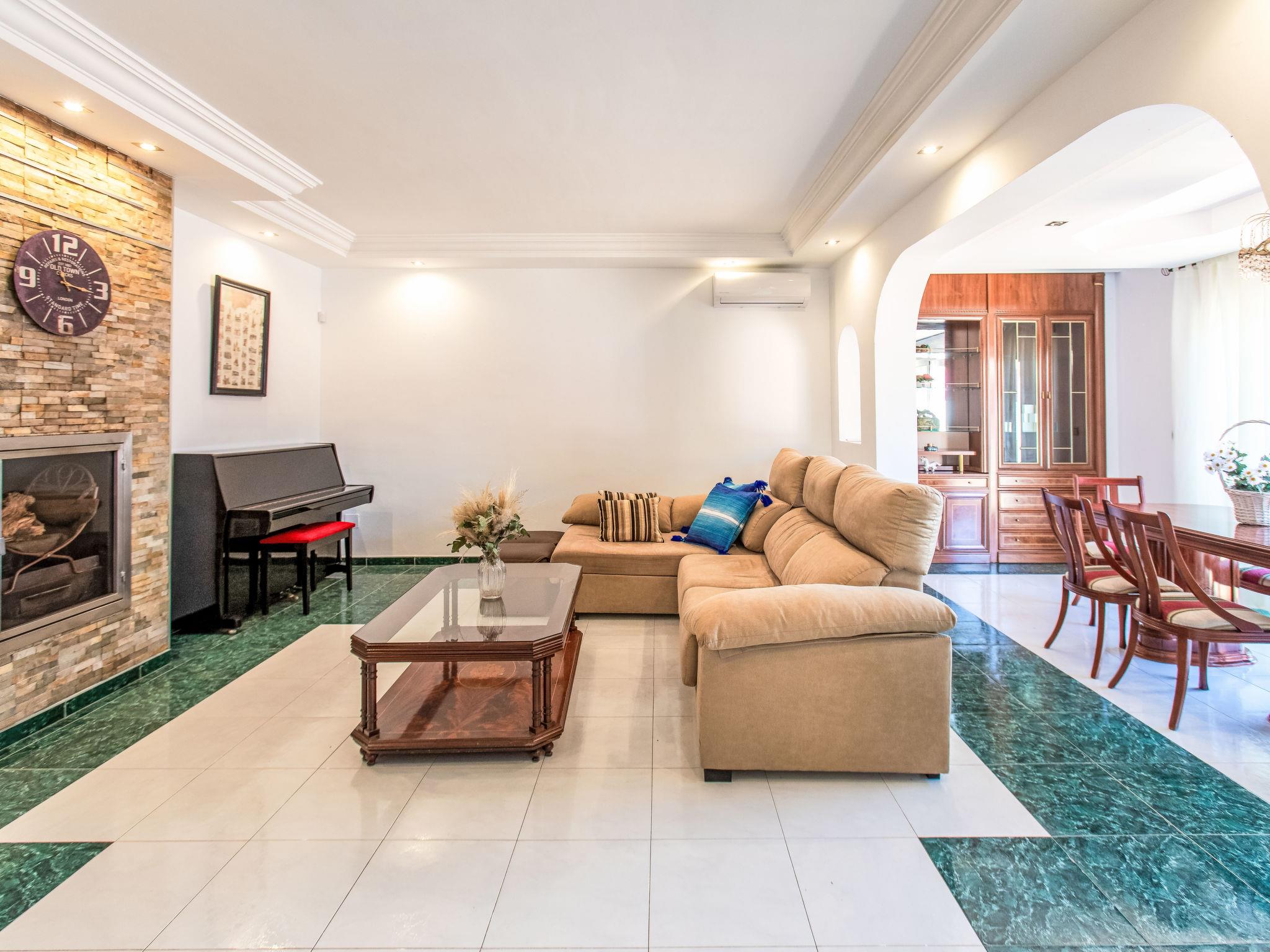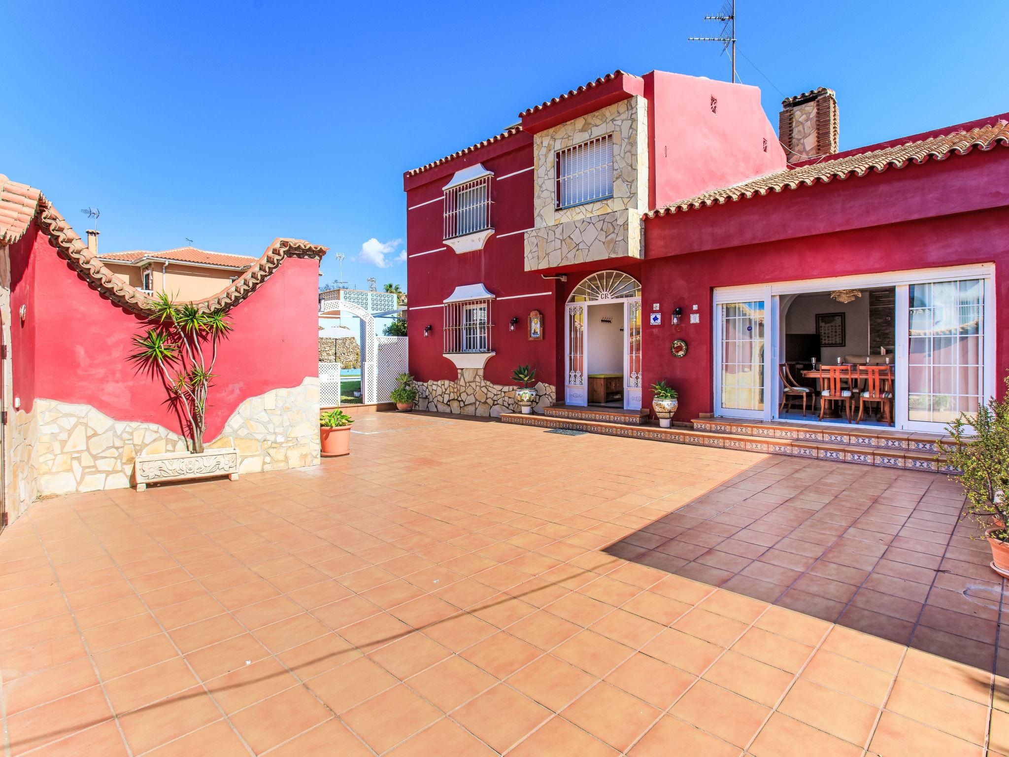 Rincon de la victoria: Large, cosy house "Villa Almudena", 2 storeys. In the resort 400 m from the centre of Rincon de la victoria, in a quiet position, 500 m from the sea, 500 m from the beach, south facing position. Private: beautiful garden to relax, swimming pool angular (7 x 4 m, depth 50 - 200 cm, seasonal availability: 01.Mar. - 01.Dec.). Shower/WC in the pool area. In the house: WiFi, air conditioning, washing machine. Shop, supermarket 600 m, shopping centre 1 km, bar 500 m, bakery 600 m, bus stop "walking distance" 600 m. Golf course (18 hole) 1 km. The owner does not accept any youth groups.