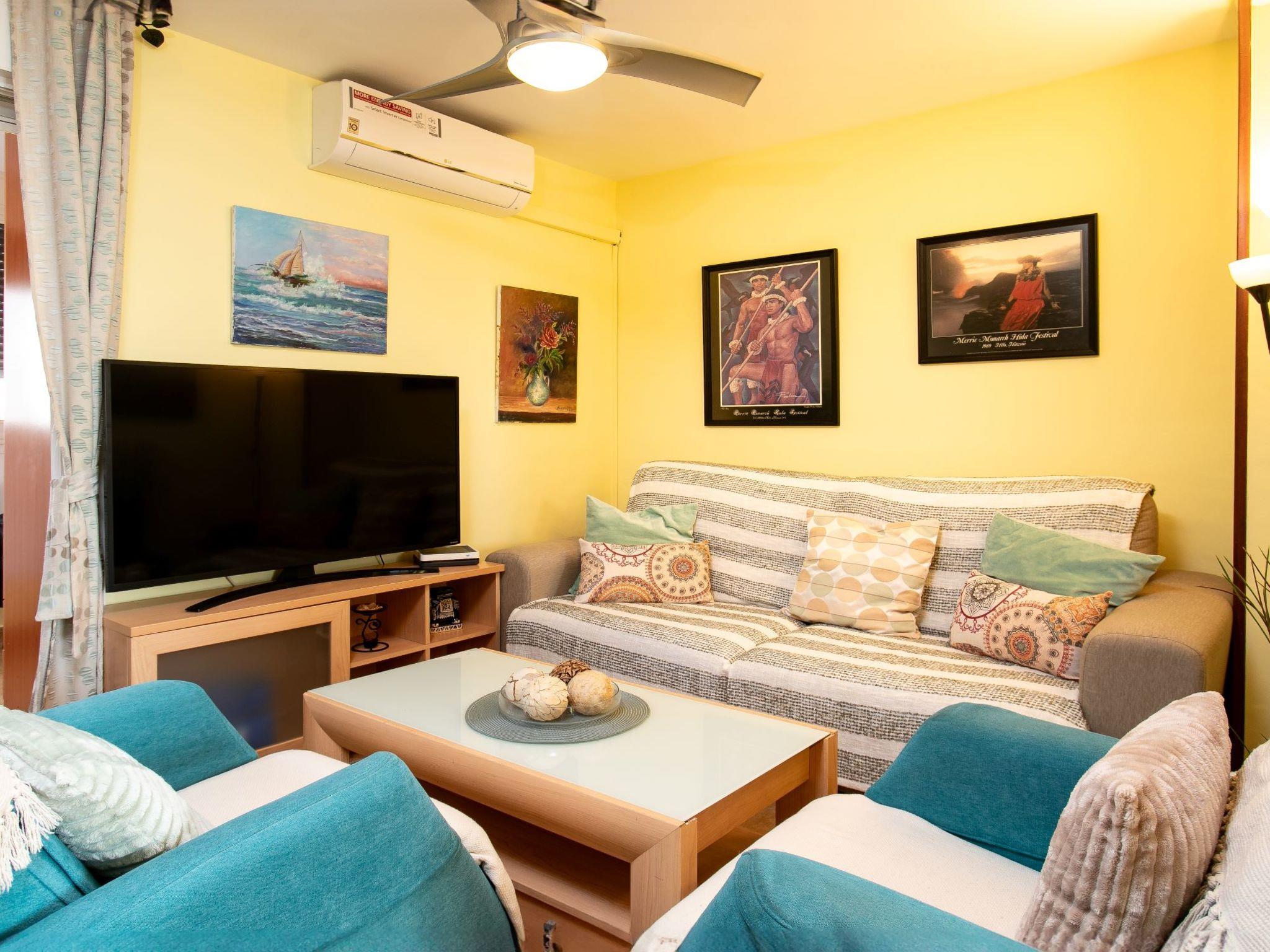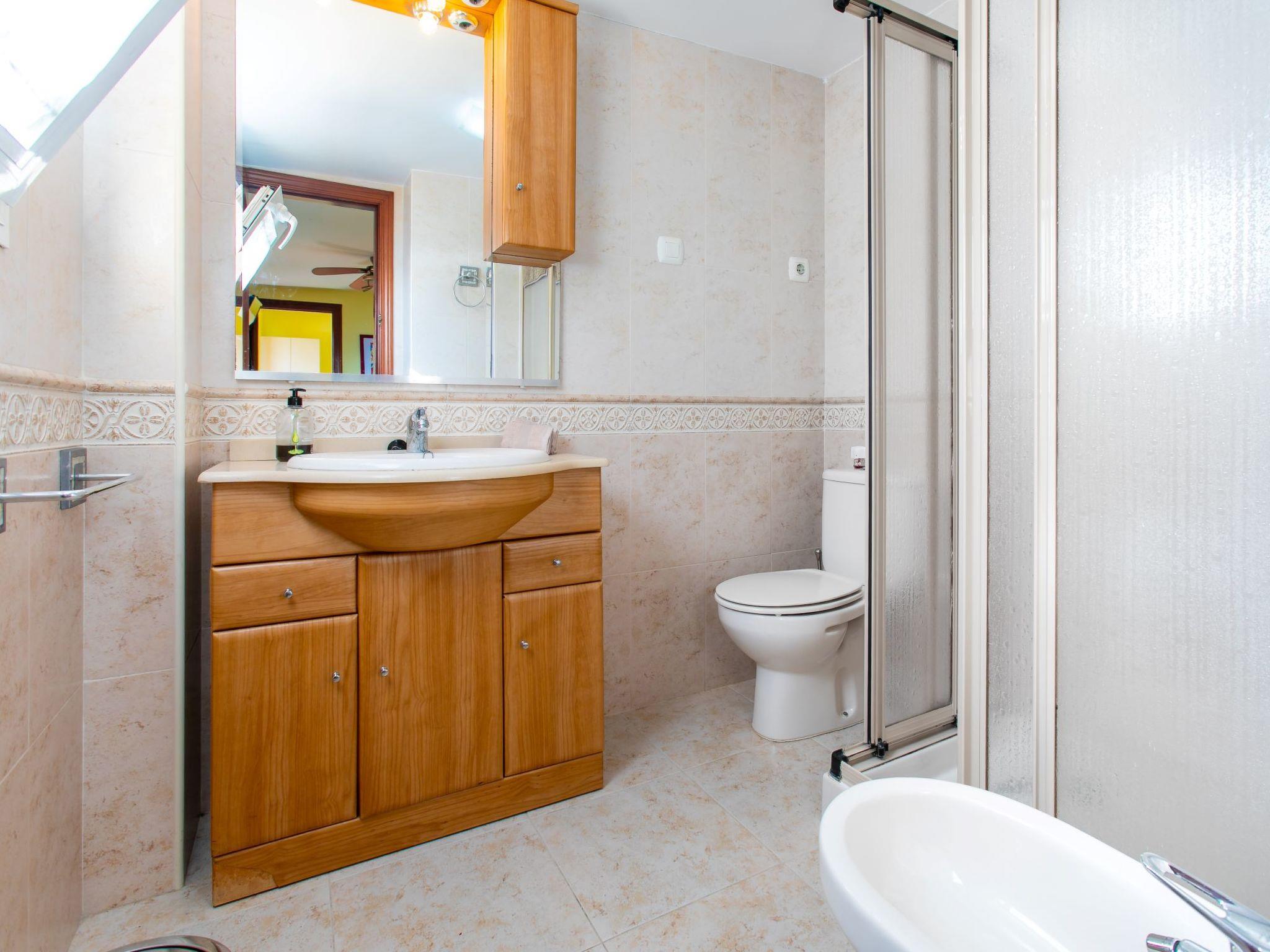 "Acosta beachfront", 3-room penthouse 55 m2, south facing position. Simple and practical furnishings: living room with digital TV, air conditioning and forced-air heating. 1 room with 1 french bed (1 x 135 cm, length 190 cm), shower/WC and air conditioning. Exit to the terrace, south facing position. 1 room with 1 bed (80 cm, length 180 cm), 1 x 2 bunk beds (2 x 90 cm, length 180 cm), air conditioning and forced-air heating. Kitchen (oven, dishwasher, 3 induction hot plates, toaster, kettle, microwave, freezer). Shower/WC. Boiler (80 litres). Terrace furniture. Beautiful view of the sea. Facilities: washing machine, iron, hair dryer. Internet (WiFi, free). Please note: suitable for families. TV only ES. VUT/MA/89616 // Reg. Nr.: ESFCTU0000290250006917940000000000000000VUT/MA/896165