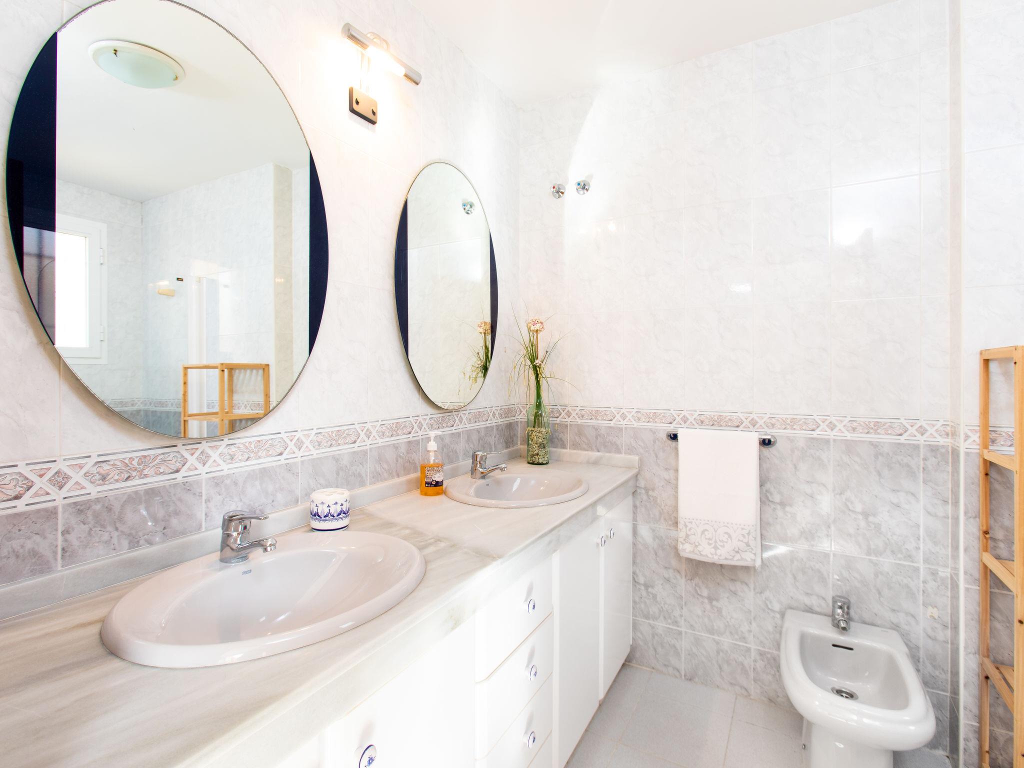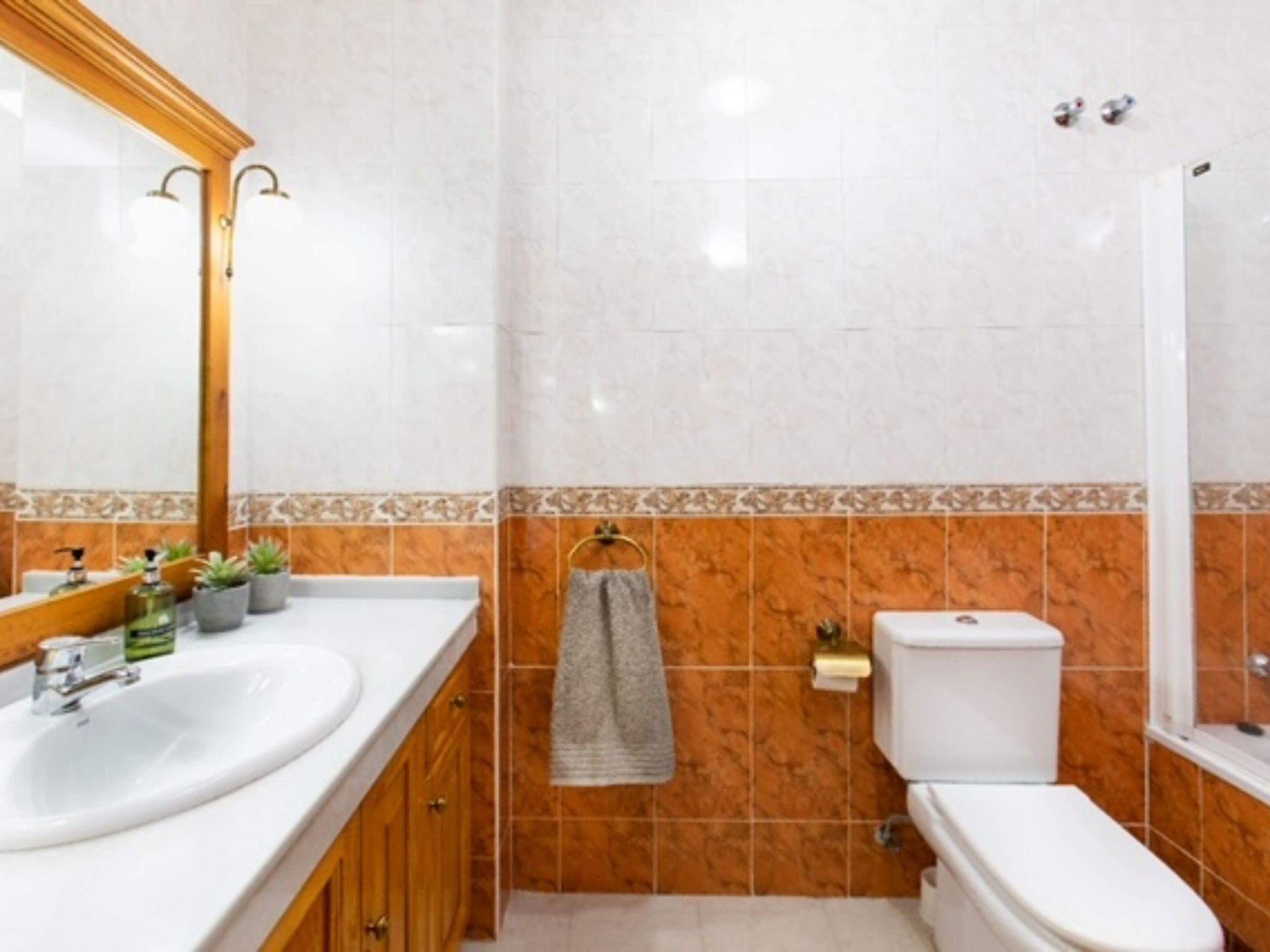 "Villa Corales", 2-room terraced house 325 m2 on 3 levels, east facing position. Simple and practical furnishings: living/dining room with dining table and digital TV. Kitchen (oven, dishwasher, 4 ceramic glass hob hotplates, toaster, microwave, freezer) with dining table. Exit to the terrace. Sep. WC. Upper floor: 1 room with 2 beds (90 cm, length 180 cm), air conditioning and fan. 1 room with 2 beds (90 cm, length 180 cm), air conditioning. 1 room with 1 french bed (1 x 150 cm, length 180 cm), bath/WC, double hand-basin and air conditioning. Exit to the terrace. Bath/WC. Small terrace. Terrace furniture. Facilities: washing machine, iron, hair dryer. Internet (WiFi, free). Parking space n 6 (roofed). Please note: TV only ES. VFT/MA/57720 // Reg. Nr.: ESFCTU0000290250005005080000000000000000VFT/MA/577207