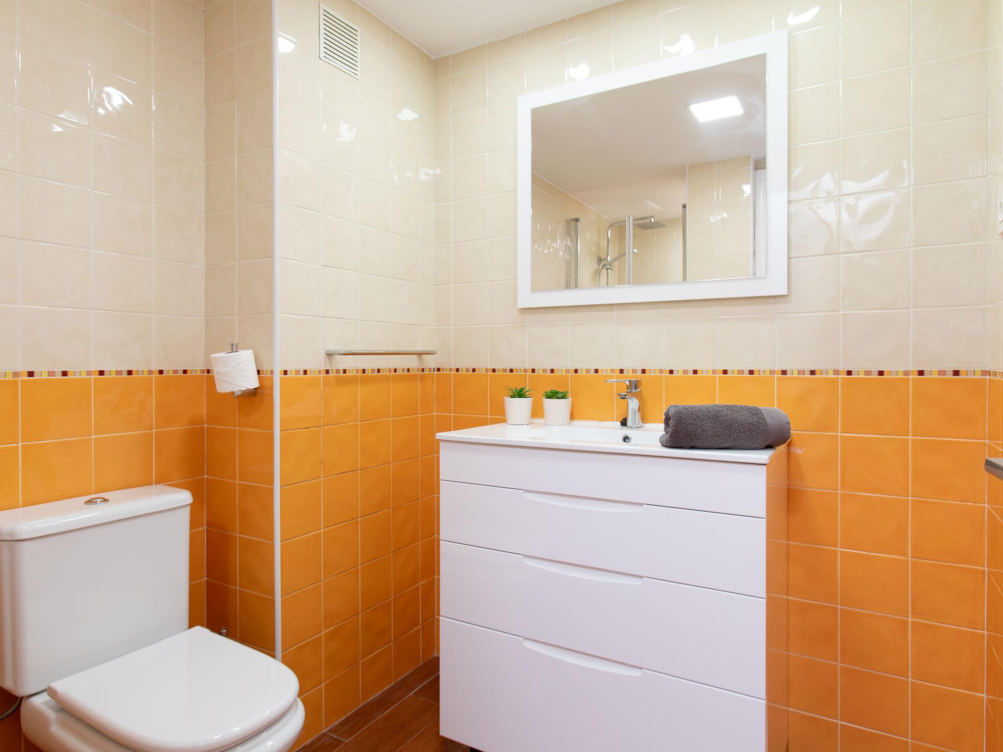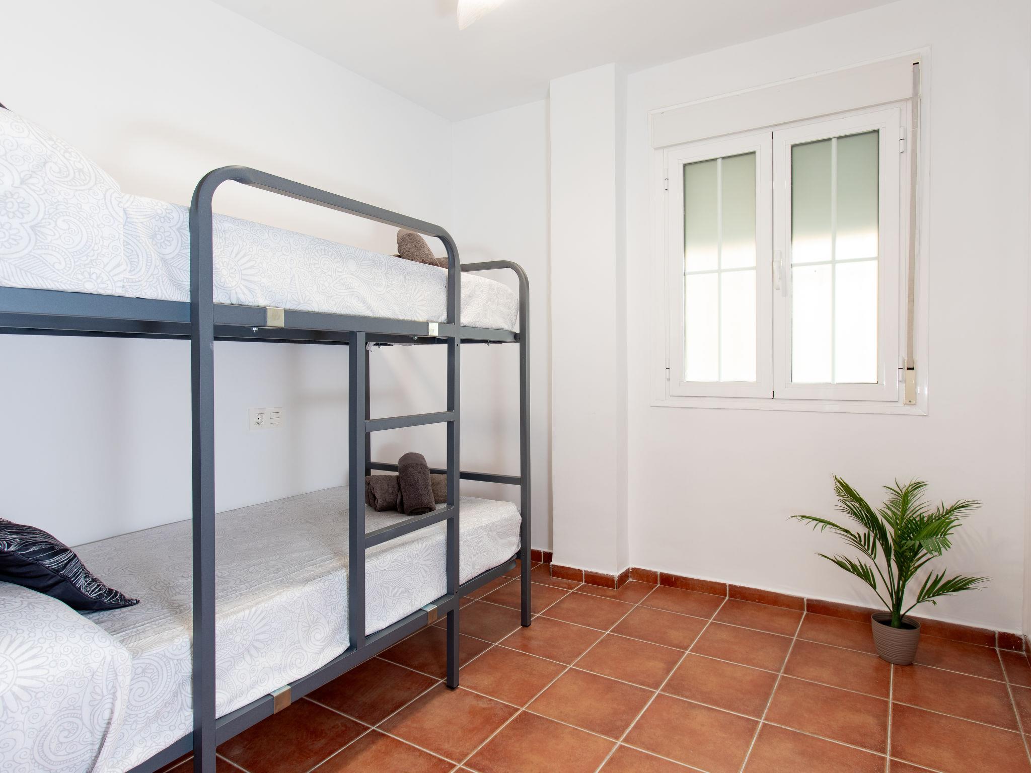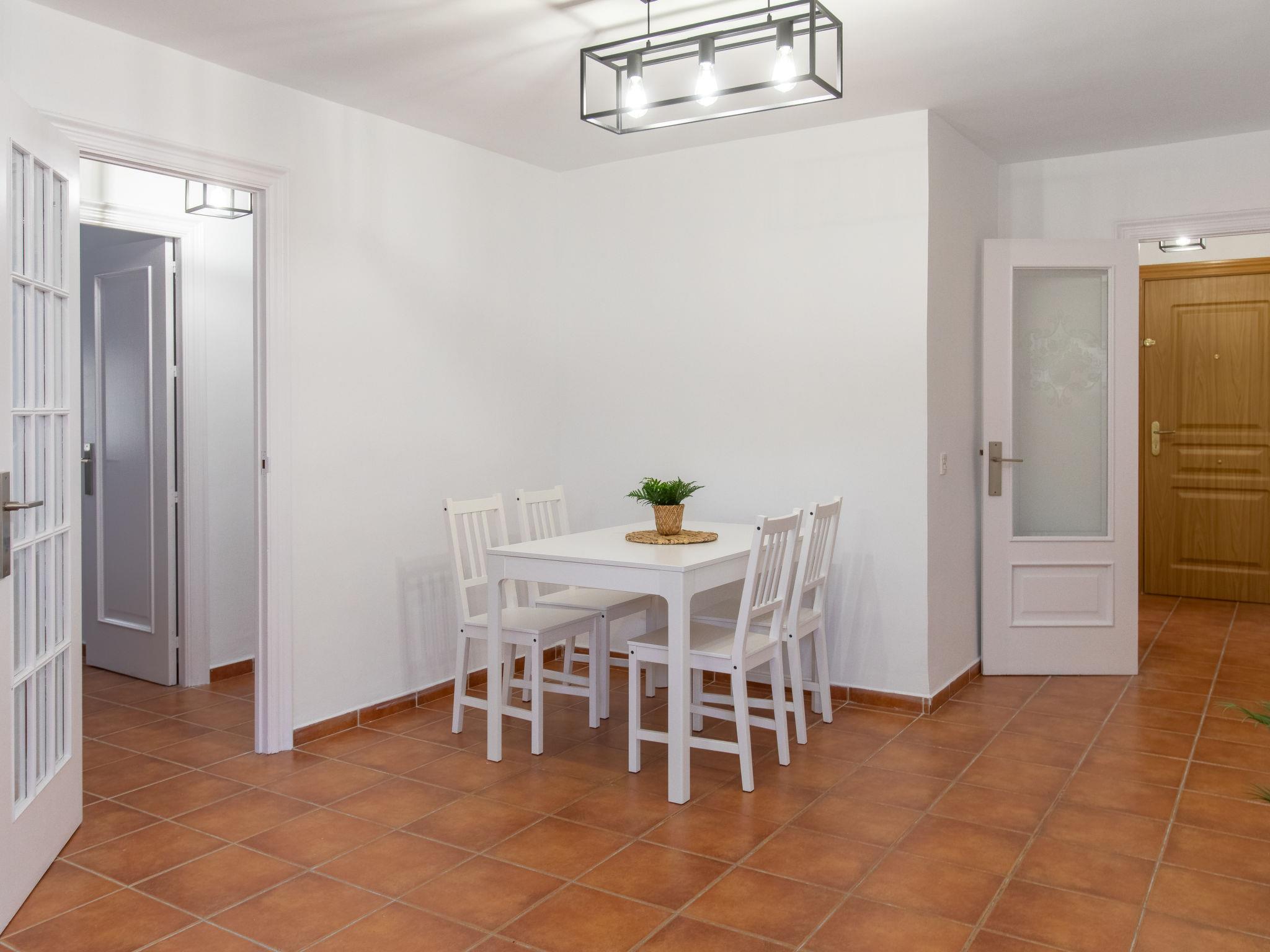 "Noa", 4-room apartment 100 m2. Renovated in 2023, simple and beautiful furnishings: living/dining room with digital TV, air conditioning and forced-air heating. Exit to the terrace. 1 room with 1 french bed (1 x 135 cm, length 190 cm), air conditioning, fan and forced-air heating. 1 room with 1 french bed (1 x 135 cm, length 190 cm), air conditioning, fan and forced-air heating. 1 room with 1 x 2 bunk beds (2 x 90 cm, length 180 cm), air conditioning, fan and forced-air heating. Kitchen (oven, dishwasher, 4 ceramic glass hob hotplates, toaster, microwave, freezer). Shower/WC. Terrace furniture. View of the swimming pool and the garden. Facilities: washing machine, iron, hair dryer. Internet (WiFi, free). Please note: TV only ES. VFT/MA/73542 // Reg. Nr.: ESFCTU0000290250002507930000000000000000VFT/MA/735421