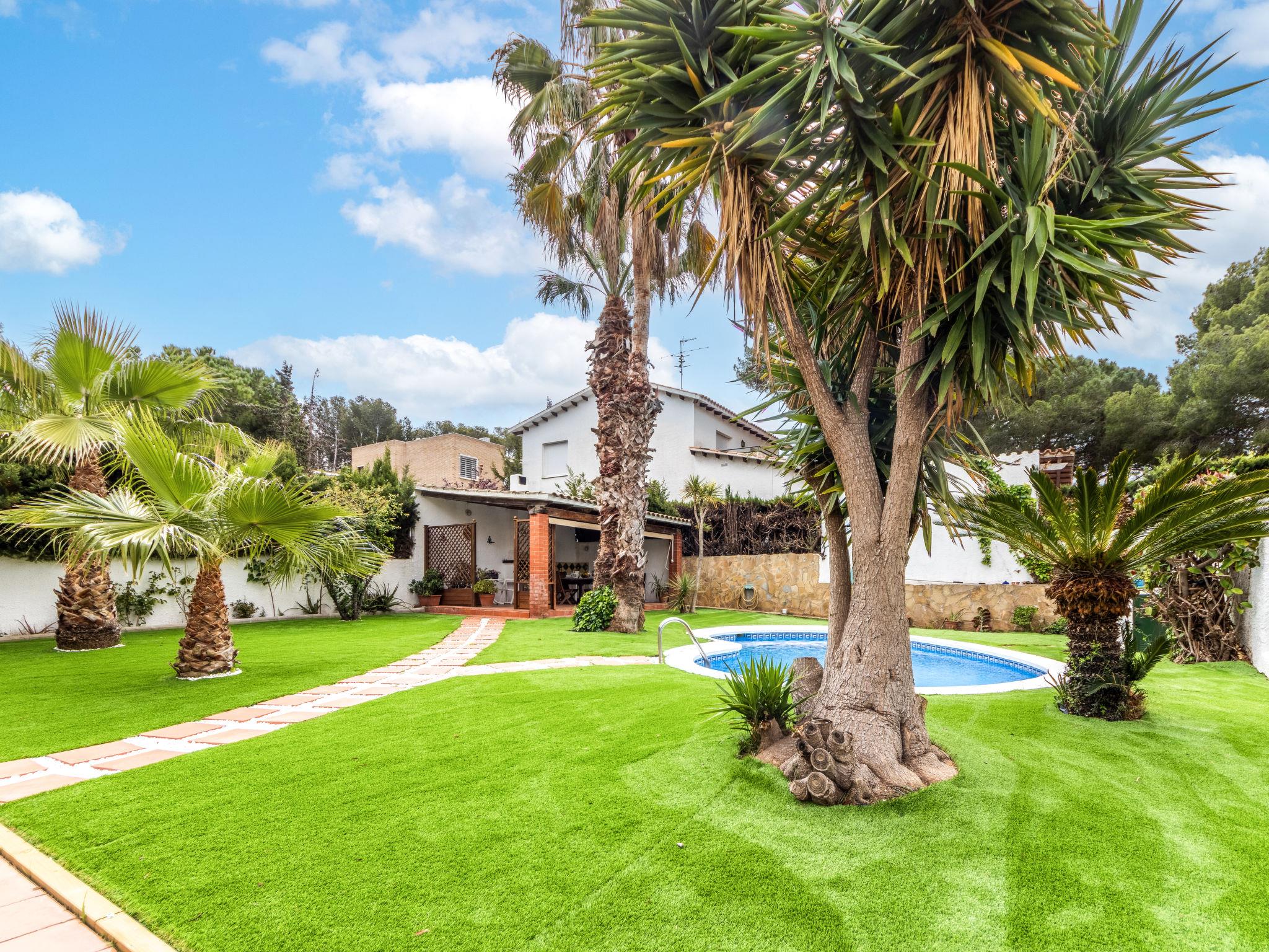 Comfortable single-family house "Santiago". In the district of Barrà 600 m from the centre of Roda de Barrà, 10 km from the centre of Torredembarra/Calafell, 25 km from the centre of Tarragona, on top of a hill, in the residential district, 800 m from the sea. Private: property 600 m2 (fenced), well-kept garden with lawn and trees, swimming pool kidney shaped (30 m2, seasonal availability: 01.Apr. - 30.Sep.). Pool house, terrace (25 m2), garden furniture, barbecue, pool maintenance by the owner/gardener. Public parking on the road. Supermarket 1 km, restaurant 100 m, bus stop "Sant Vicenc de Calders" 6 km, railway station "Sant vicenc de Calders" 6 km, sandy beach "Playa Llarga" 800 m. The owner does not accept any youth groups. Neighbourhood highly sensitive to noise. Quietness and good behaviour expected.