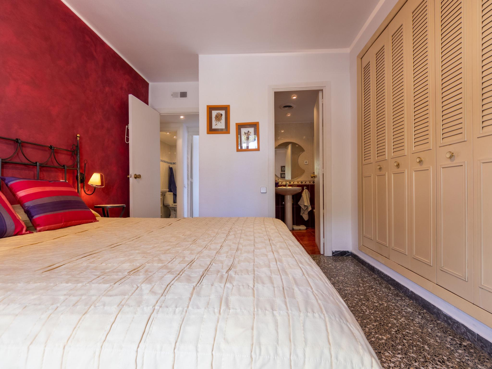"Esmeralda", 4-room apartment 60 m2, on the upper ground floor. Object suitable for 4 adults + 1 child. Practical and comfortable furnishings: living/dining room with digital TV, air conditioning and fan. Exit to the balcony. 1 room with 1 french bed (1 x 150 cm, length 190 cm), bath/WC. 1 room with 1 french bed (1 x 150 cm, length 190 cm). 1 room with 1 bed (90 cm, length 190 cm). Kitchen (4 hot plates, oven, toaster, kettle, microwave, electric coffee machine, Capsules for coffee machine (Dolce Gusto) extra). Shower/WC. No heating option. Balcony. Balcony furniture. Facilities: washing machine, iron, hair dryer. Internet (WiFi, free). Parking (roofed). Please note: TV only ES. HUTT-007220 // Reg. Nr.: ESFCTU00004302800004517800000000000000000HUTT-0072201