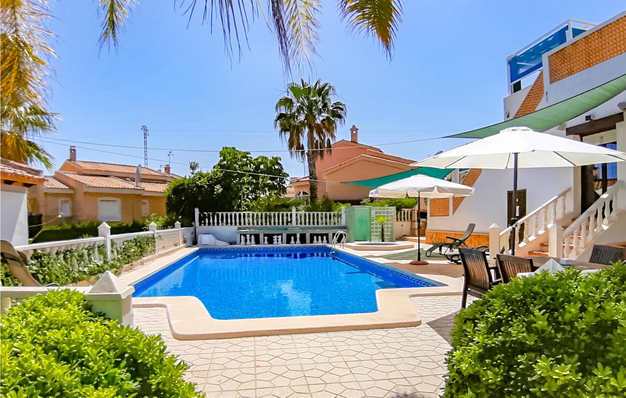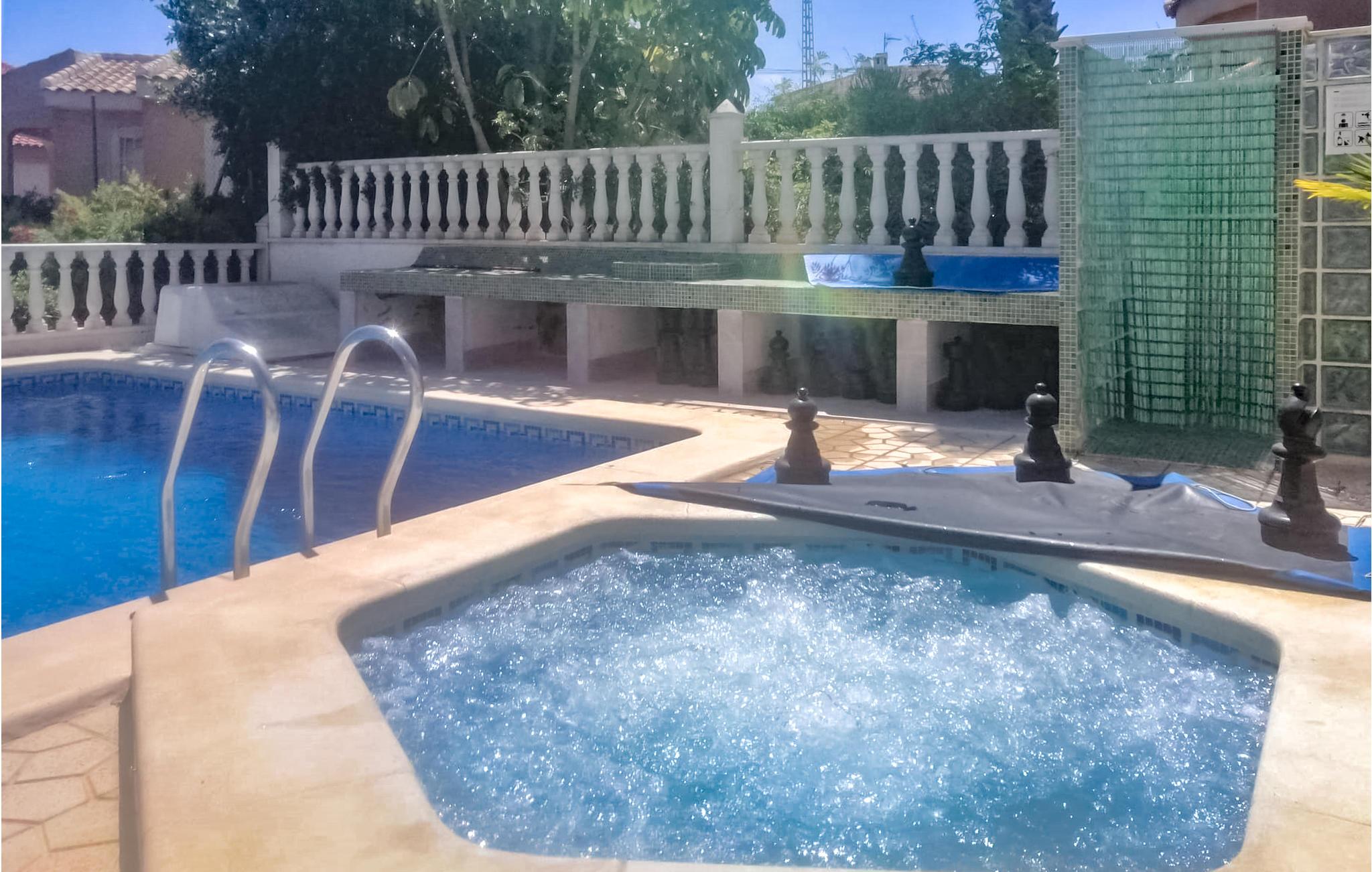 Dieses einladende Ferienhaus in Rojales ist perfekt für einen unvergesslichen Urlaub mit der Familie. Der große Pool lädt Sie zu entspannten Tagen im Wasser ein, während die rund ums Haus verteilten Terrassen Ihnen je nach Wunsch sonnige oder schattige Plätze bieten. Freuen Sie sich auf Grillabende unter freiem Himmel oder gemütliche Stunden in der gut ausgestatteten Unterkunft mit zwei separaten Wohn- und Schlafbereichen – ideal für Familien oder befreundete Paare. Gegen Aufpreis stehen Ihnen eine Sauna und ein Whirlpool zur Verfügung, die pure Erholung versprechen.