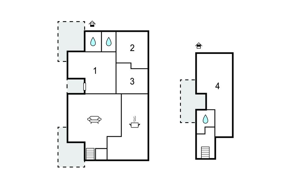 Badezimmer 5m2 (nr. 1) - WC. Warmes und kaltes Wasser. Dusche
