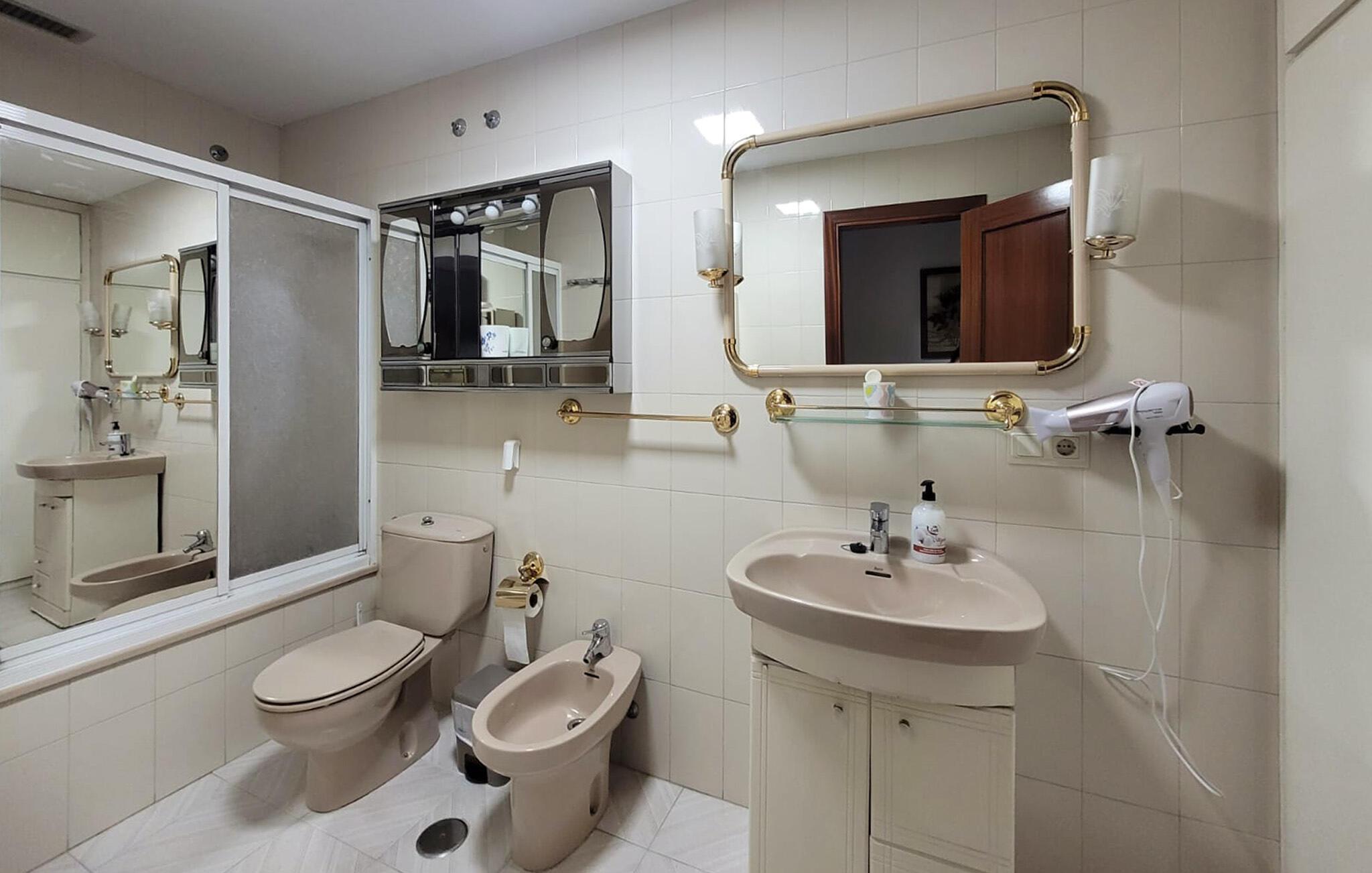 Badezimmer (nr. 1) - WC. Warmes und kaltes Wasser. Handdusche und Badewanne