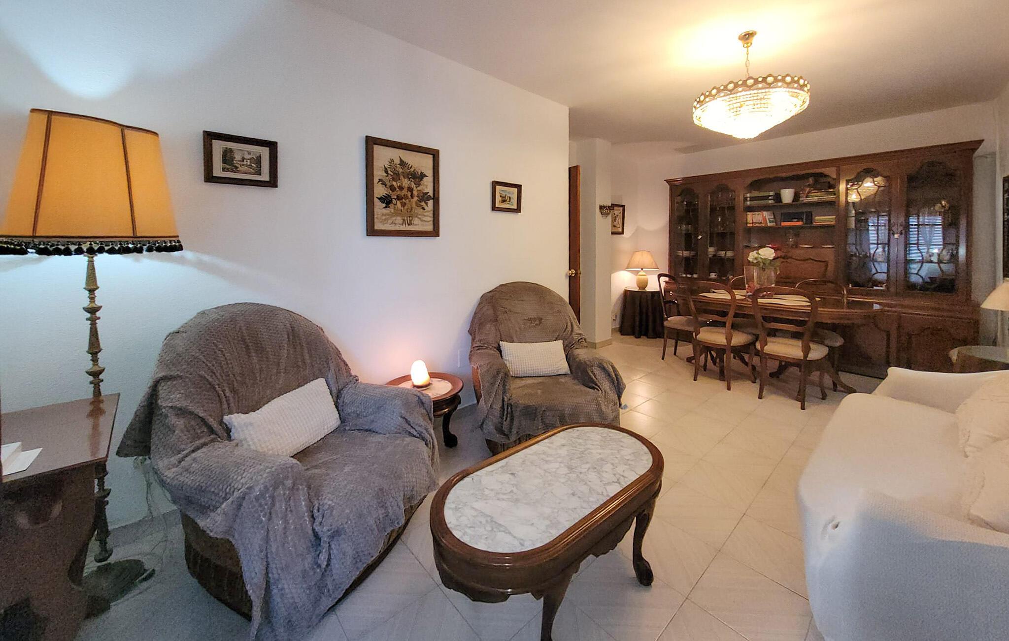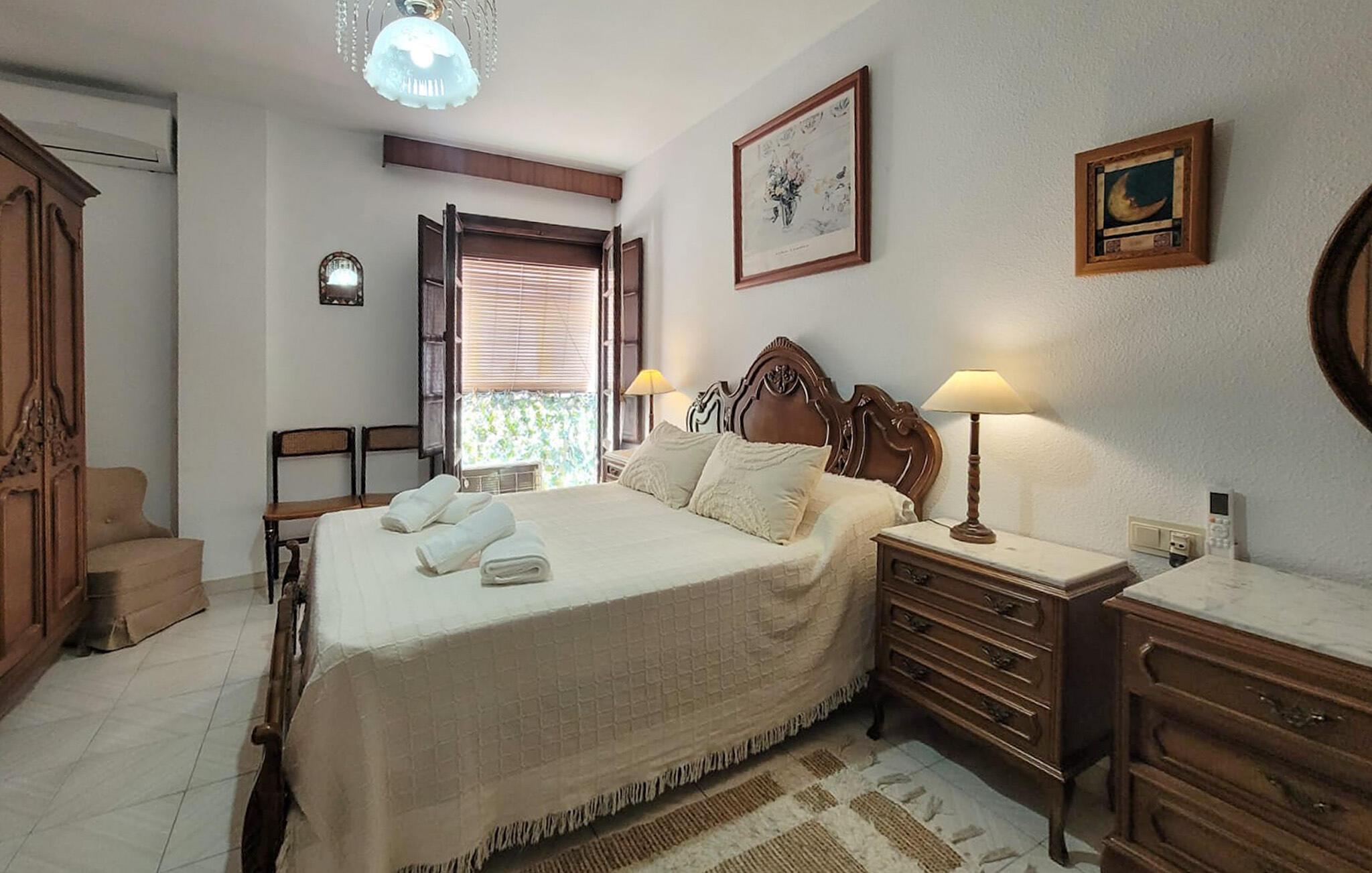 Erleben Sie authentisches andalusisches Stadtleben in einer Wohnung, die durch ihren nostalgischen Stil überzeugt. Treten Sie ein in einen klassischen Wohnraum mit gemütlichen Polstermöbeln und antikem Mobiliar. Nehmen Sie Platz am Esstisch für gemeinsame Mahlzeiten oder entspannte Runden am Abend. Die traditionellen Holzelemente und die Kronleuchter verleihen den verschiedenen Räumen ein besonderes Flair. Kochen Sie in der separaten Küche mit viel Stauraum, ideal für einen längeren Aufenthalt.