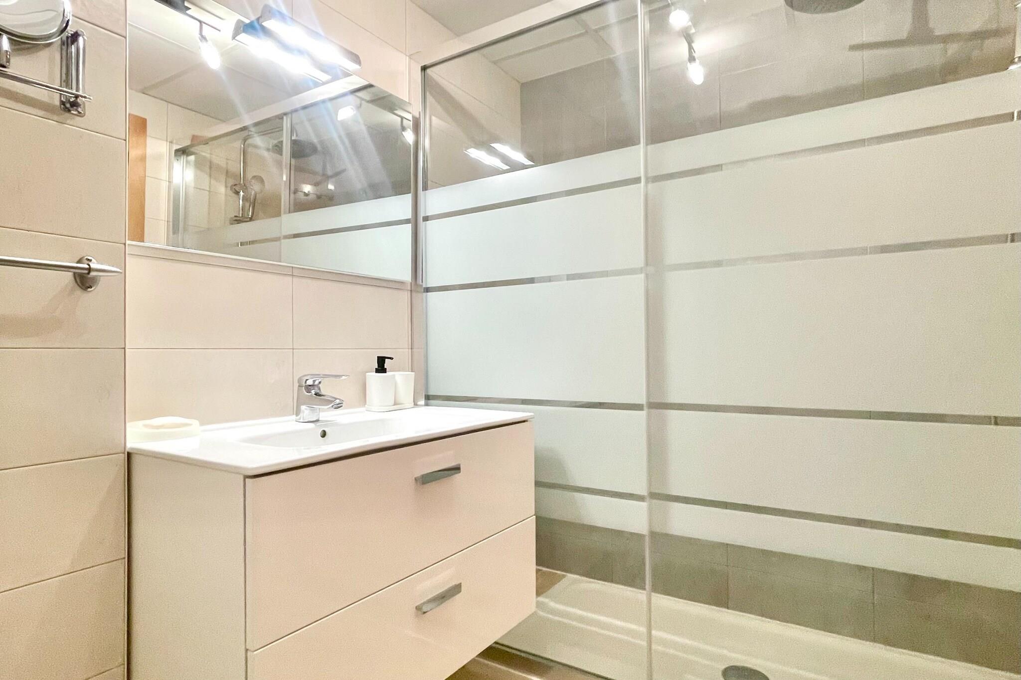 Ground floor: (Entrance(shared with other guests, reachable from the outside), lift) On the 2nd floor: (Entrance, Kitchen(hob, toaster, hood, coffee machine, oven, microwave, dishwasher, fridge-freezer, Juicer), Living/diningroom(single sofa bed, TV(flatscreen, international television channels), dining table, seating area), bedroom(double bed), bedroom(double bed), bathroom(shower, washbasin, toilet, hairdryer), washing room(washing machine, ironing board, iron), heating, air conditioning) fitness room(fitness equipment(shared with other guests)), sauna(shared with other guests), garden(shared with other guests), BBQ(shared with other guests), parking lot(public), swimming pool(shared with other guests, outside, opened from May upto and including Sep), swimming pool(shared with other guests, indoor, opened from Jan upto and including Dec), tennis court(shared with other guests), padel court