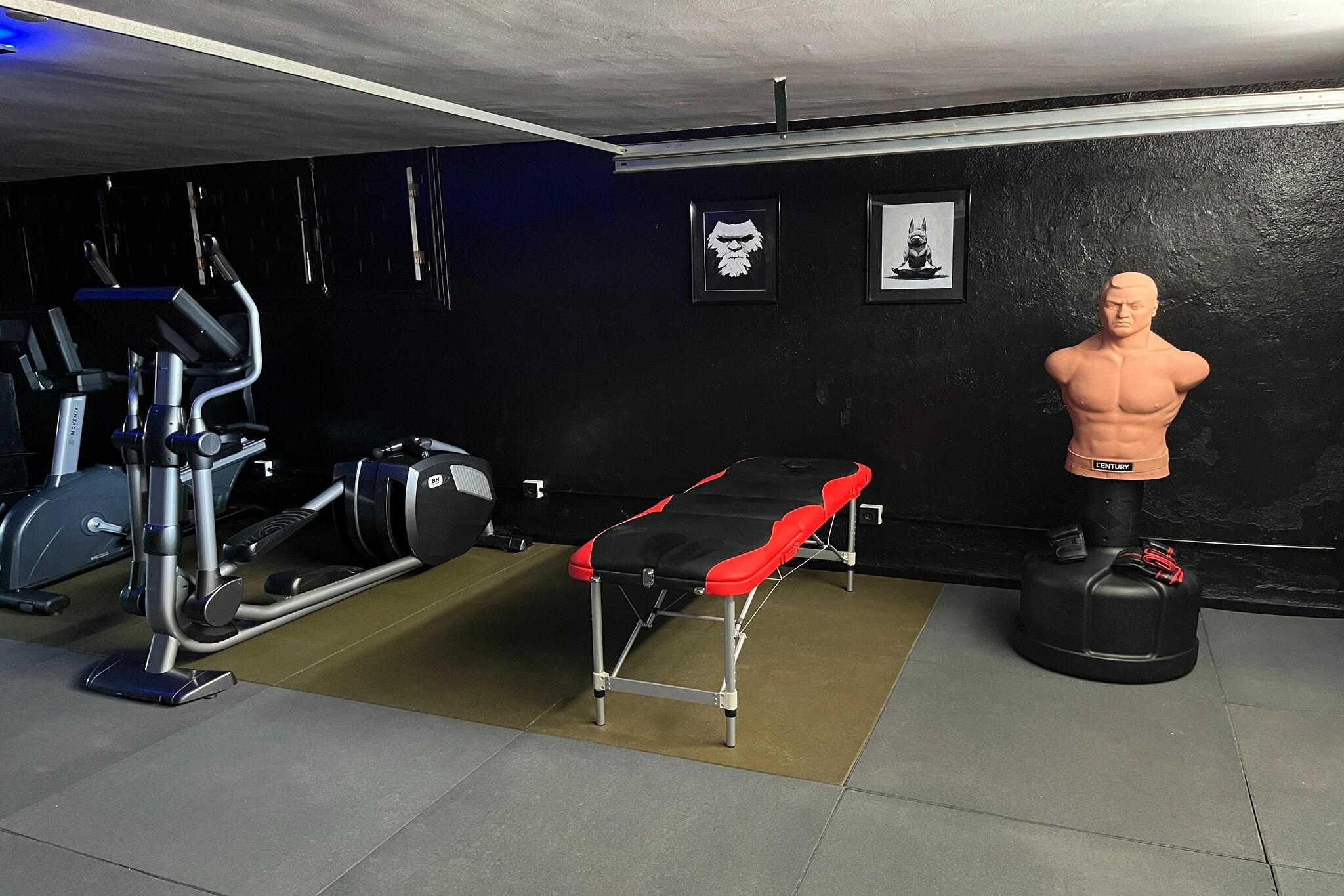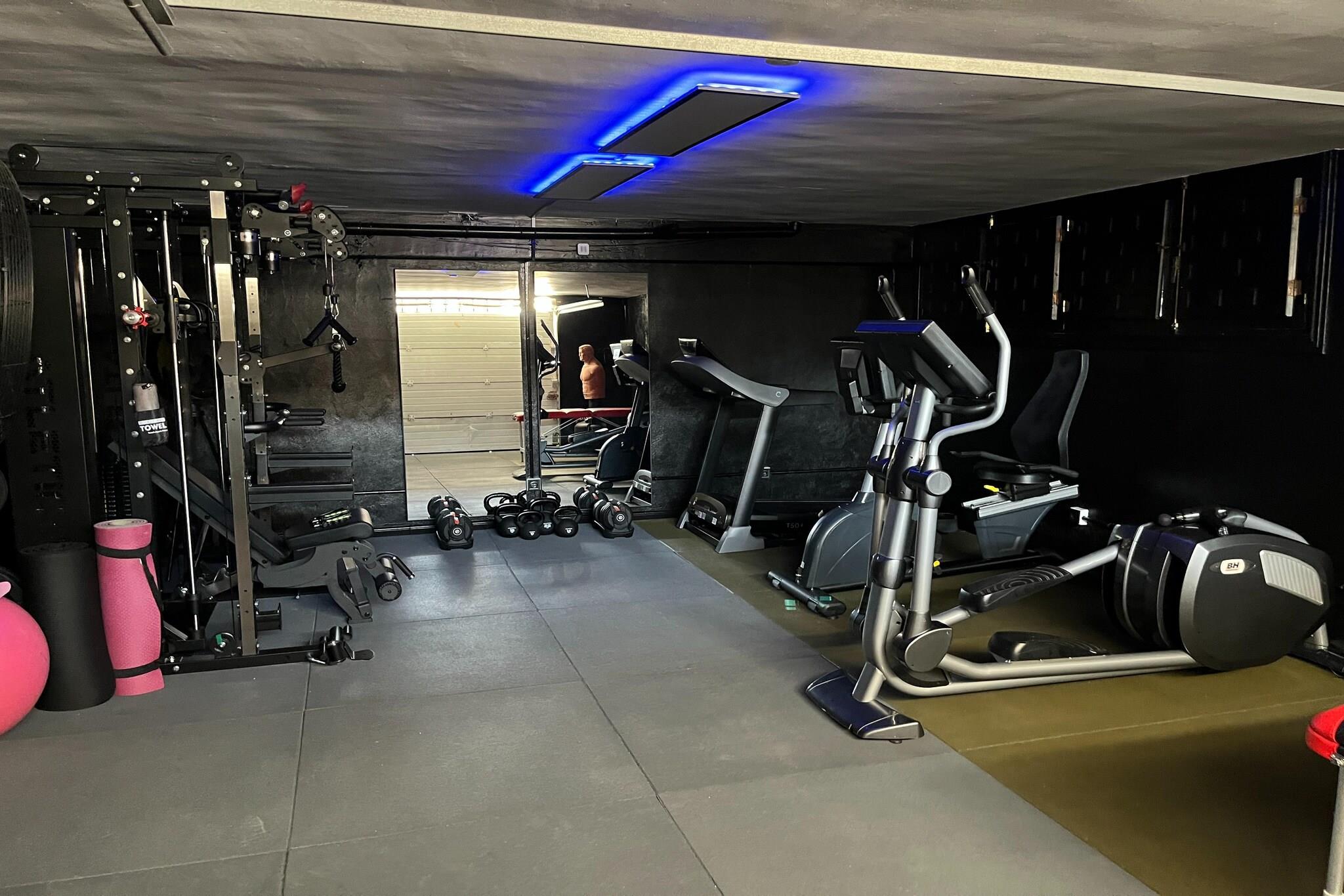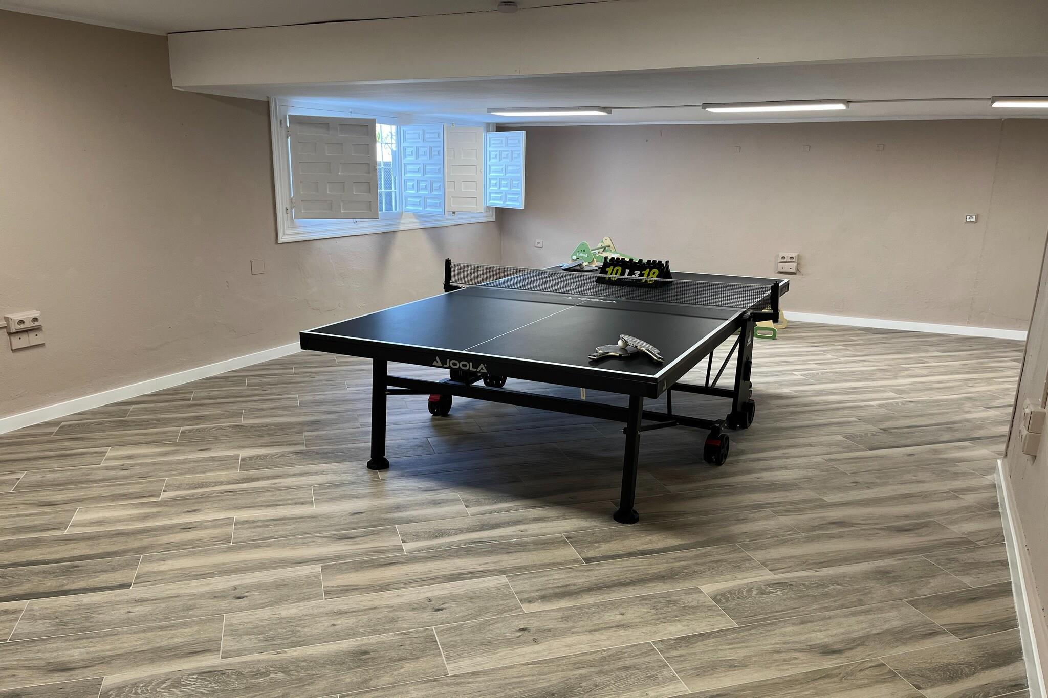 Ground floor: (Entrance(shared with other guests), Kitchen(hob, electric kettle, toaster, hood, coffee machine, oven, microwave, fridge-freezer), bedroom(single bed, single bed), Bedroom with bathroom(double bed, shower, washbasin, toilet), Bedroom with bathroom(double bed, bathtub with shower, washbasin, toilet), bathroom(shower, washbasin, toilet, hairdryer), fitness room(fitness equipment), heating, air conditioning, terrace) On the 1st floor: (bedroom(double bed), recreation room(play equipment), air conditioning, roof terrace, heating) washing room(tumble dryer, washing machine, ironing board, iron), garage(reachable from the outside), garden doors, parking lot(public), swimming pool(shared with other guests, outside, including part for children (depth 50cm), opened from Jan upto and including Dec)