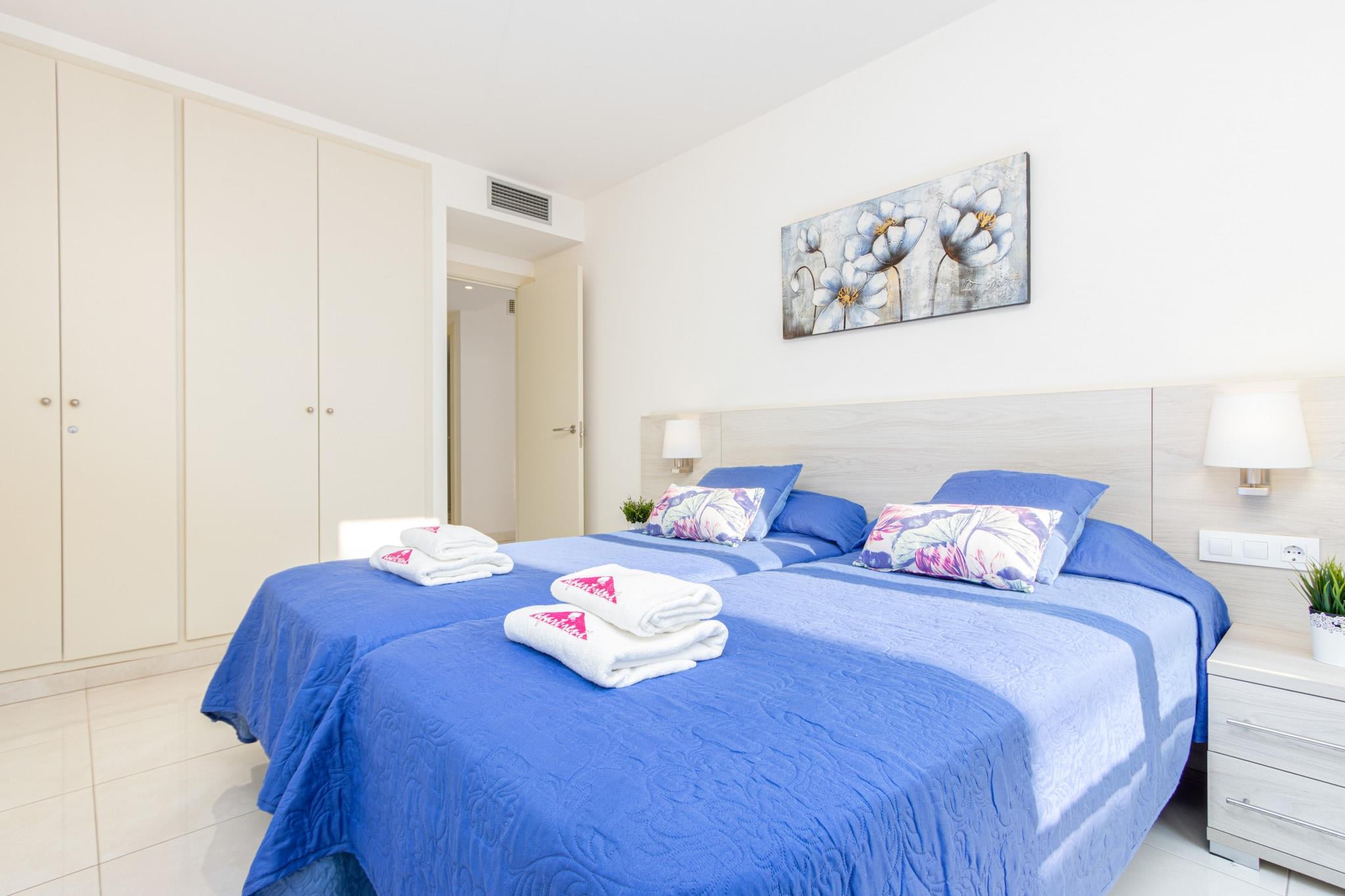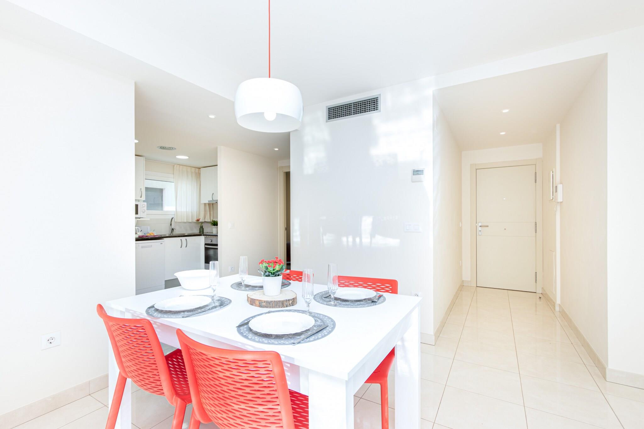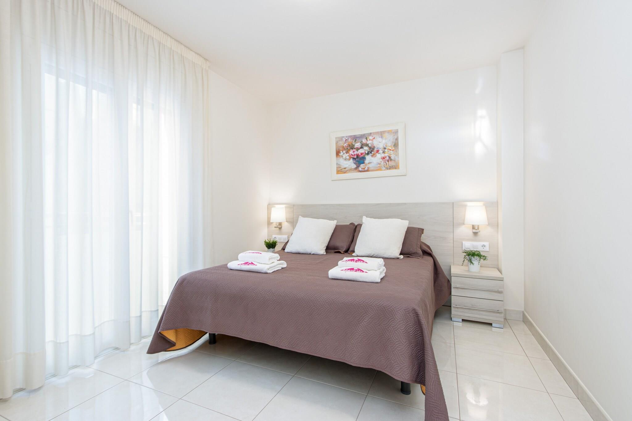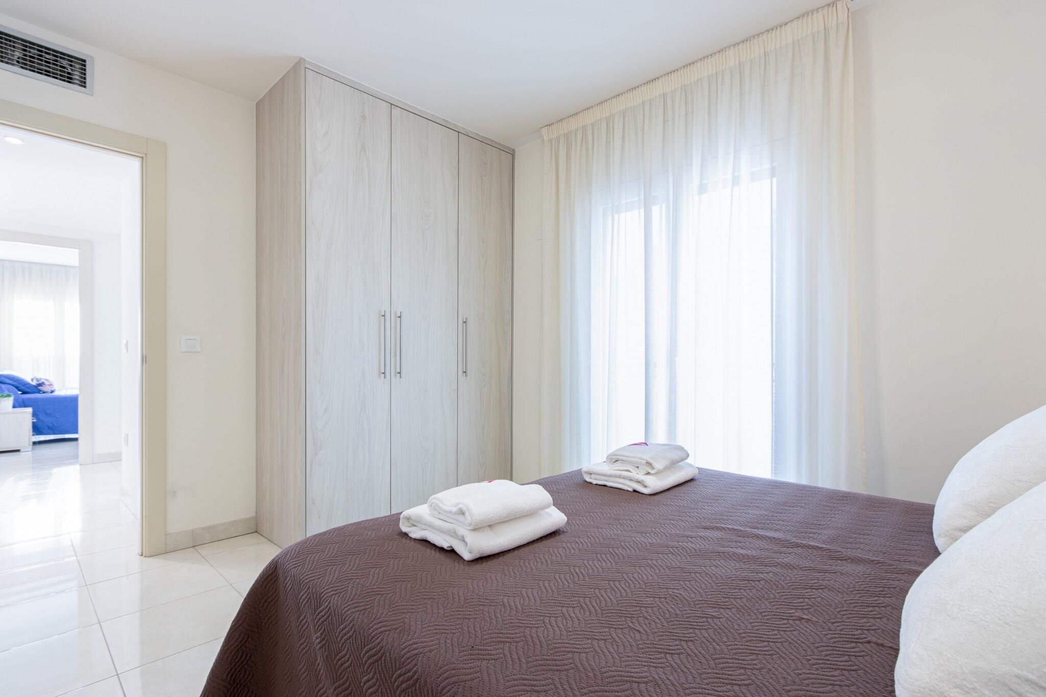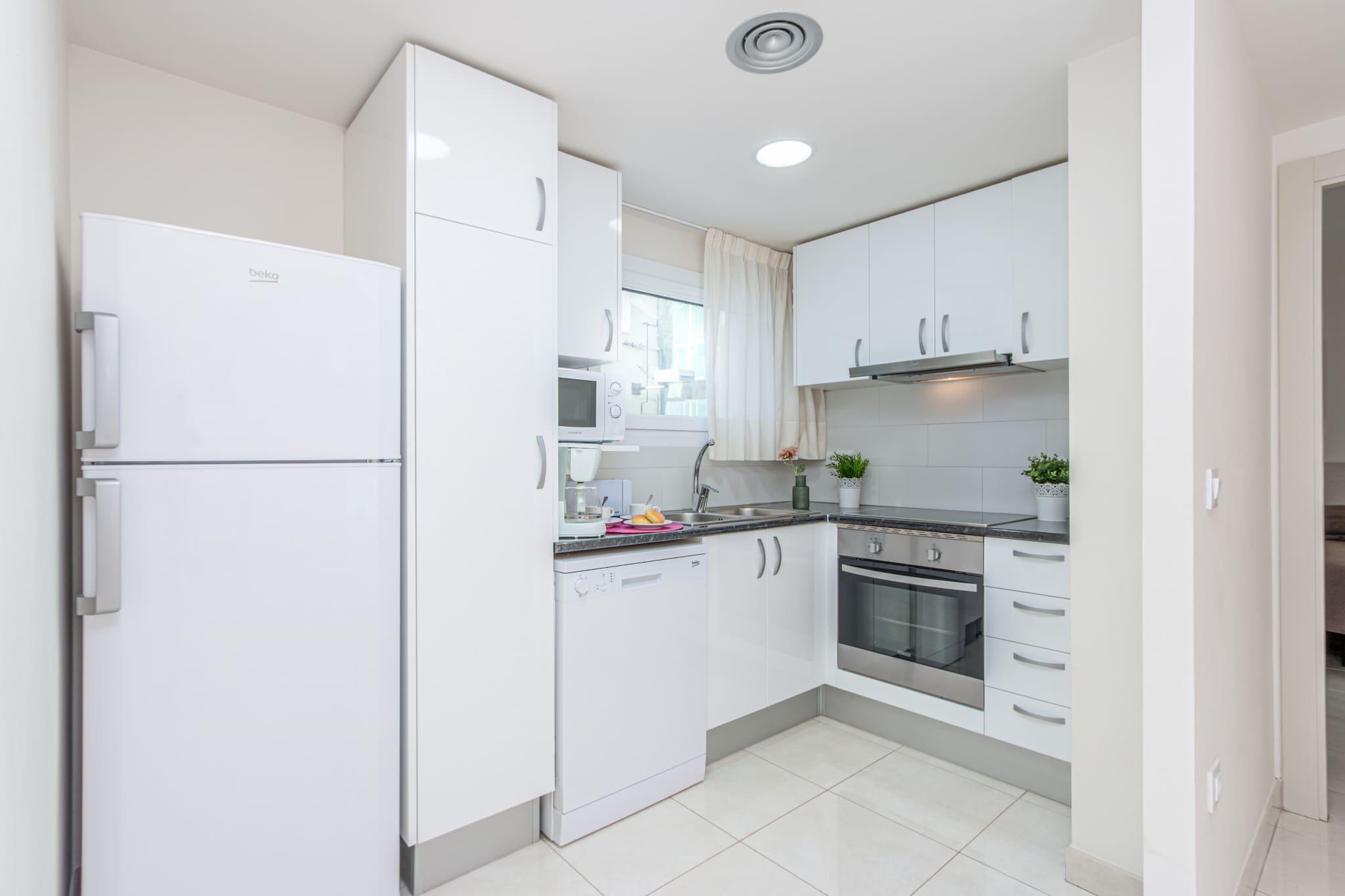 This modern apartment in the heart of Roses is perfect for families or small groups, comfortably accommodating up to 5 guests across two well-appointed bedrooms and an additional sleeping space. With a spacious 70 m² layout, the apartment features contemporary furnishings, a private balcony, and full air conditioning throughout, offering a pleasant retreat just 150 meters from the sandy beach of "de la Punta." A covered parking space in a nearby building is included for added convenience. Ideally situated in a lively yet family-friendly area, guests can enjoy easy access to supermarkets, shops, and local restaurants. Popular attractions such as Aquabrava water park are just a short drive away, while golfers will appreciate the proximity to Peralada Golf Club. The AVE/TGV station in Figueres is 30 km away, offering seamless connections to major cities, and Girona Airport is within 70 km, making travel stress-free. Inside, the apartment offers all the essentials for a comfortable stay: a fully equipped open-plan kitchen with ceramic hob, refrigerator, oven, dishwasher, microwave, and more. Enjoy satellite TV with multilingual channels, fast Wi-Fi, a washing machine, and central heating for year-round comfort. Please note: tourist tax and optional extras are not included in the booking price.