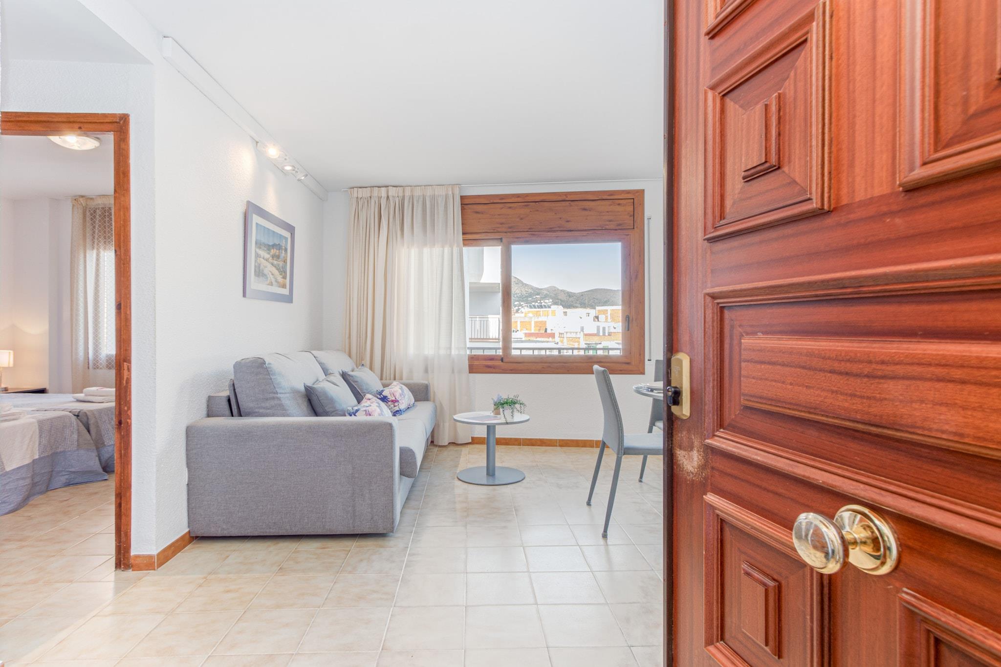 Just 50 meters from the sandy shores of Nova Beach, this cozy 1-bedroom apartment in Roses offers a comfortable seaside escape for up to 4 guests. Located on the third floor with mountain views, the 40 m² space is thoughtfully furnished and ideal for couples or small families. The bedroom includes two single beds, and the living area features a double sofa bed. Guests can enjoy modern comforts like Wi-Fi, air conditioning (in the living room), heating, and a private balcony for relaxing outdoors. Perfectly situated in a family-friendly area, the apartment is within walking distance of supermarkets, restaurants, and shops. Aquabrava Water Park is just 3 km away, while golf lovers will find the renowned Peralada Golf Course only 26 km from the property. Nearby transport links include Figueres AVE/TGV train station (30 km) and Girona Airport (70 km), making it easy to explore the surrounding region. The open-plan kitchen comes fully equipped with a ceramic hob, refrigerator, microwave, dishwasher, washing machine, coffee maker, toaster, and all necessary utensils. Additional amenities include satellite TV in multiple languages, an elevator, an iron, and covered parking in a nearby building (140 m away). Please note that tourist tax and optional extras are not included in the rental price.