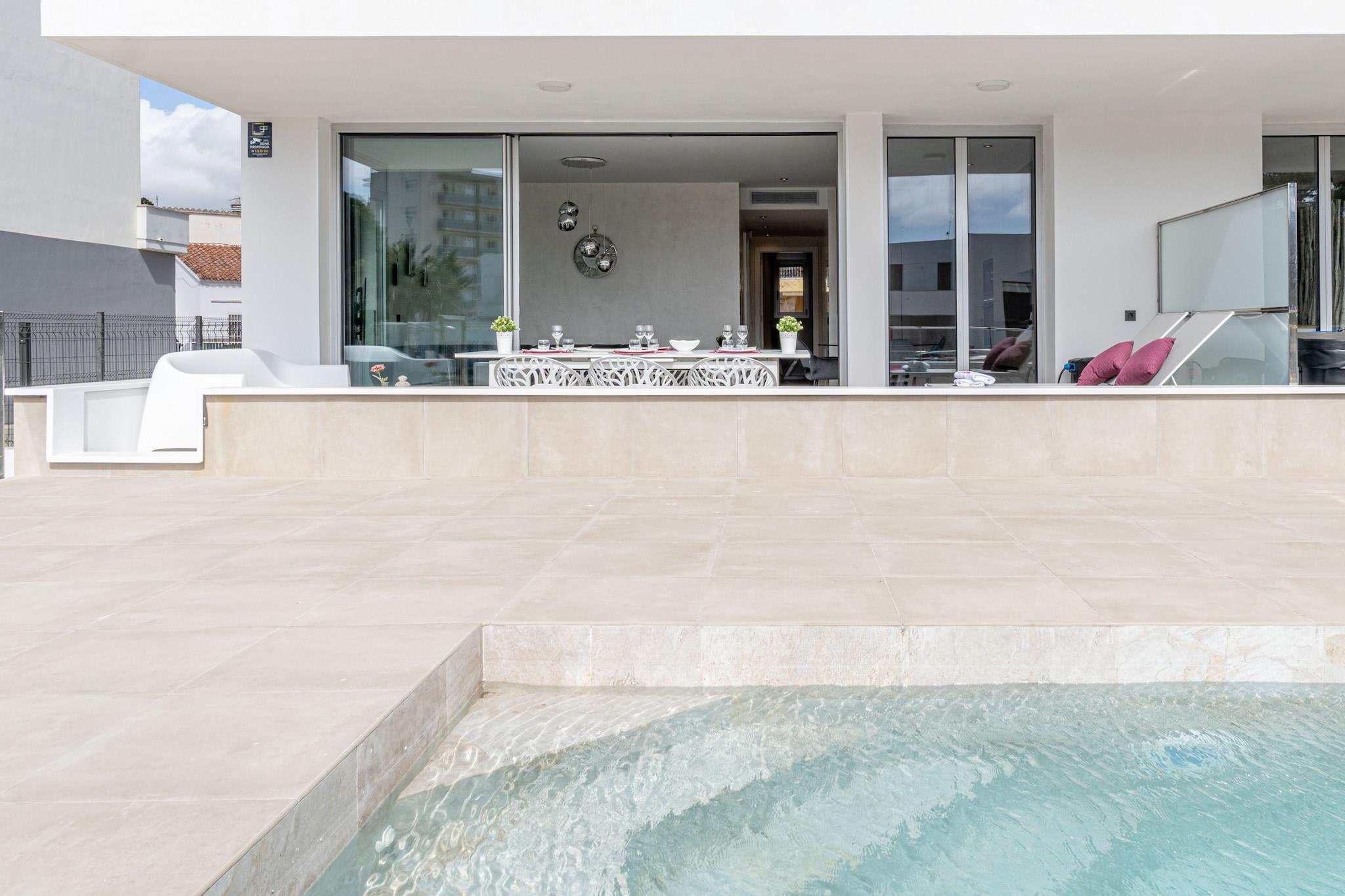 Treat yourself to a high-end coastal escape in this elegant 3-bedroom apartment located just 850 meters from the beach in Roses. With 107 m² of stylish living space, this ground-floor apartment comfortably accommodates up to 6 guests and is perfect for families or groups seeking a modern and relaxing stay. Set in a quiet residential area close to shops, restaurants, and the AVE/TGV Figueres train station, it offers both convenience and tranquility. The apartment features three double bedrooms, two sleek bathrooms with showers, and a spacious open-plan kitchen equipped with a ceramic hob, oven, microwave, dishwasher, and coffee maker. The bright living area opens onto a private terrace with garden furniture, perfect for enjoying meals or lounging outdoors. Guests can also enjoy access to a beautiful communal pool, and amenities such as air conditioning throughout, central heating, Wi-Fi, and a washing machine ensure a comfortable and carefree stay. Covered parking is available in the same building, and the property is accessible via elevator. Whether you're planning a beach holiday, a golf weekend, or a cultural visit to nearby Figueres and Girona, this apartment offers a luxurious and well-connected base. Optional services such as bed linen, towels, and final cleaning are available, and a refundable security deposit is required. The agency is available to assist with flexible check-in arrangements and personalized support to make your stay seamless and memorable.