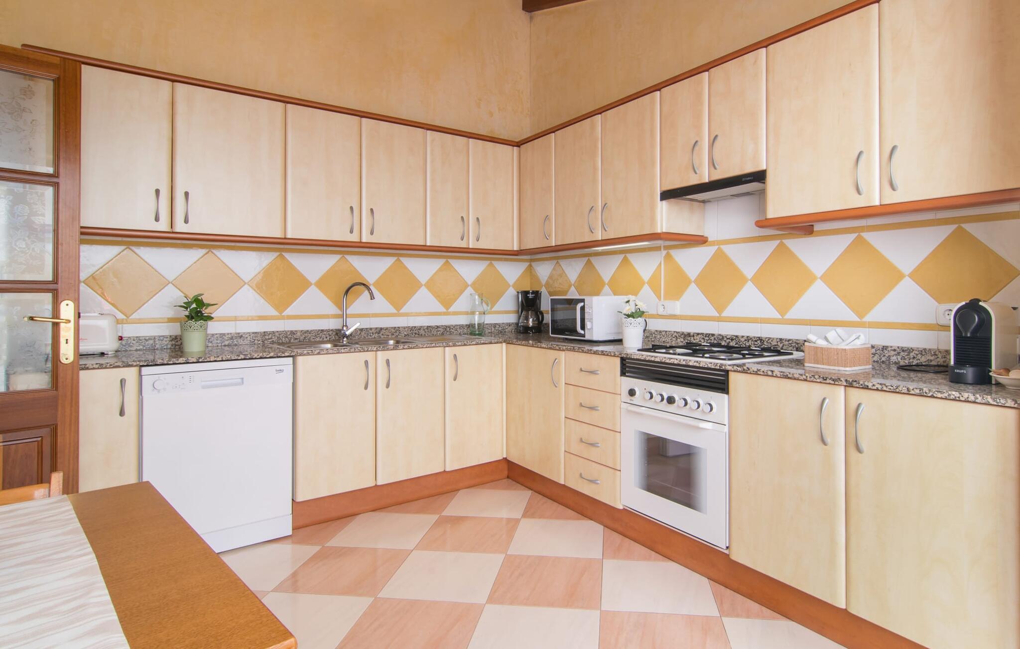 Der Innenraum ist hell und einladend und verfügt über ein ruhiges Wohnzimmer mit bequemen Sofas und einem Flachbildfernseher mit internationalen Kanälen. Der Essbereich bietet bequem Platz für vier Personen und die voll ausgestattete Küche mit einer kleinen Essecke für zwei Personen bietet alles, was Sie für eine hausgemachte Mahlzeit benötigen. Ein sonnendurchflutetes Badezimmer vervollständigt die erste Etage. Im Obergeschoss teilen sich zwei Doppelzimmer und ein Einzelzimmer ein zweites Badezimmer. Diese Villa bietet einen wahren Zufluchtsort für alle, die einen authentischen mallorquinischen Urlaub verbringen möchten.