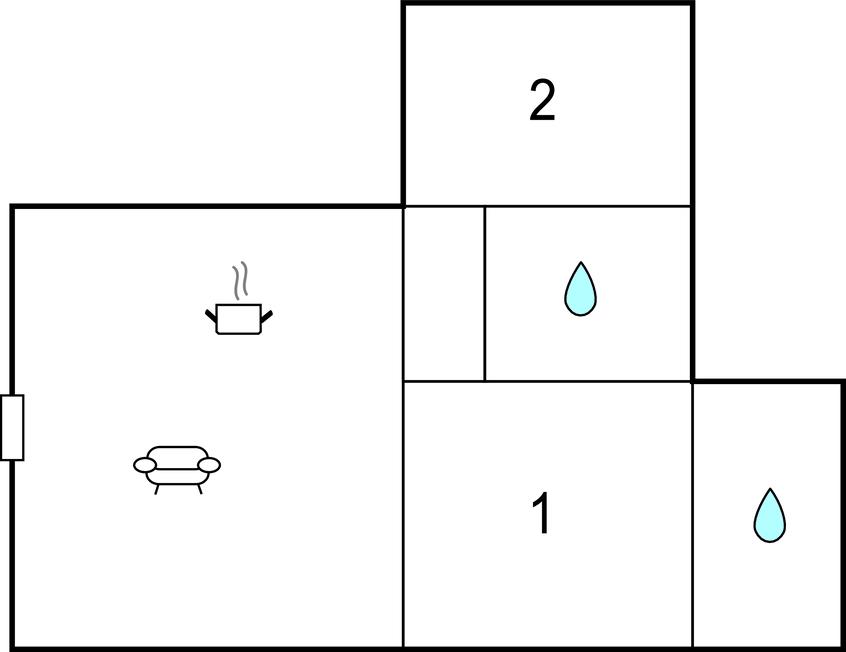Badezimmer 5m2 (nr. 1) - WC. Warmes und kaltes Wasser. Dusche