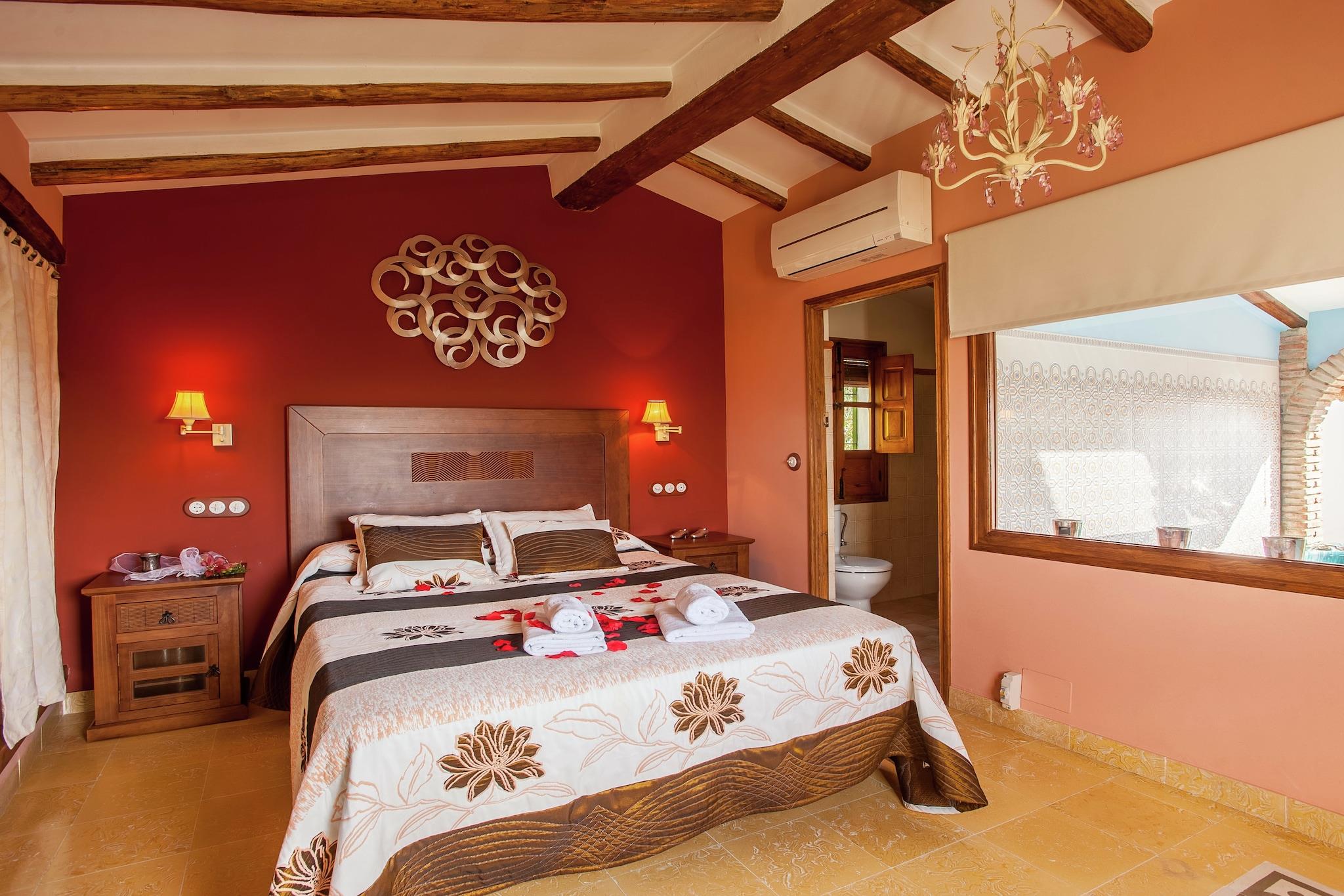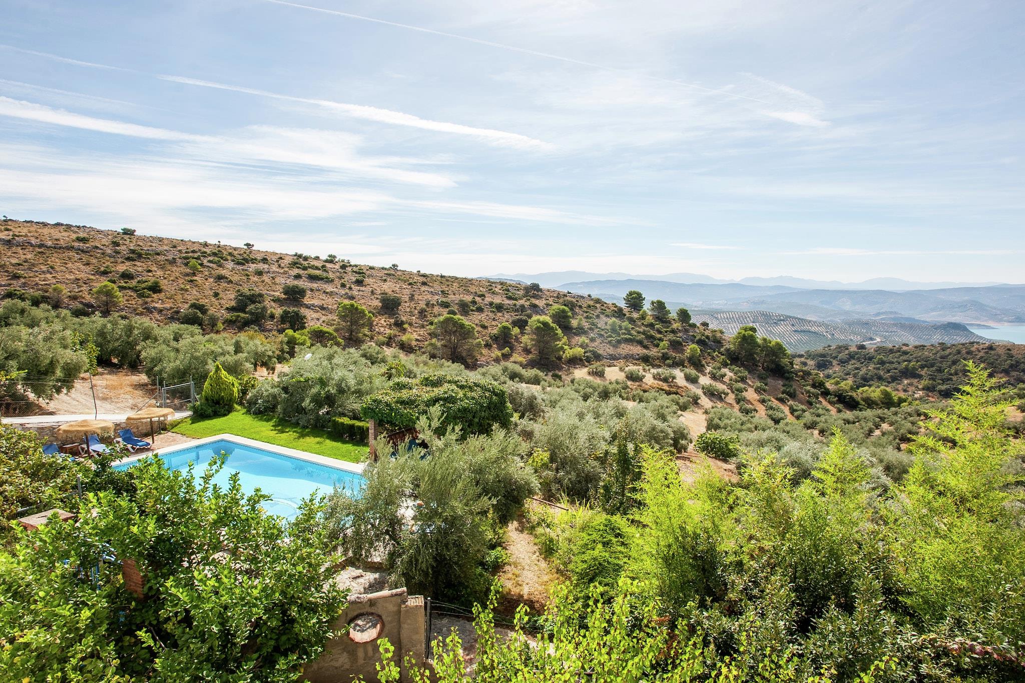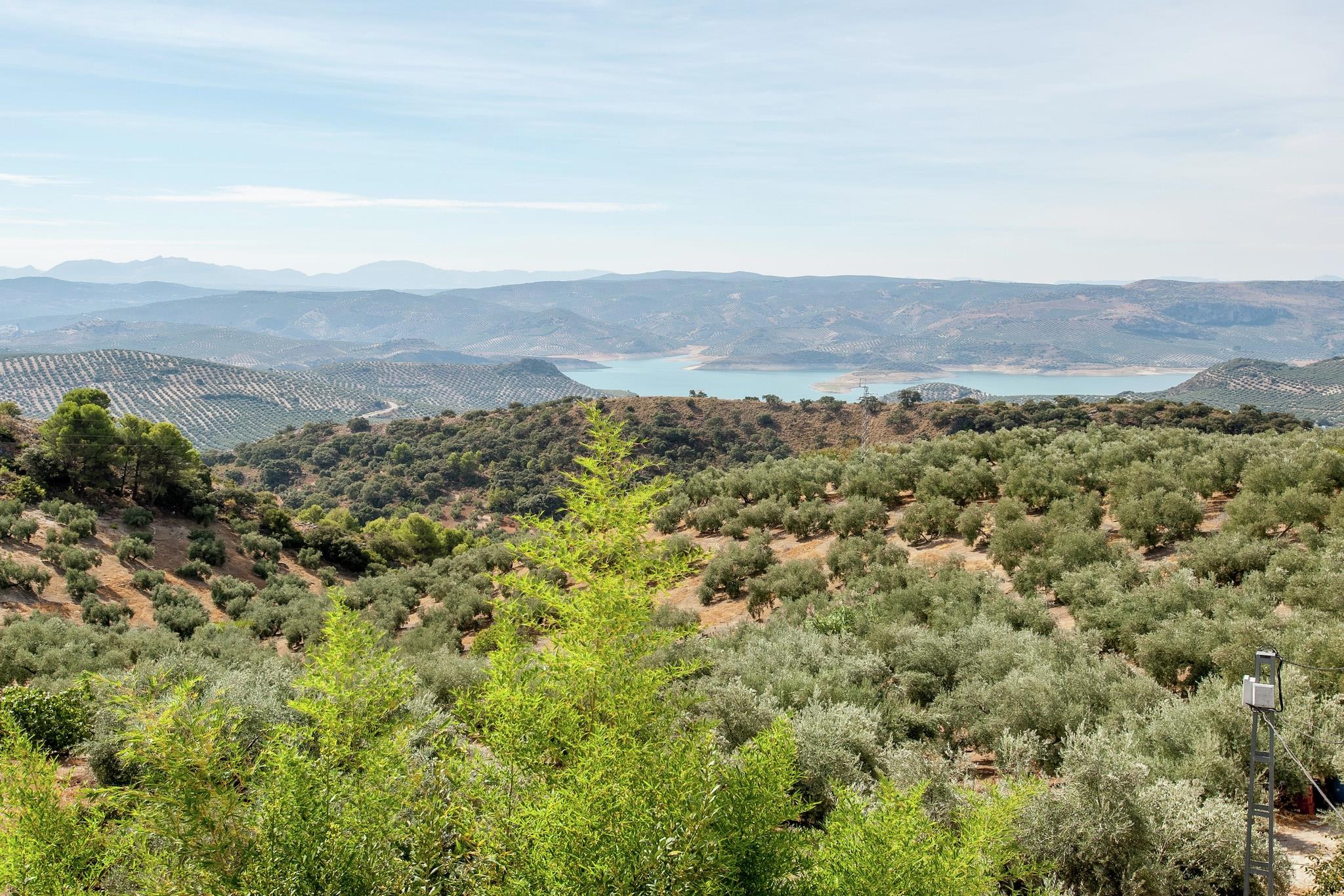 It is a cozy accommodation in a country house surrounded by olive groves in the heart of Andalusia, near the town of Rute. It is 1 hour's drive from Malaga airport. The decoration is in a traditional Andalusian style with exposed beams, hydraulic floors and rustic Andalusian tiles. The apartment has stunning views of the mountains, the Sierras Subbéticas and one of the largest lakes in Andalusia, the Iznájar Reservoir. And on the ground floor, the living room has a sofa and a cozy corner with a fireplace and TV. The kitchen is fully equipped with a dishwasher, microwave, mixer, refrigerator, etc. On the first floor is the master bedroom with bathroom and terrace with hydromassage. The latter can be ordered regardless of the house. You can also book the use of a Jacuzzi with the owner (min. 24 hours before arrival!) and it will be set to the correct temperature. (The minimum use of the Jacuzzi is 2 nights and it works from 11 a.m. to 11 p.m.) The service is complemented with bathrobes. You can also use the shared pool (not heated).