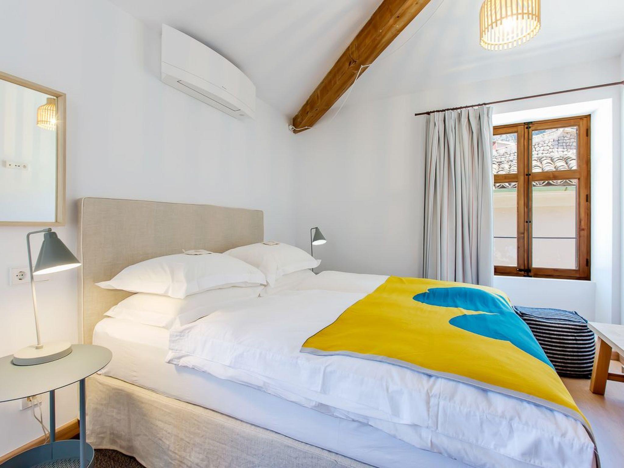 Our house In all 5 bedrooms there are luxurious double beds from CocoMat, they are made of 100% natural materials, 3-ply, free of metals, super comfortable. 4 double beds are 1.60m wide and 1 double bed is 1.80m wide, with fine organic cotton bed linen, down pillows and duvets. There are 2 en suite shower rooms and 2 separate shower rooms as well as a guest WC. Sufficient towels and large beach towels are provided. On the ground floor is the entrance area with an impressive ceiling height of over four metres, where there is also a large dining table for up to 8 people. On the first floor is the beautiful lounge, a living area with 2 large, comfortable Meridiani sofas and satellite TV. There is a small cosy library on the mezzanine. Modern air conditioning is installed in all rooms, which is also used for heating in winter. The entire house is furnished to a very high standard. The modern, well-equipped kitchen and the wardrobes were made by a local craftsman, and the natural stone for the worktop comes from the island. Throughout the house there are beautiful original elements, very beautiful old mirrors, 120-year-old floor tiles, the beautiful old staircase, the wooden doors with art nouveau glazing, a draw well in the patio. The entire house was carefully renovated in 2017, thus preserving the beautiful 120-year-old history and authenticity of the house. From the kitchen you have access to the small patio, a quiet outdoor area with a dining area for 8 people. A small, sunny roof terrace can be reached via one of the two bedrooms on the top floor. - Wi-fi - satellite / cable TV - washing machine and tumble dryer - iron and ironing board - bed linen and towels - beach towels and beach bags - dishwasher - fridge and freezer - oven and induction hob - extractor bonnet - blender, crockery, cutlery - coffee, tea, spices - 4 bathrooms with WC and shower - 1 guest WC - 5 bedrooms; 4 with double bed (1.60m x 2.00m) and 1 with double bed (1.80m x 2.00m) - Small patio with dining area and historic fountain - Roof terrace