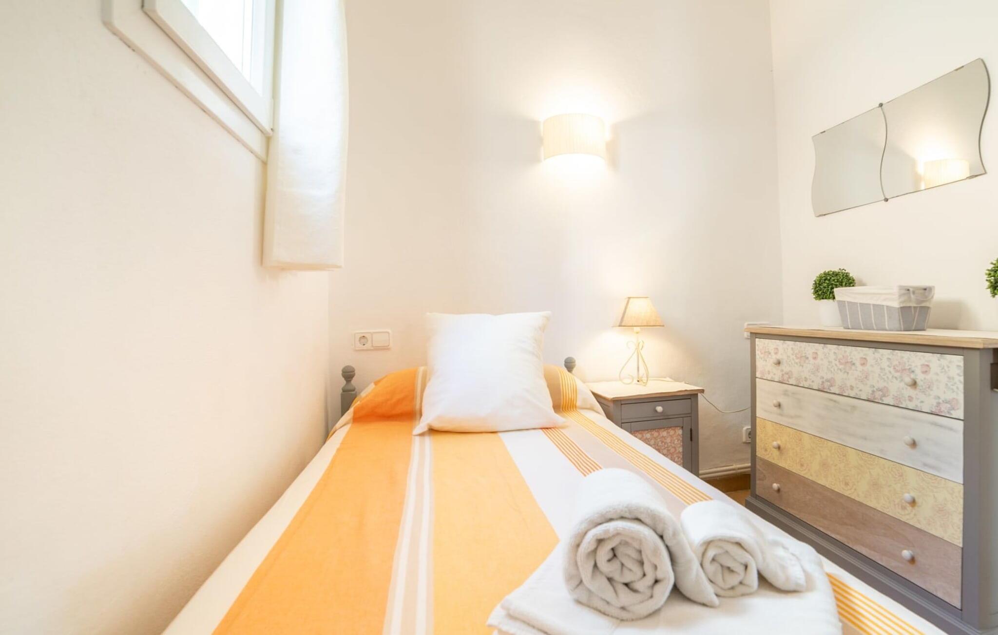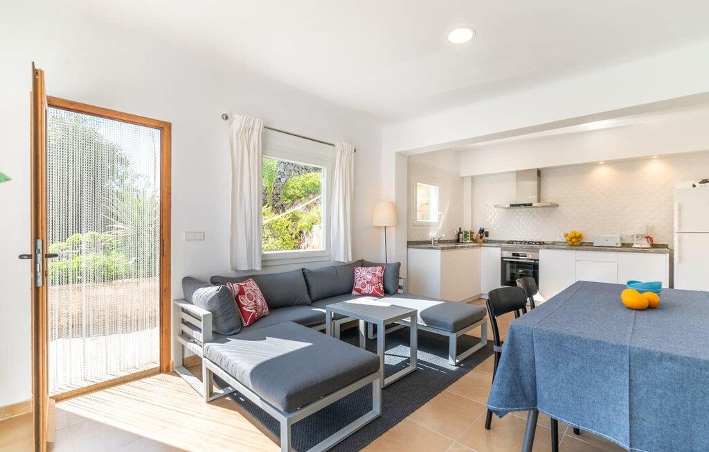 Die Villa befindet sich am Fuße eines größeren Anwesens in Hanglage, das von Pinien und Palmen umgeben ist. Über eine Treppe von der Straße oben erreichbar, gelangen Sie zunächst auf die Dachterrasse und dann weiter hinunter in das Erdgeschoss, wo sich ein gemütlicher Wohn- und Essbereich in die Küche und den Schlafbereich öffnet. Es gibt ein Badezimmer mit Dusche, WC und Waschbecken. Das dritte Schlafzimmer der Villa ist zwar klein, aber je nach Gruppe eine praktische Ergänzung. "Sa Barca" bewahrt seinen rustikalen, unprätentiösen Charme, mit einem Design, das sich nahtlos in die natürliche Landschaft einfügt. Seine unglaubliche Lage am Meer ist sein größter Schatz und bietet Ihnen einen echten mediterranen Rückzugsort.
