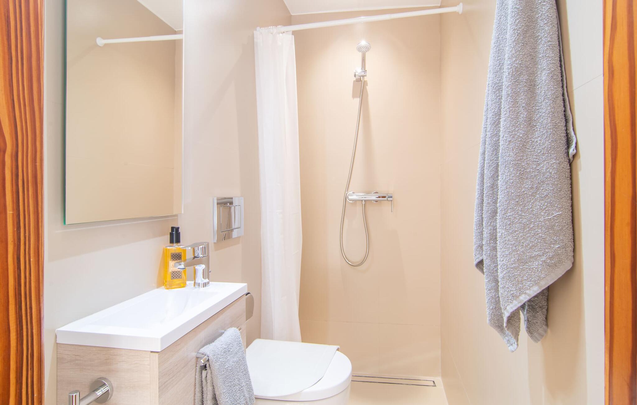 Badezimmer (nr. 2) - WC. Warmes und kaltes Wasser. Dusche