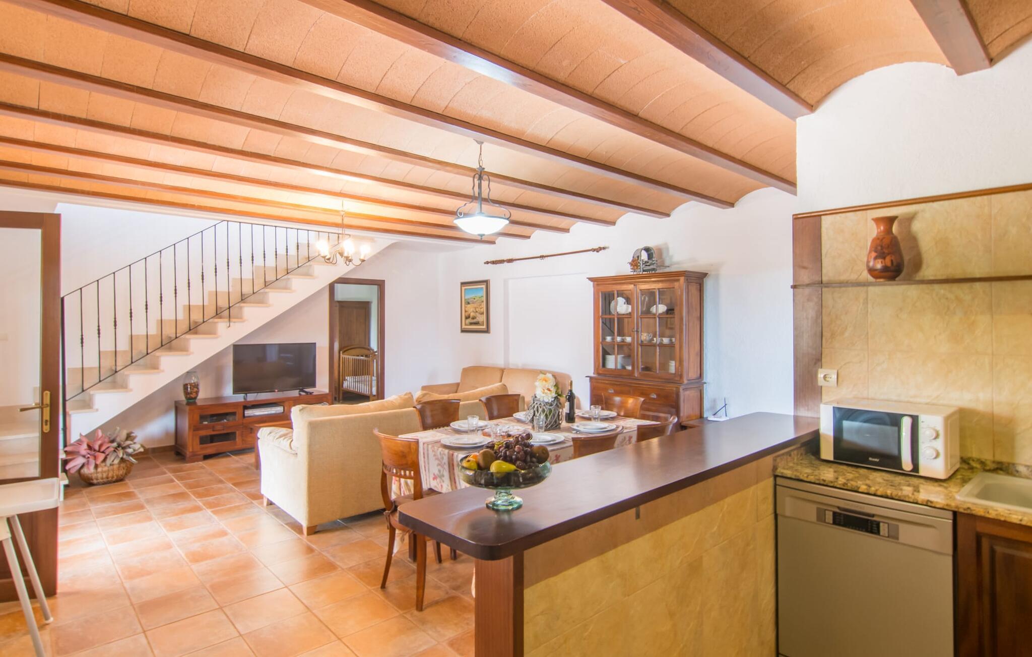 Sie können sich einfach eines der Fahrräder an der Villa „Sa Pedrera d'es Turó“ schnappen, um die 1,5 km nach Porto Cristo zu fahren. Von der hübschen Promenade aus ist das Schauspiel des Kommens und Gehens der Jachten und Segelboote faszinierend zu beobachten. In der Nähe der Villa liegt eine Straße, die manchmal zu hören ist, aber eine gute Anbindung an die Infrastruktur bietet. Schnell erreichen Sie wunderschöne, feinsandige Strände, die größtenteils über einen flachen Einstieg ins Meer verfügen, sodass Familien wunderschöne Tage am Wasser verbringen können. Das 13 km entfernte Manacor ist eine hervorragende Option, wenn Sie einen Tag beim Einkaufen und in Cafés verbringen möchten. Natürlich können Sie dazu auch in die eine Stunde entfernte Inselhauptstadt Palma fahren. Die niedliche Villa „Sa Pedrera d’es Turó“ liegt nur einen guten Kilometer von einem Strand entfernt und das 2 km entfernte Porto Cristo verspricht maritimes Flair in Ihrem Urlaub. Hier können Sie entlang der Hafenpromenade flanieren und planen, welchen der attraktiven Ostküstenstrände Sie als nächstes besuchen möchten. Sonntags sorgt der farbenfrohe Wochenmarkt am Passeig de la Sirena für Aufsehen.