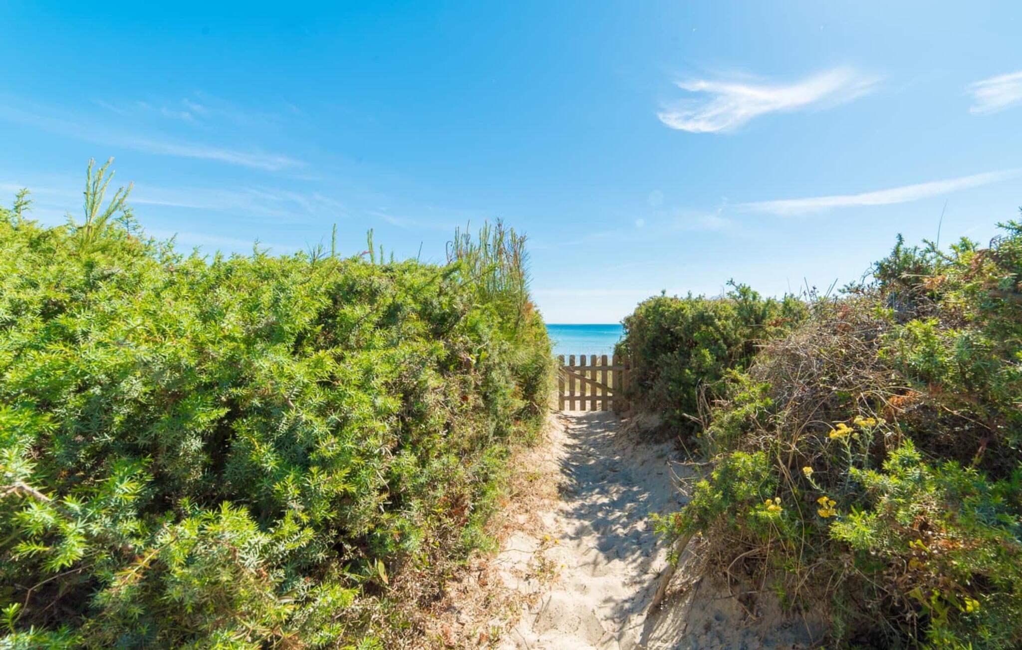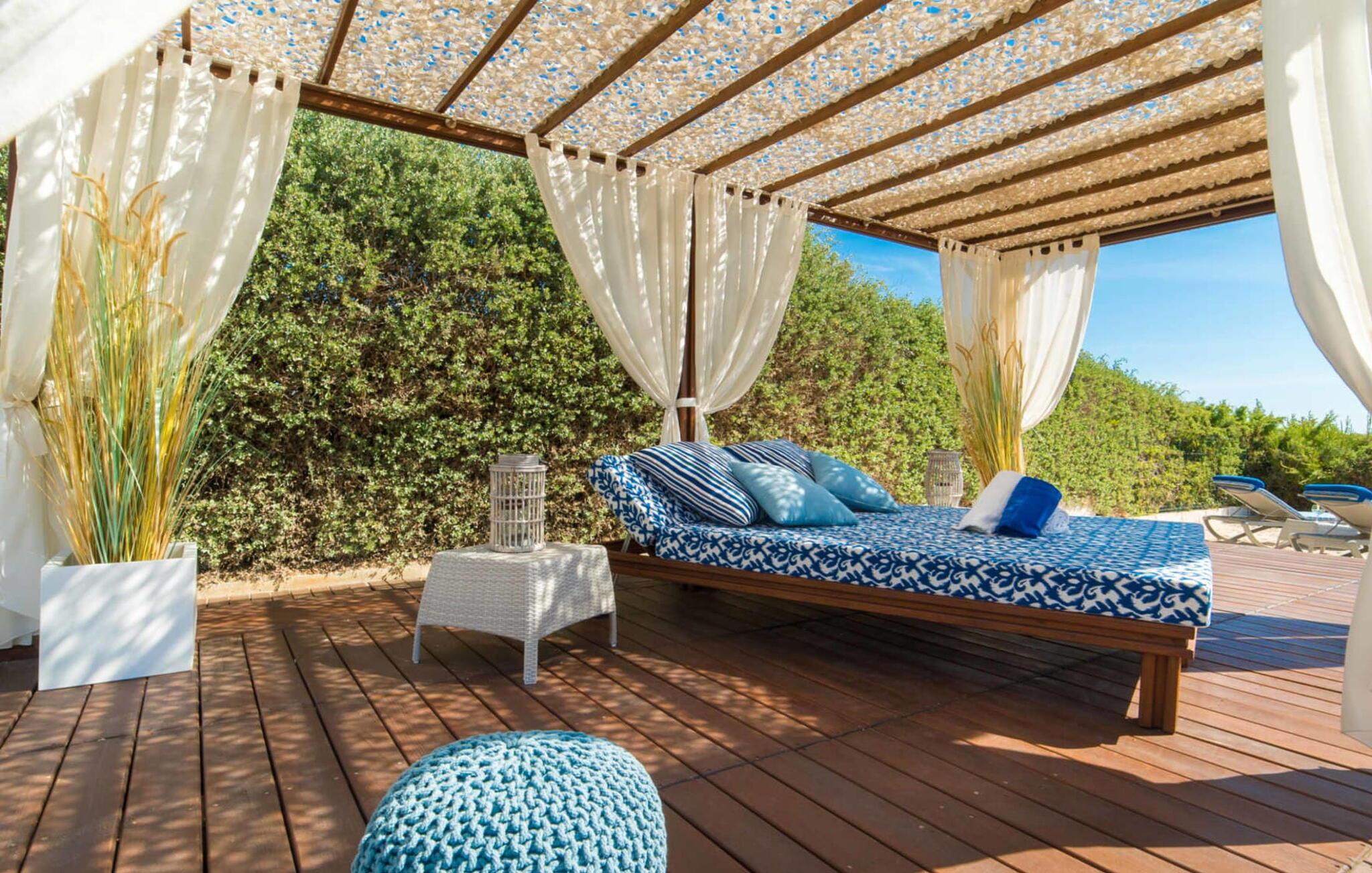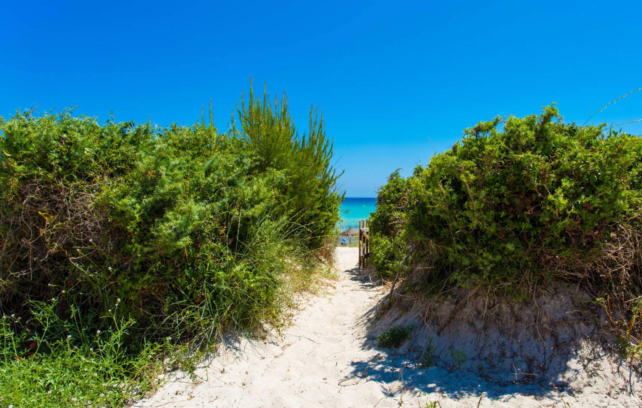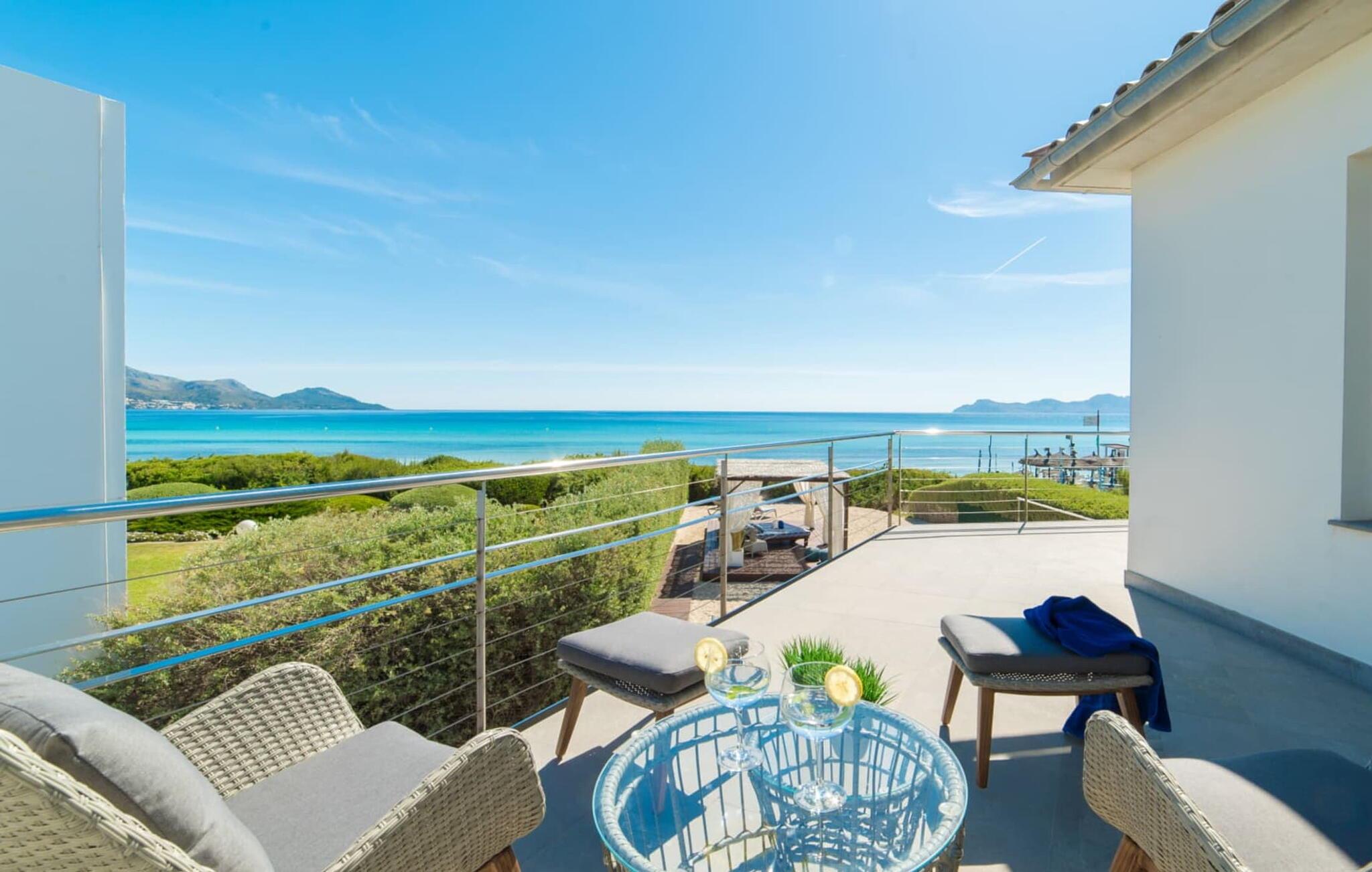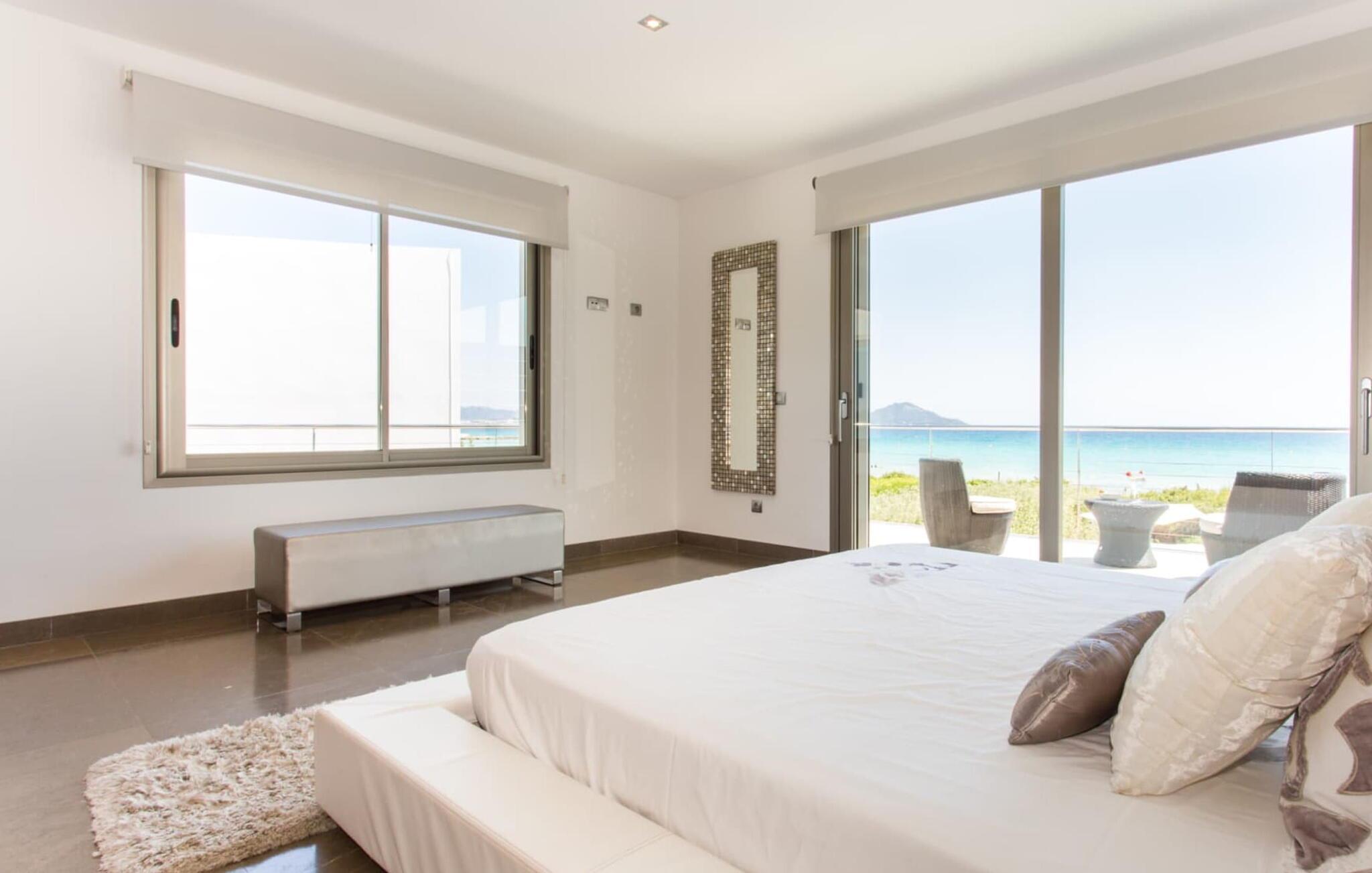 Von hier aus führt ein kurzer Weg über die Dünen direkt zum flachen, türkisblauen Wasser der Playa de Muro an der Ostküste. Sie können die wunderschönen Sonnenaufgänge entweder von Ihrem Bett aus oder von der herrlichen Liege in Ihrem Strandgarten aus genießen. Genießen Sie Ihre Mahlzeiten auf der überdachten Terrasse am Haus. Es bietet einen sensationellen Blick auf das Meer. Bei Bedarf kann der Schattenbereich durch eine Markise erweitert werden.