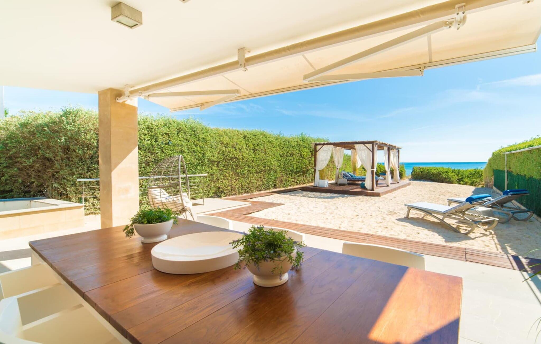 Näher als in der Villa „Sa Platja“ kann man auf Mallorca nicht am Strand sein. Der weiße Sandstrand ist buchstäblich Teil Ihres Gartens.