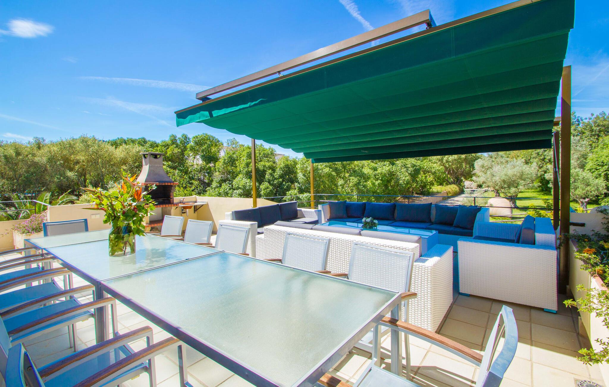 Die weitläufige Poolterrasse ist von einer schönen Natursteinmauer umgeben und bietet einen atemberaubenden Ausblick. Genießen Sie das Entspannen auf den hochwertigen Liegestühlen oder unter Sonnenschirmen. Die Terrasse verfügt auch über einen überdachten Bereich, der sich perfekt zum Faulenzen im Schatten oder zum abendlichen Grillen eignet.